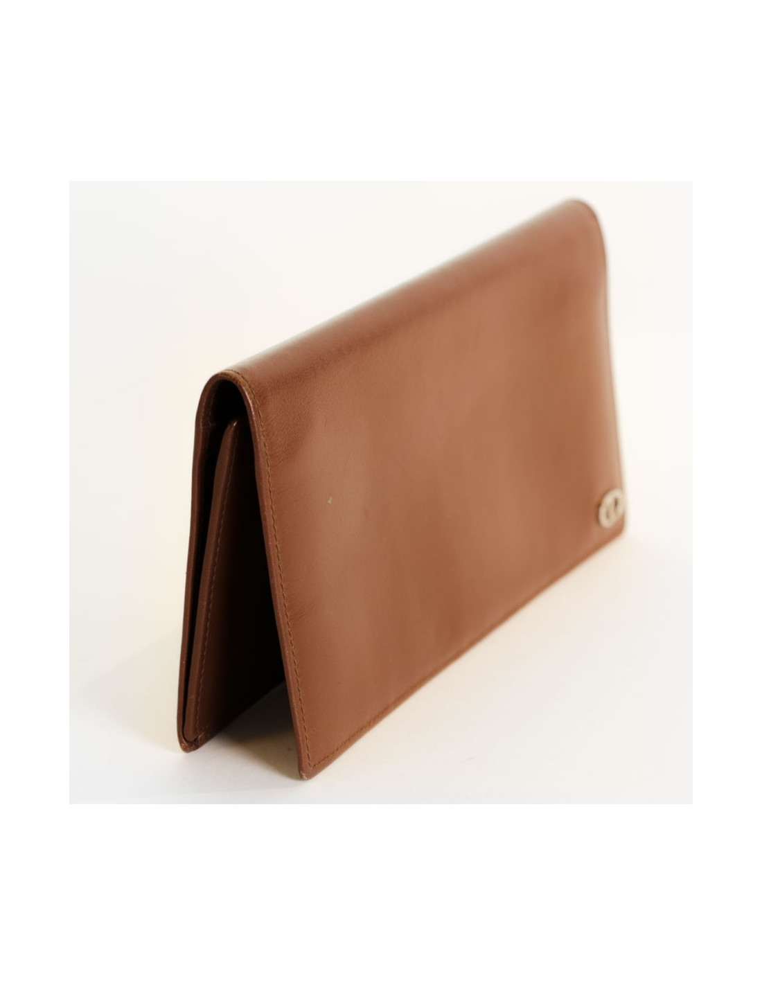 Portefeuille Christian DIOR, en cuir lisse marron Vintage. En bon état (des petites griffures).