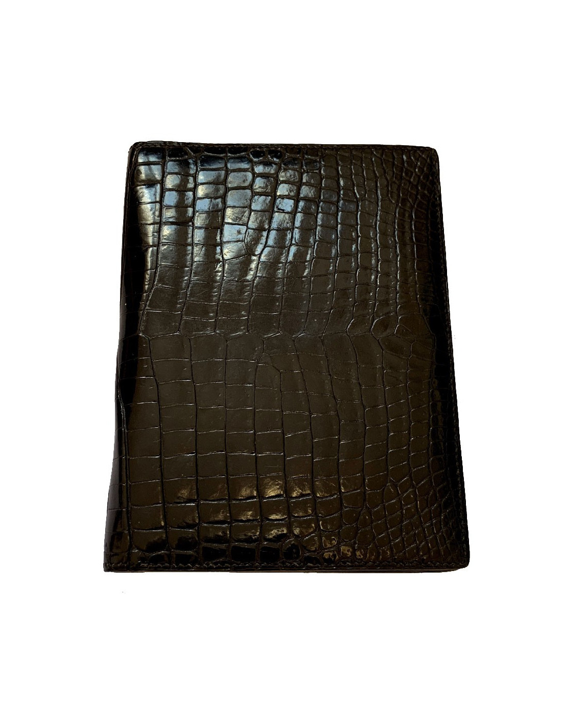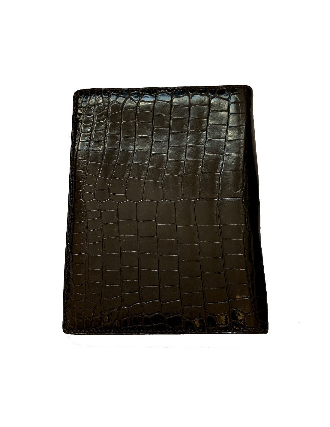 Ce portefeuille HERMES est en crocodile porosus noir de fabrication française. Très élégant. Il se compose de 5 fentes à cartes, une pochette plastifiée pour le permis ou la pièce d'identité. 1 soufflet moyen, 1 soufflet à billet et un petit insert pour les papiers.