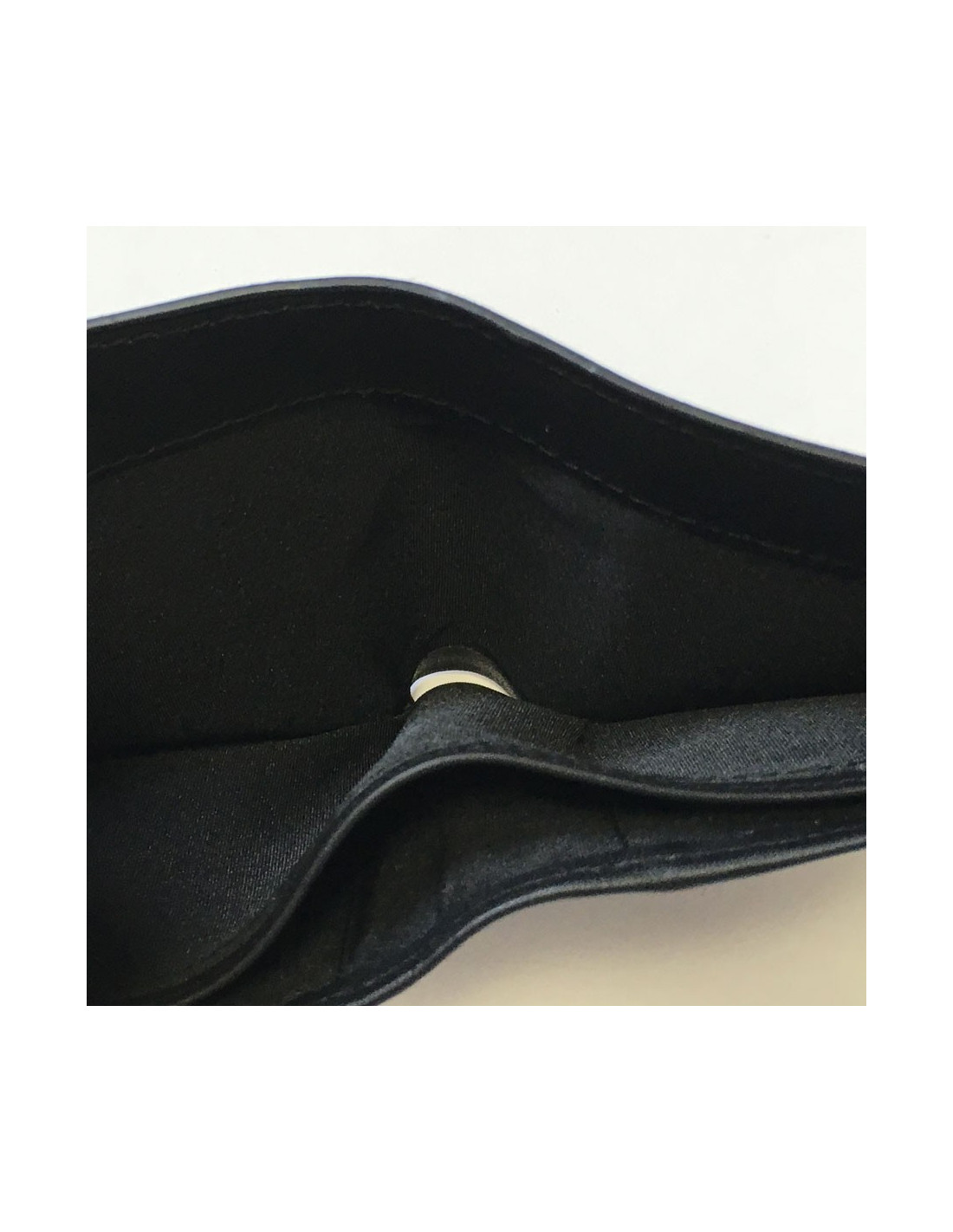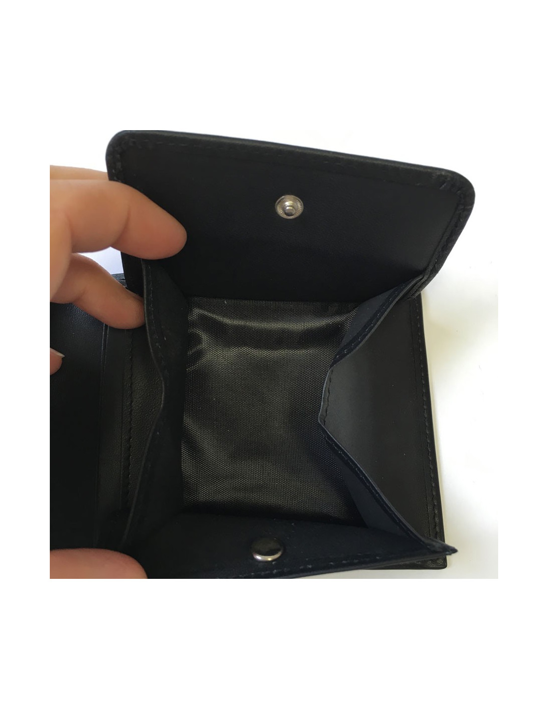 Portefeuille CERRUTI 1881 en cuir noir lisse, intérieur tissu noir. Un porte-monnaie, fermeture à pression, 4 fentes pour cartes de crédit, 3 fentes moyennes pour carte d'identité etc... et 2 grandes fentes à billets.