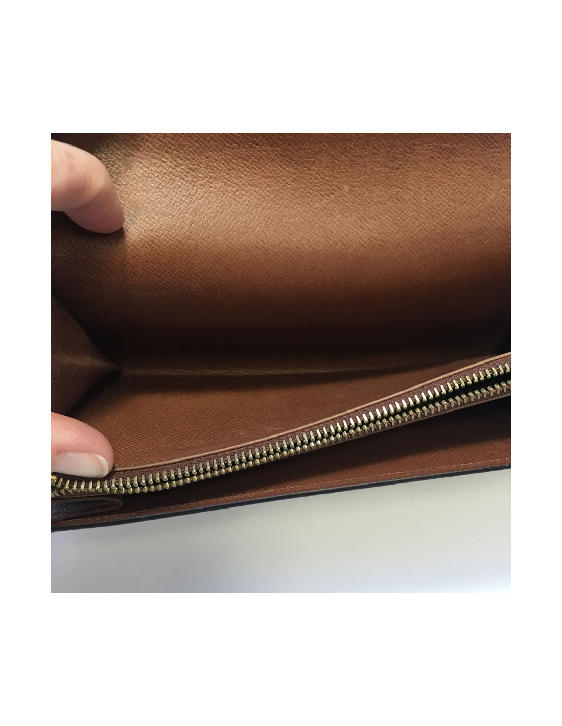 Portefeuille LOUIS VUITTON en toile monogram. Il dispose de 2 grandes poches plates, d'une grande poche zippée . L'intérieur est patiné de part son usage. En très bon état extérieur et bon état à l'intérieur.
