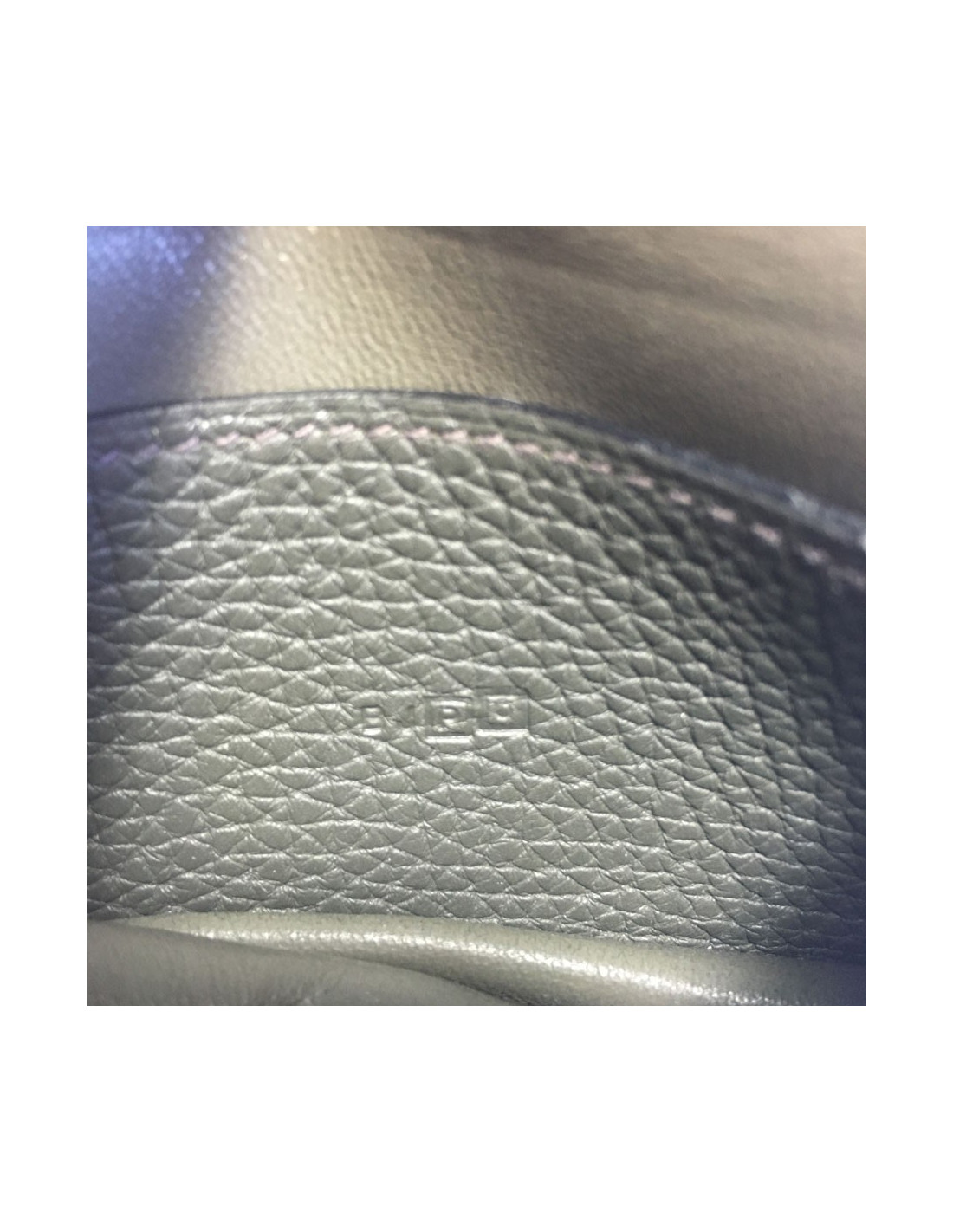 Porte-monnaie HERMES Dogon en cuir Togo doublé agneau kaki. Fermoir "Clou de Selle" en métal argenté, fermeture par patte cuir. 2 poches à l'intérieur. En parfait état. D'infimes rayures sur le fermoir.