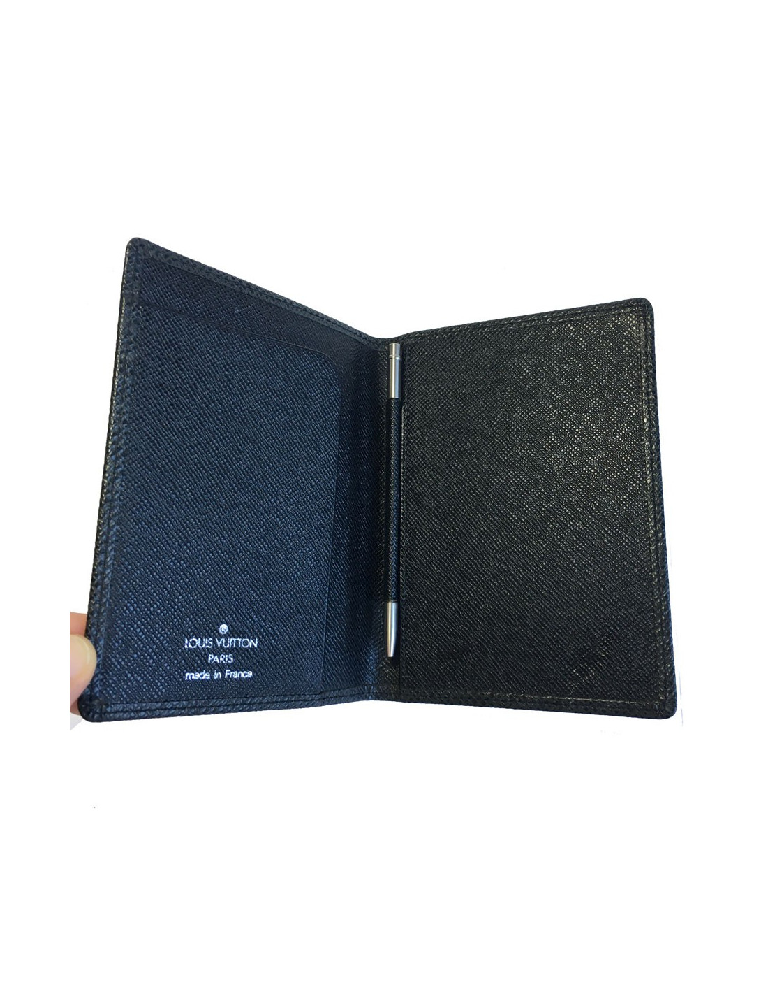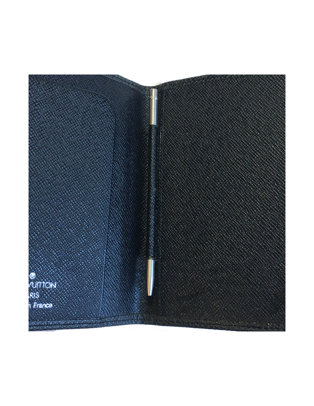 En très bon état. Le cuir est légèrement enfoncé à l'intérieur à 2 endroits (voir photo). Louis Vuitton inscrit sur la partie intérieure. Un rabat pour les cartes.