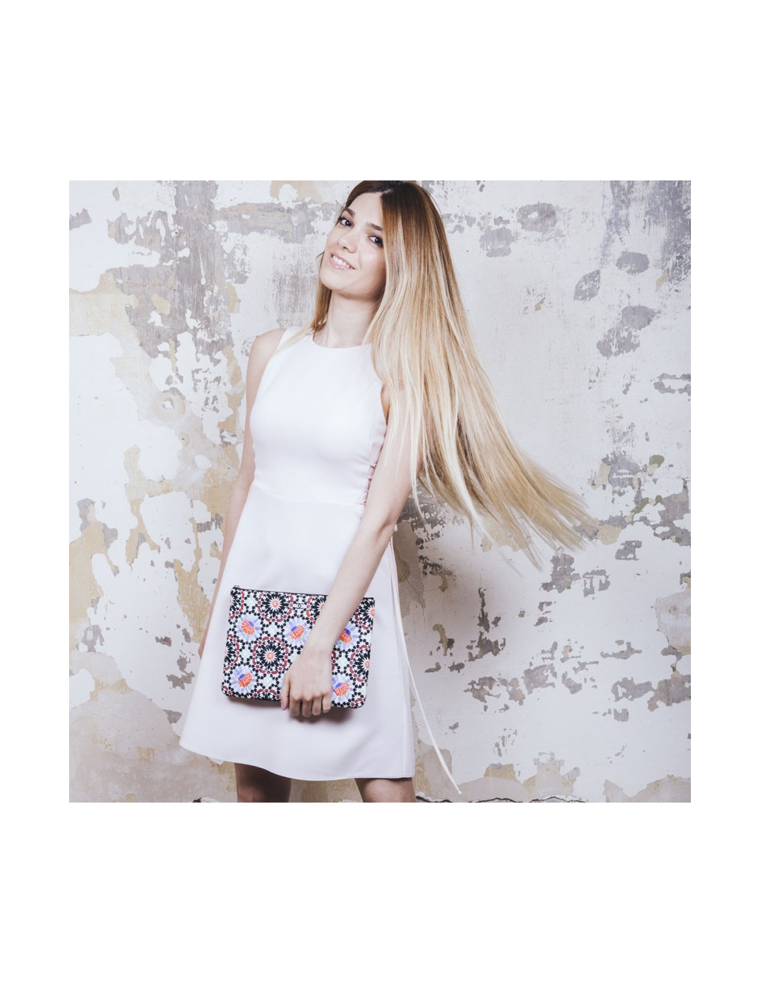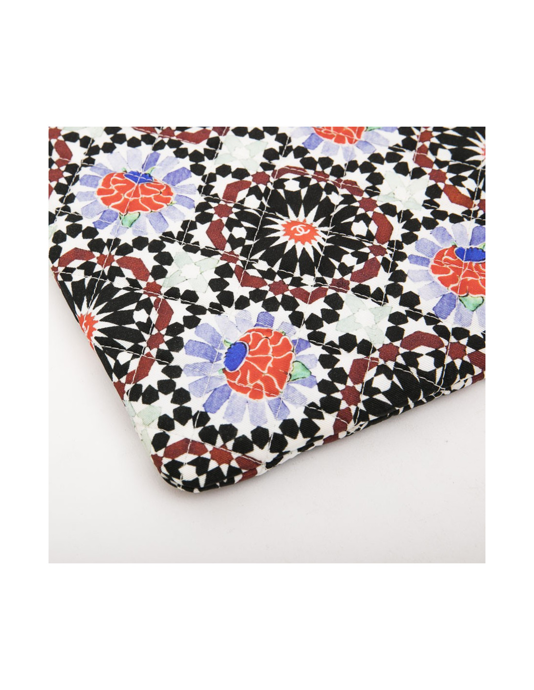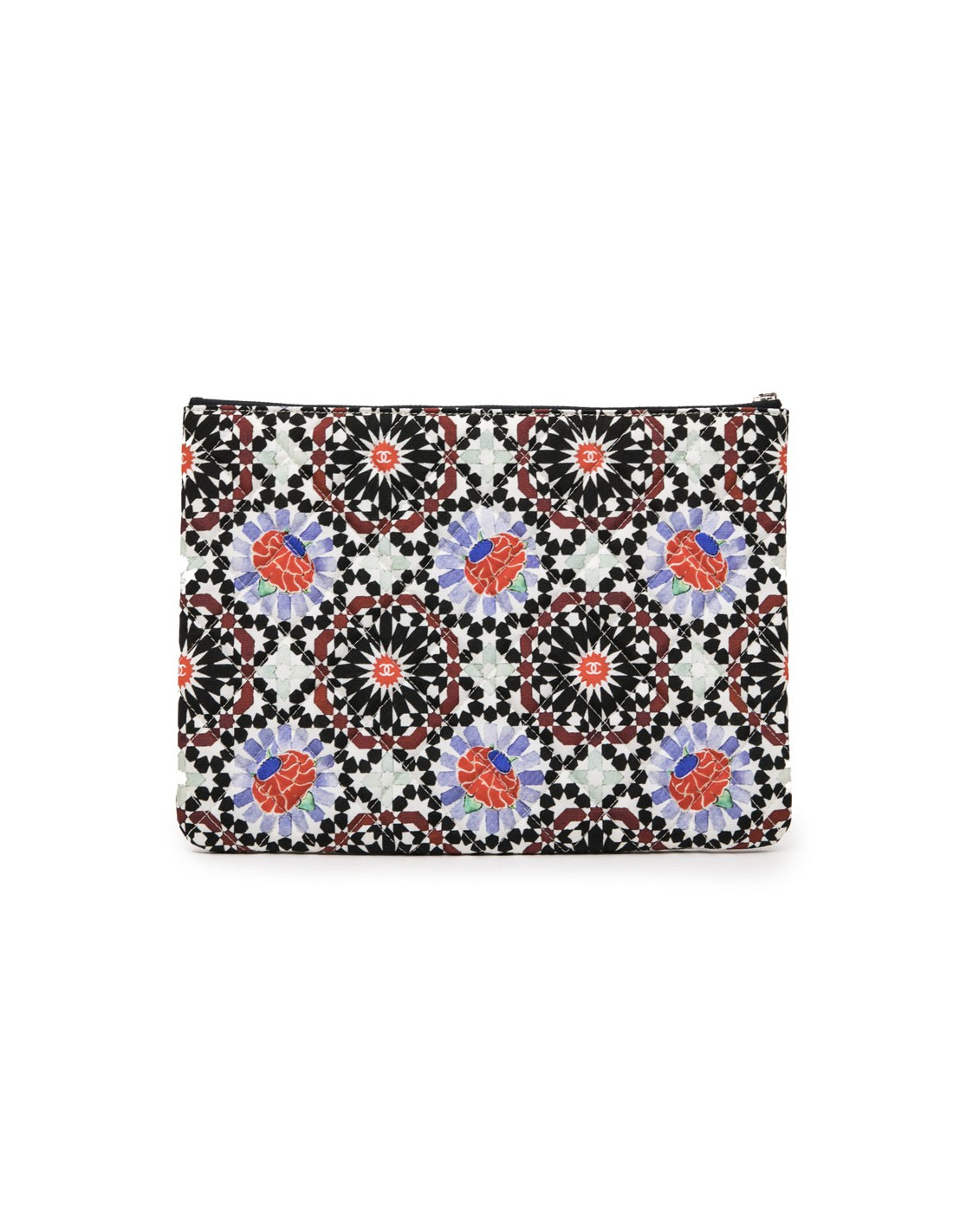 Pochette Chanel Paris-Dubai", en tissu matelassé. Fermeture zippée. Bijouterie argentée. L'intérieur est en matière imperméable bleu.