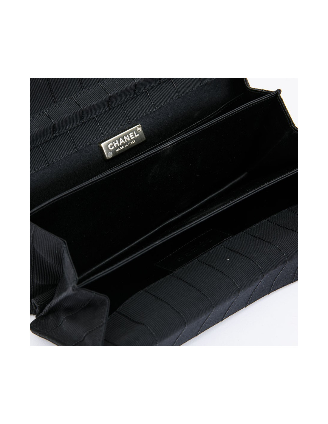 Détails sur cette pochette CHANEL en satin noir
