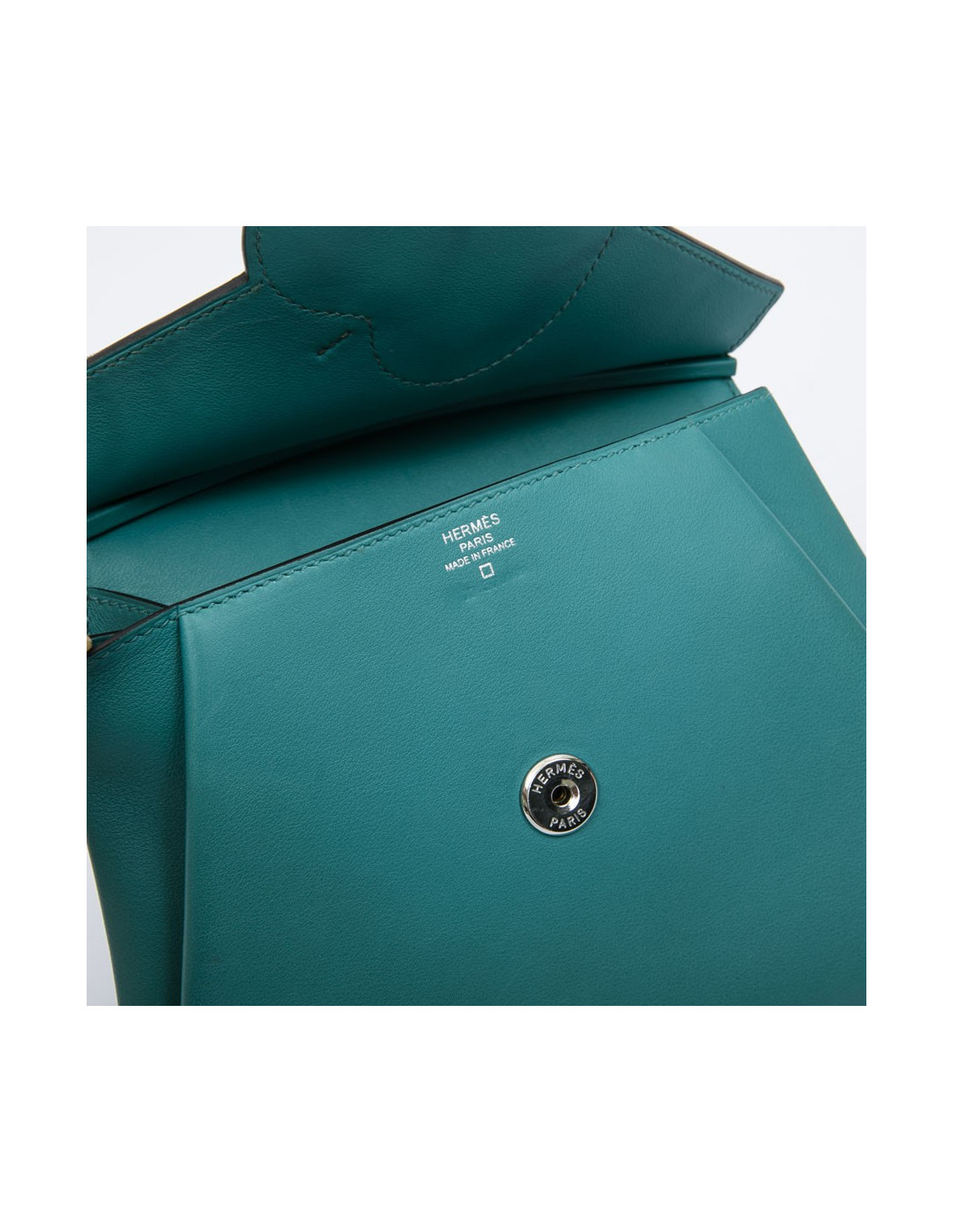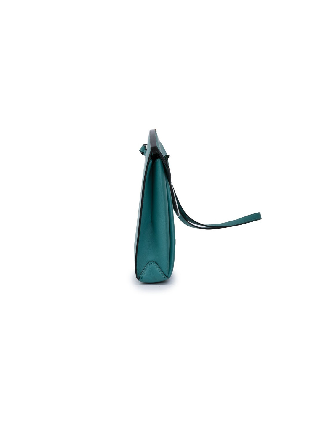 Sac pochette HERMES Tutti frutti Hermail cuir tadelakt bleu paon et crocodile vert