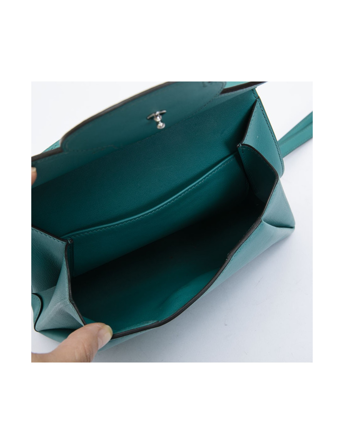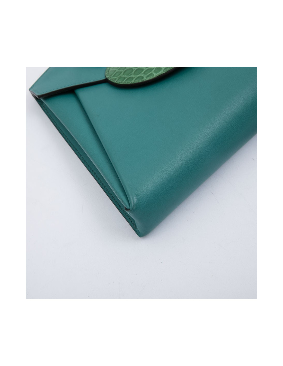Sac pochette HERMES Tutti frutti Hermail cuir tadelakt bleu paon et alligator vert