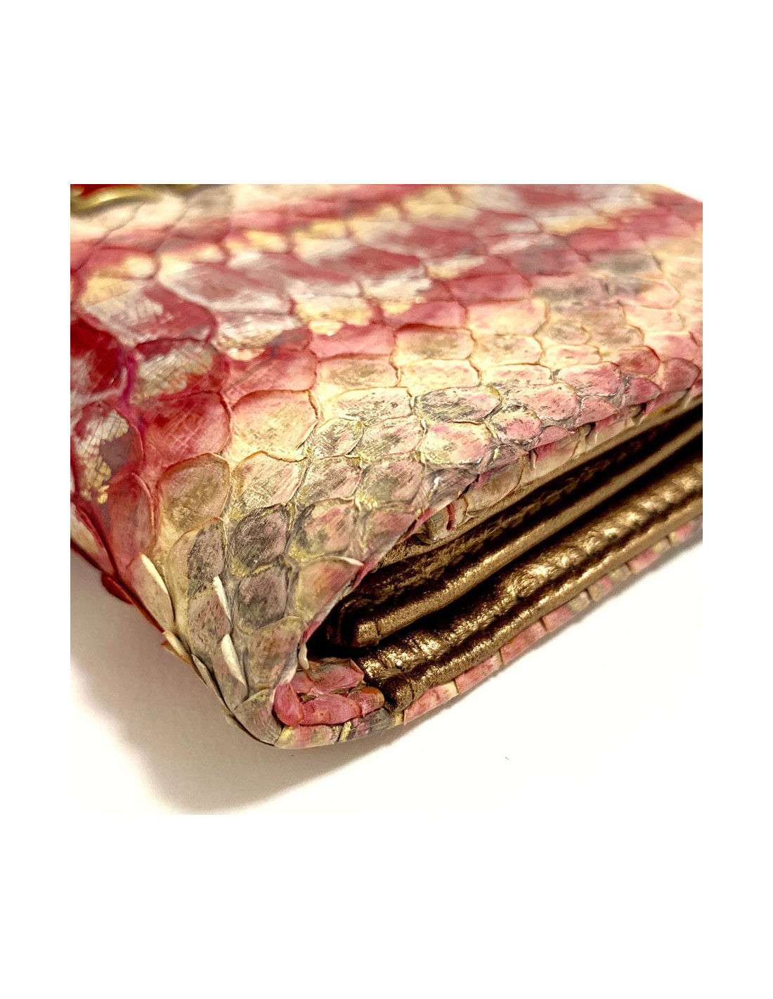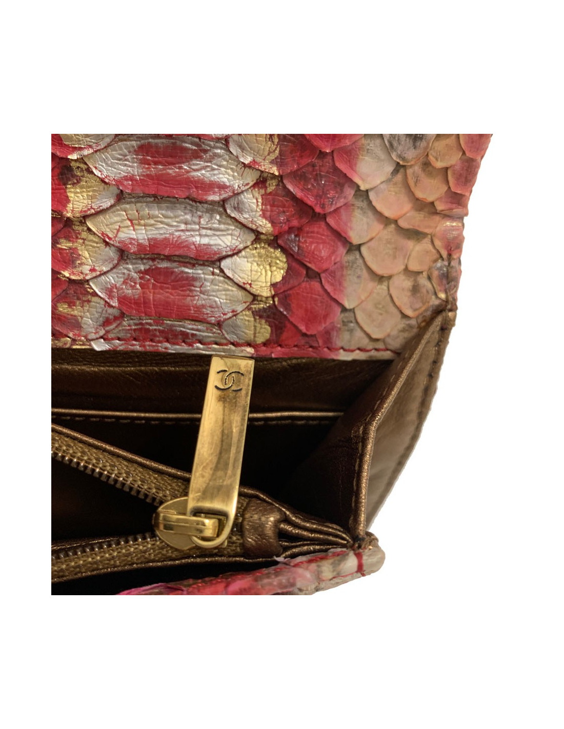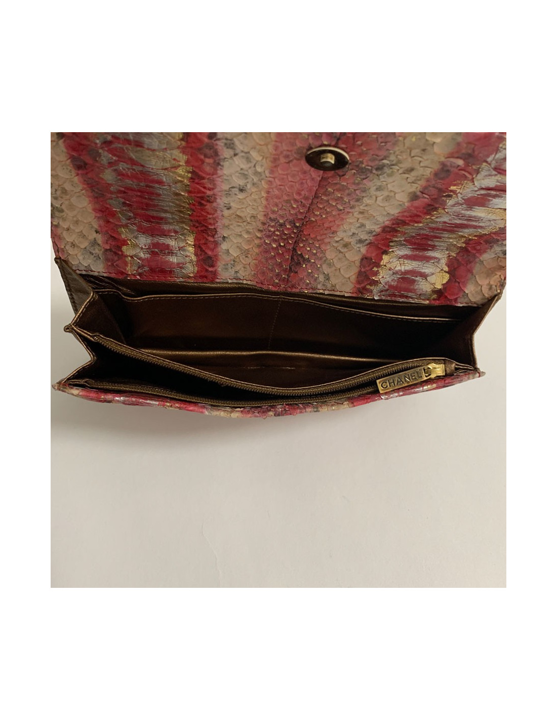 Pochette CHANEL python beige rose rouge
