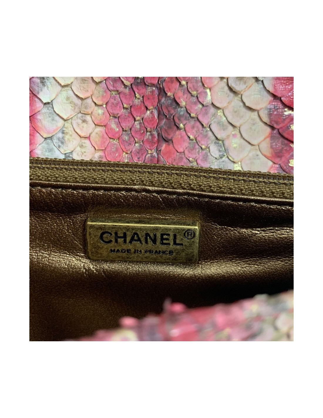 Détails sur la pochette CHANEL python