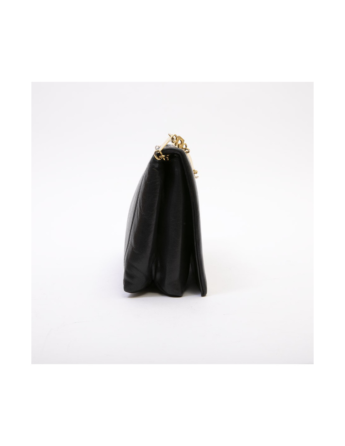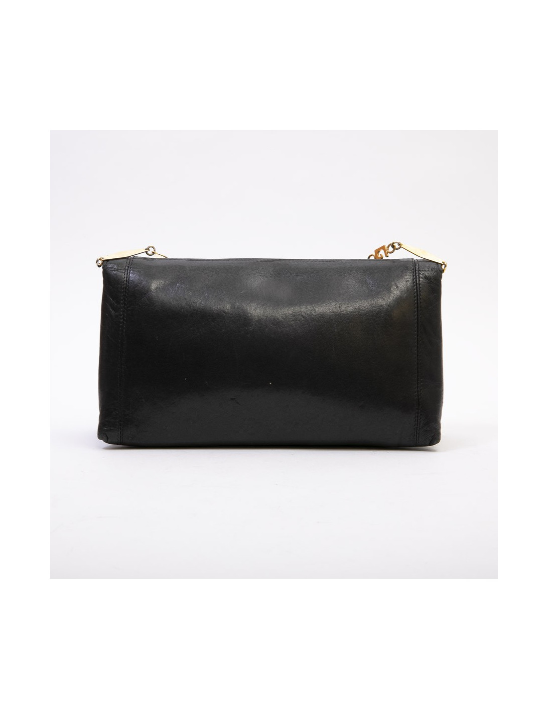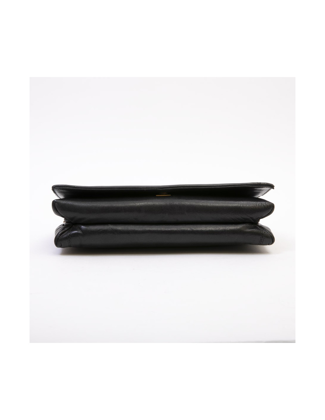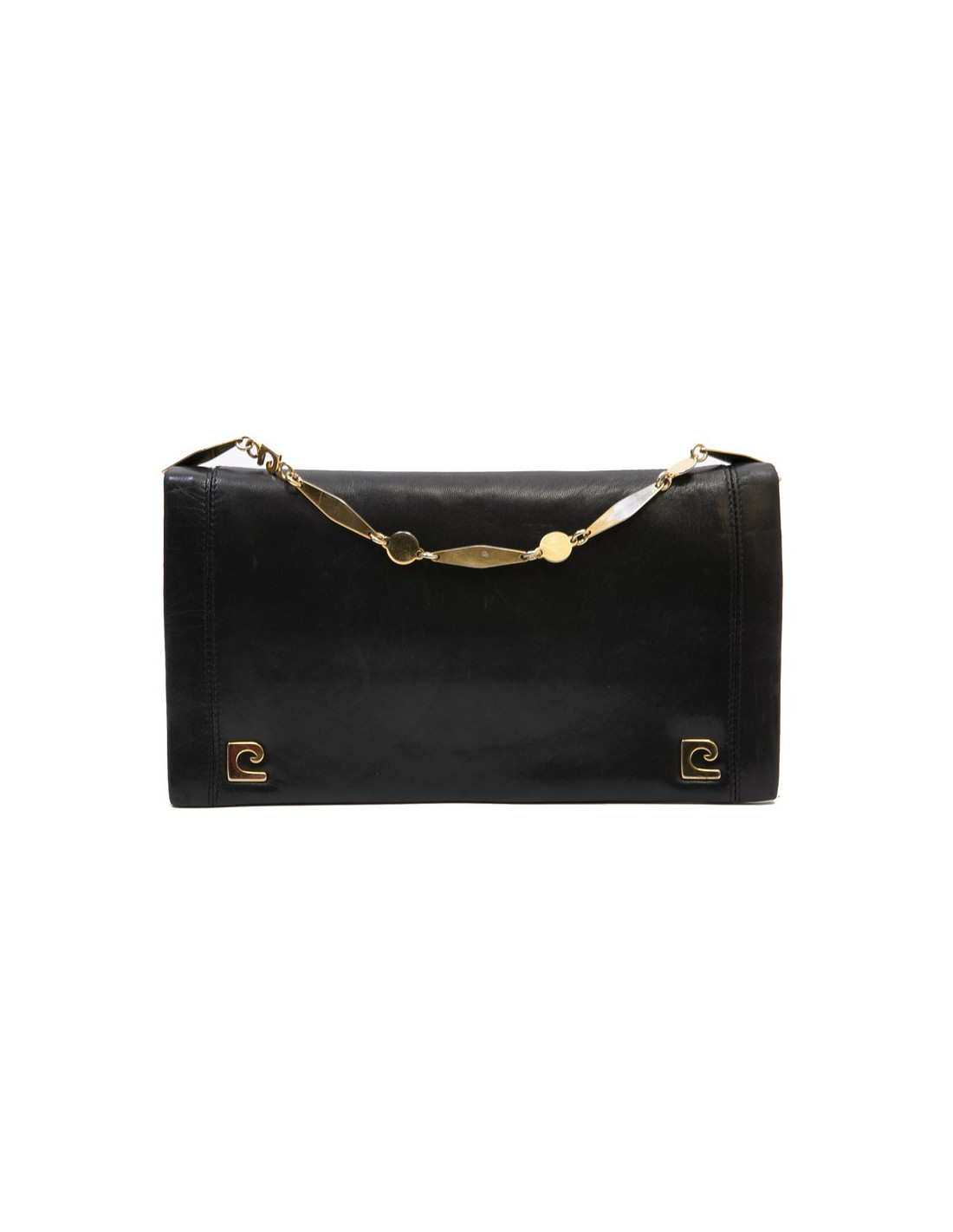 Sac pochette vintage Pierre Cardin en cuir d'agneau lisse noir. Bijouterie dorée.