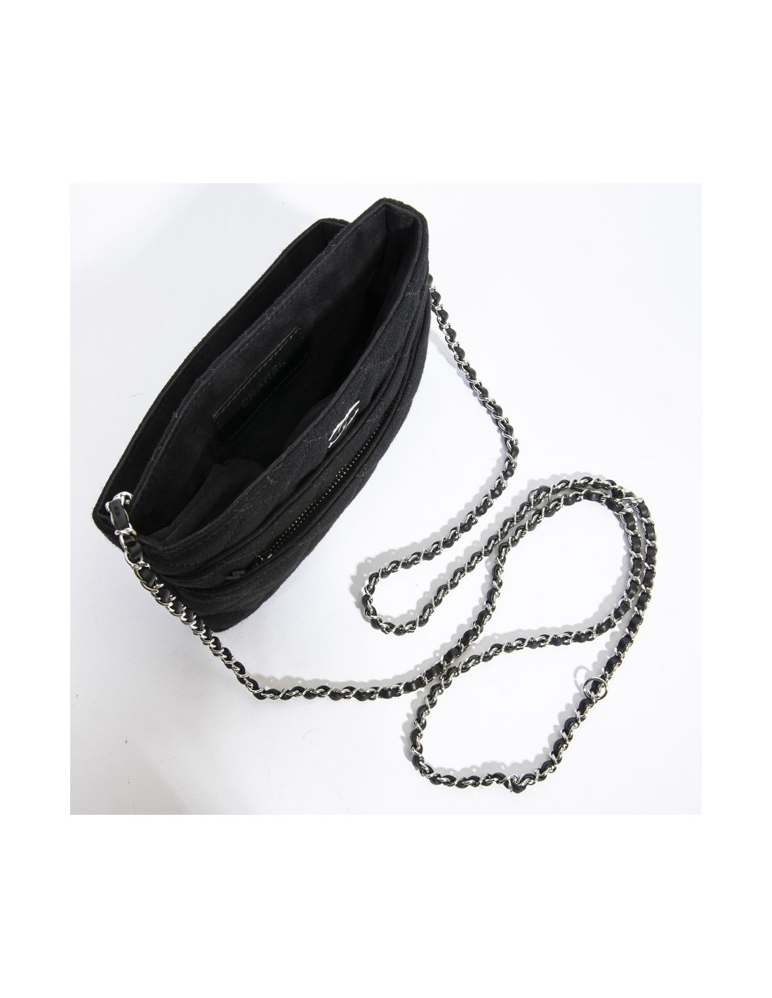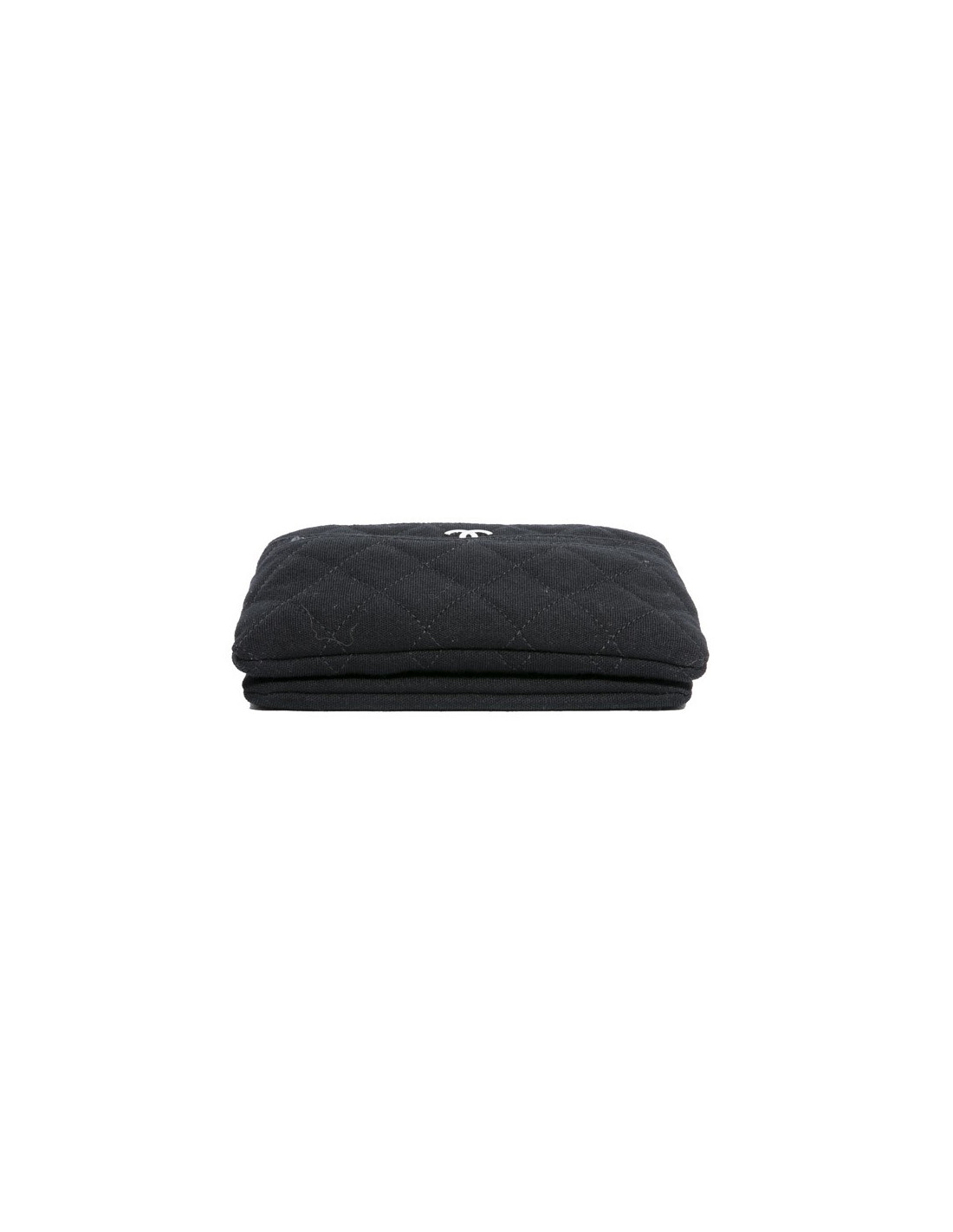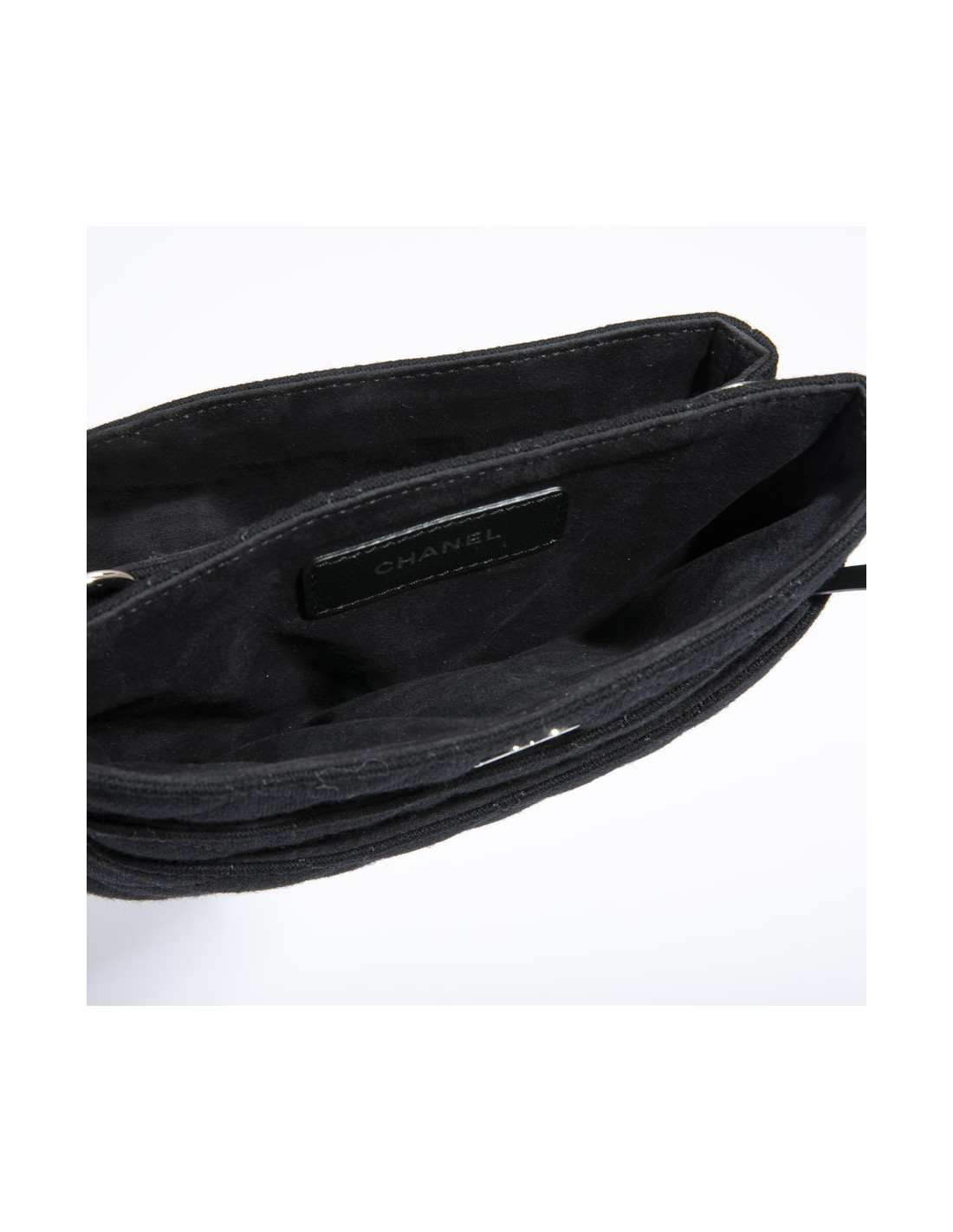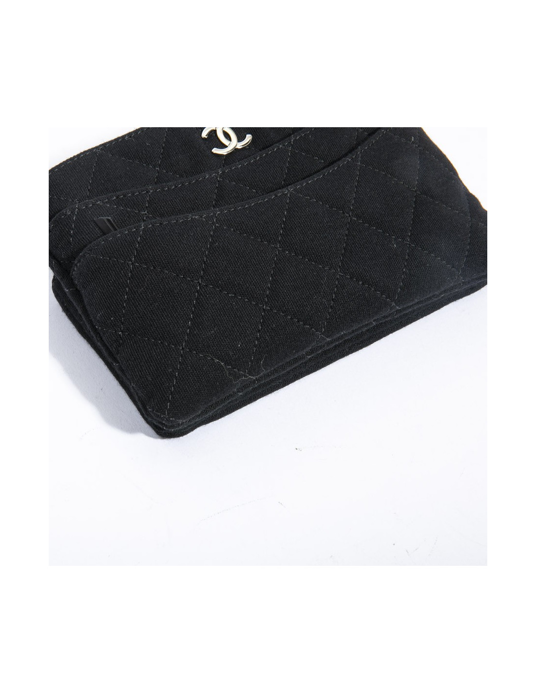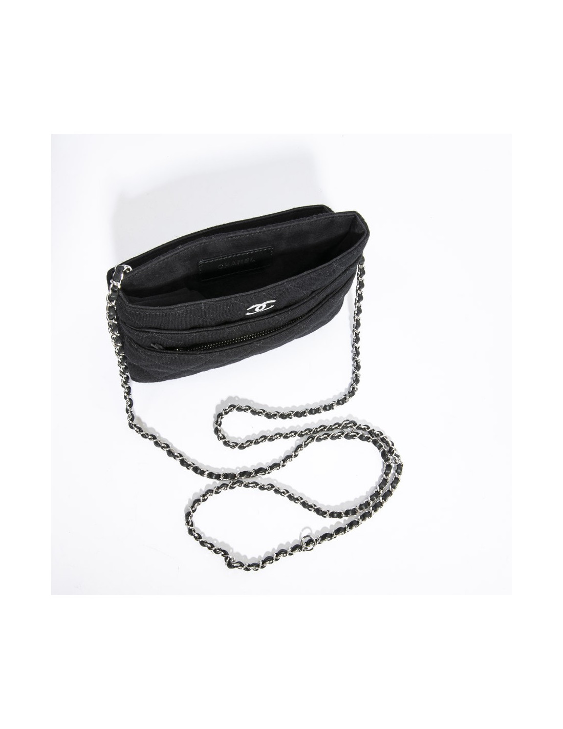 Pochette Chanel en jersey noir, avec plusieurs compartiments dont un zippé.