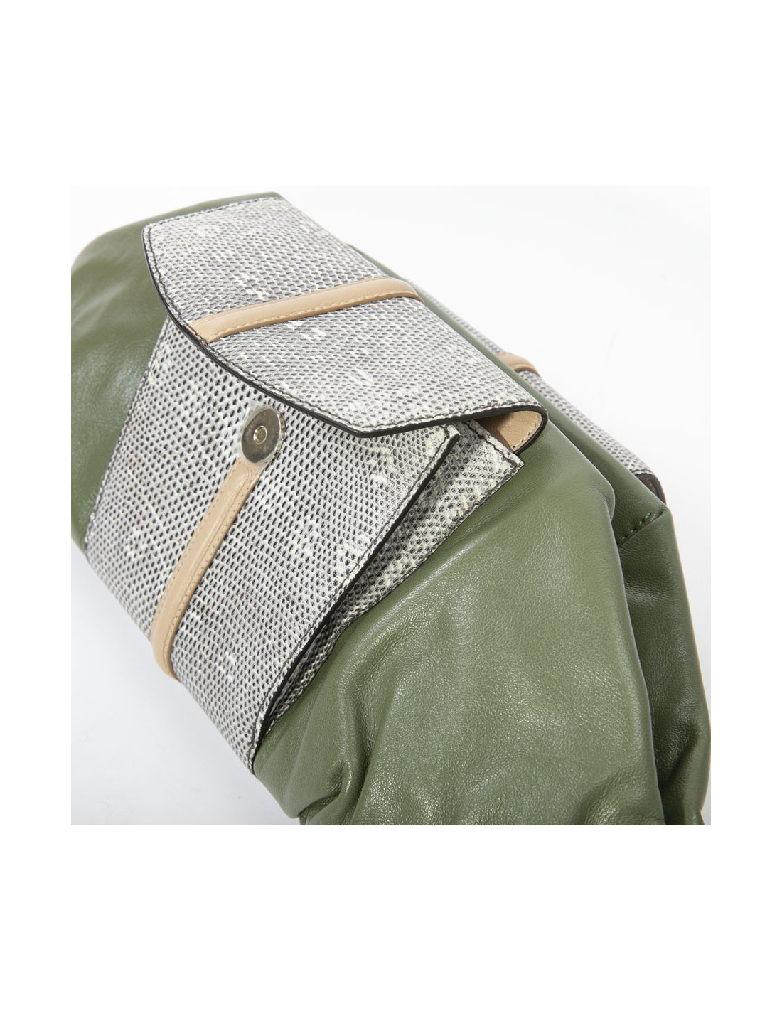 Pochette Francesca Castagnacci en cuir vert avec deux poches en lézard - détails :