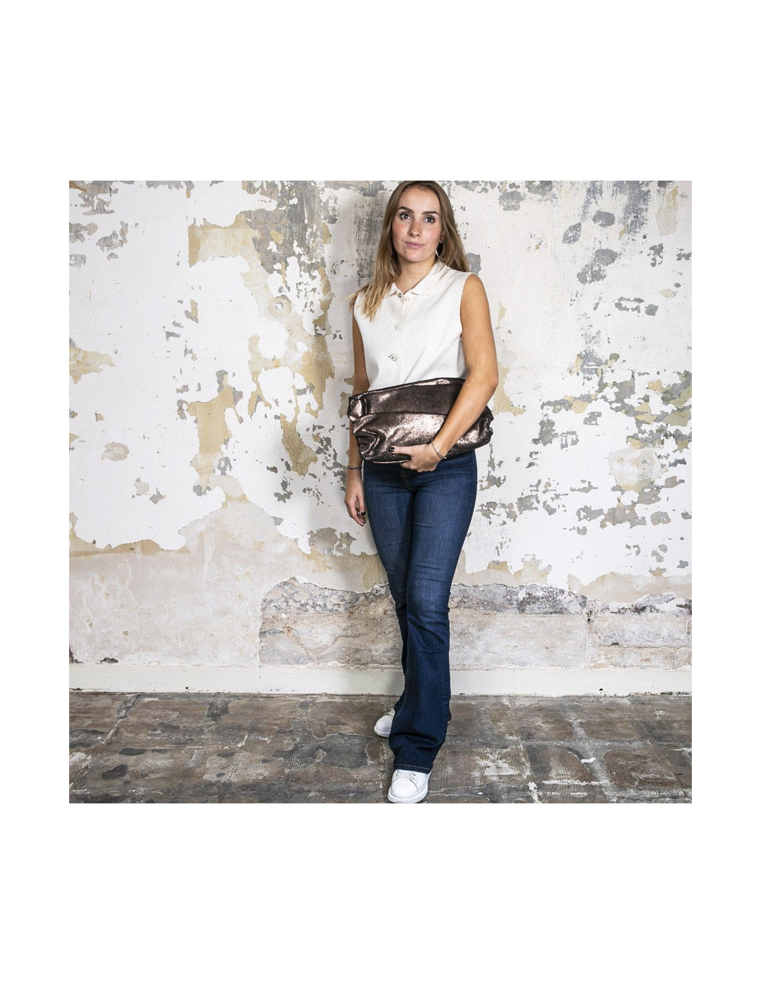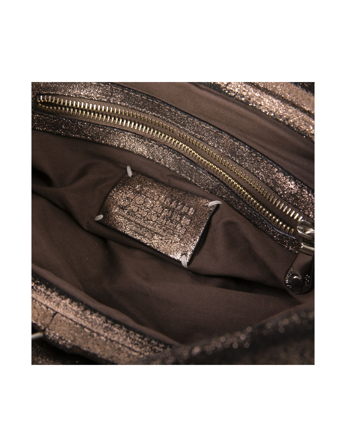 Doublure intérieure en tissu. Poche plate zippée. Fermoirs en métal argenté.