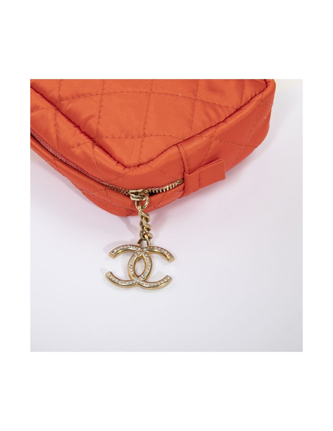 Pochette CHANEL satin orange et charms strass - détails :