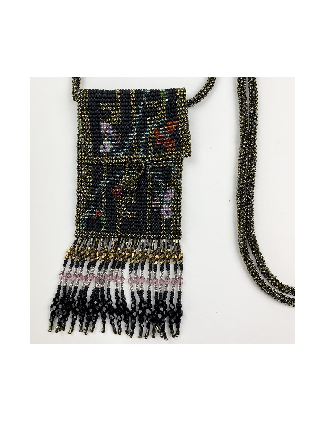 Le sac est en très bon état. Aucune perle ne manque. Le sac mesure 15 centimètres de hauteur sur 7 centimètres de largeur. La anse mesure 90 centimètres de longueur totale et elle est réglable.