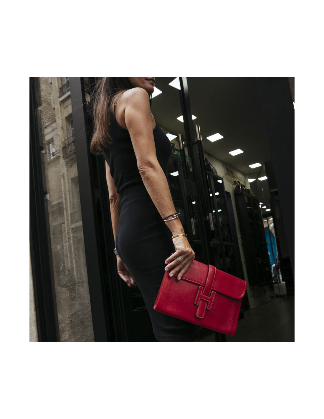 On ne décrit plus les articles iconiques de la Maison Hermès, tant ils sont reconnaissables. Cette pochette Jige est très élégante portée de jour comme de nuit. Elle est très bon état malgré quelques traces de griffures sur l'arrière.