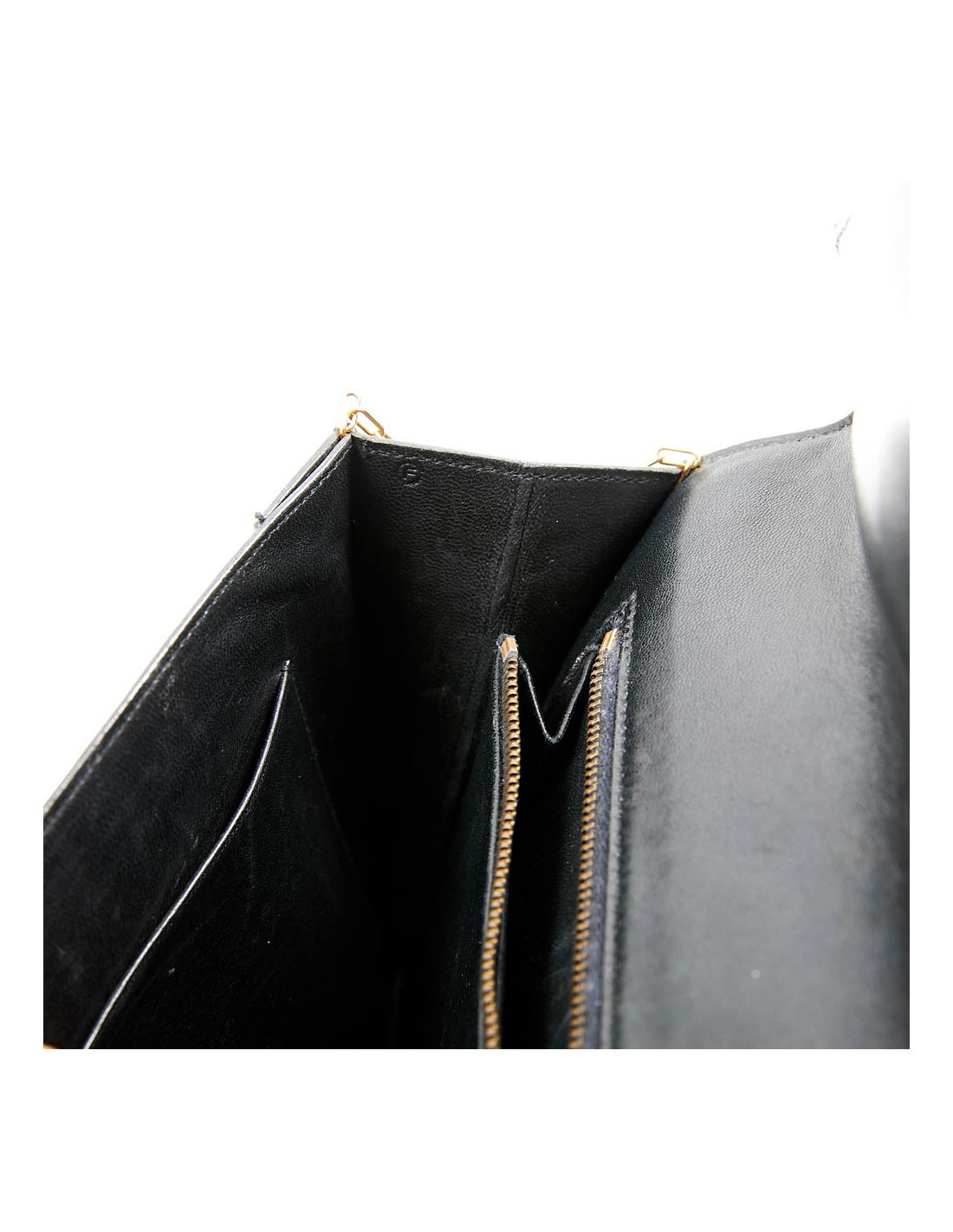 Il a une poche plaquée sous le rabat. L'intérieur est doublé en cuir avec 2 poches dont une zippée. A l'arrière du sac, il y a quelques marques très légères (voir photos).