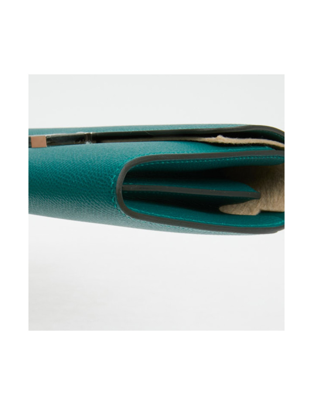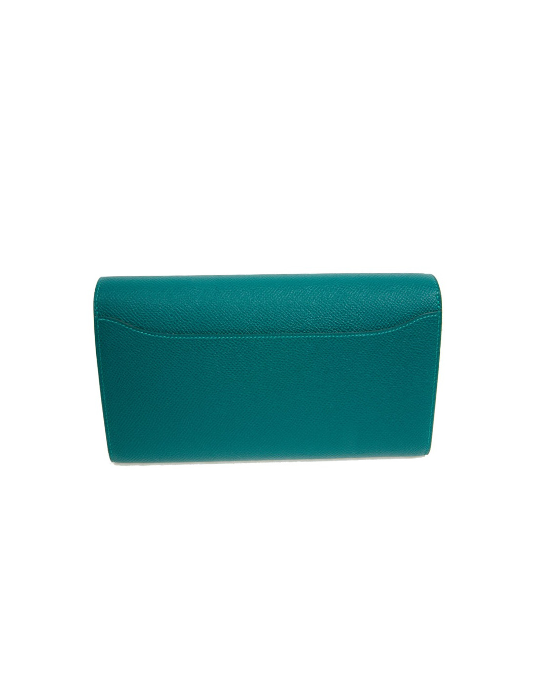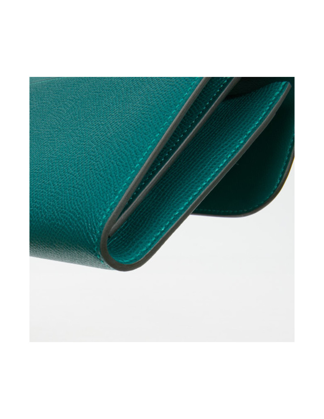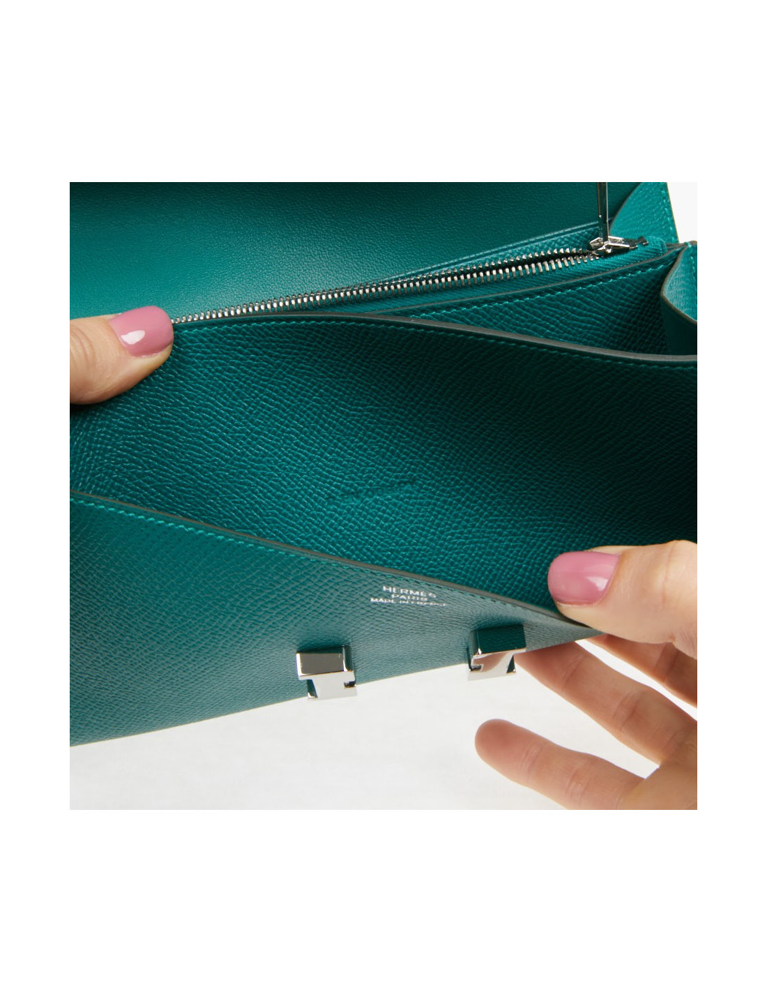 Ce magnifique portefeuille Constance de la Maison Hermès est en cuir de veau Epsom couleur Malachite. Fermoir H de la collection Constance en métal argent palladié. A l'intérieur un porte monnaie central avec fermeture à glissière entouré de deux grands espaces de rangement avec des poches pour cartes de crédit.