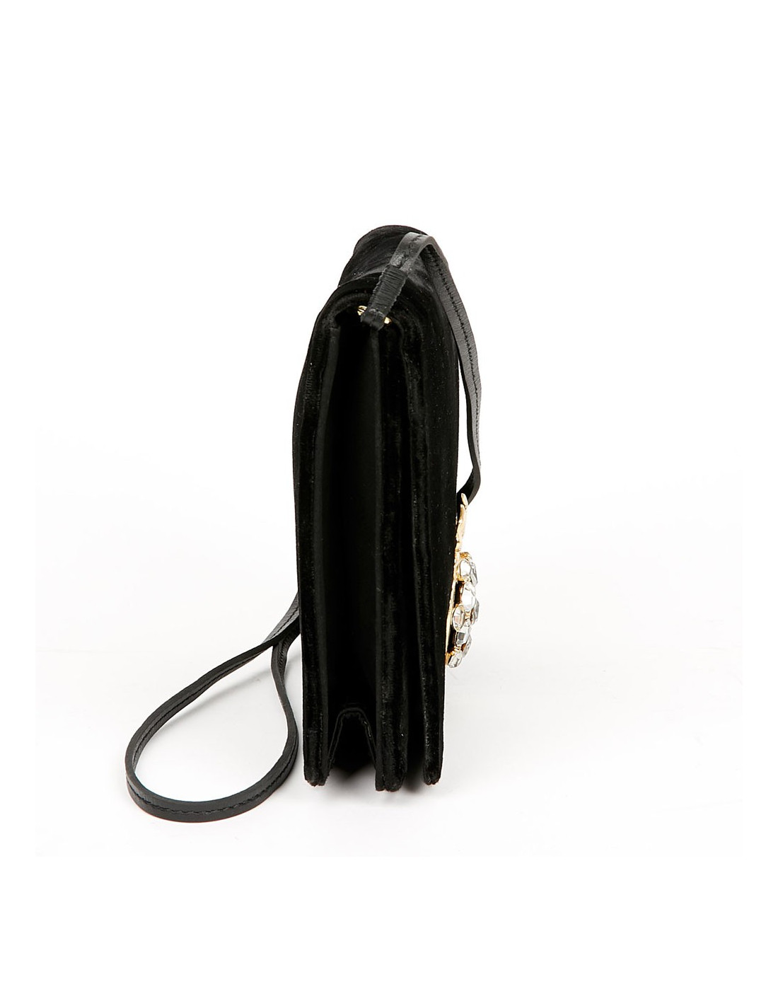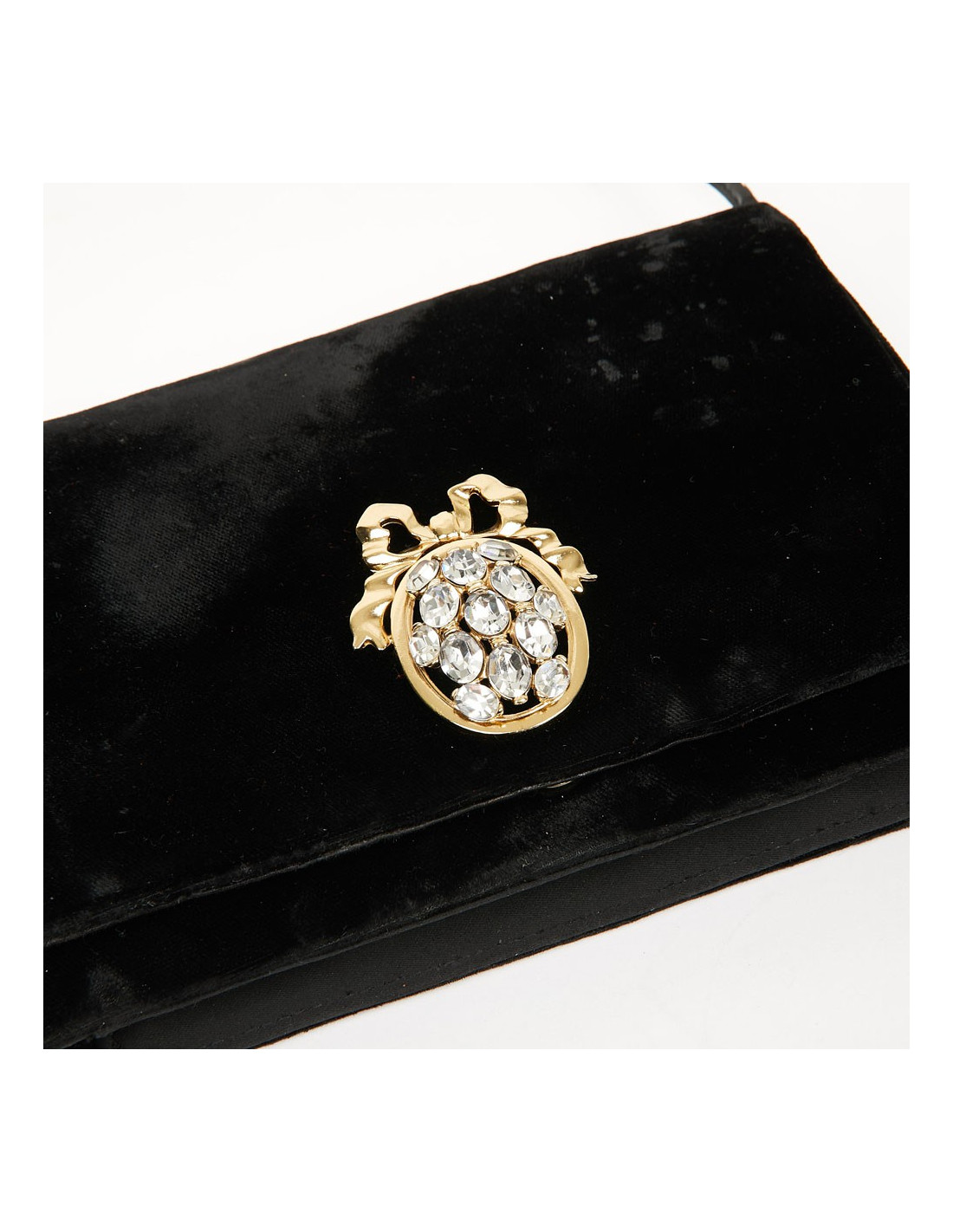 Ravissant sac du soir Christian Dior vintage. Ce sac est en panne de velours noir, agrémenté d'un fermoir bijou en strass et métal doré, représentant l'un des emblème de cette grande maison qu'est Dior, le fermoir est un bouton pression.