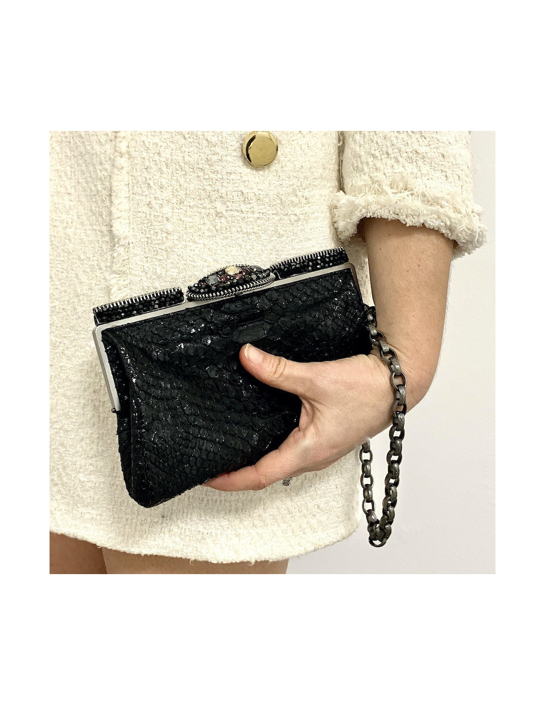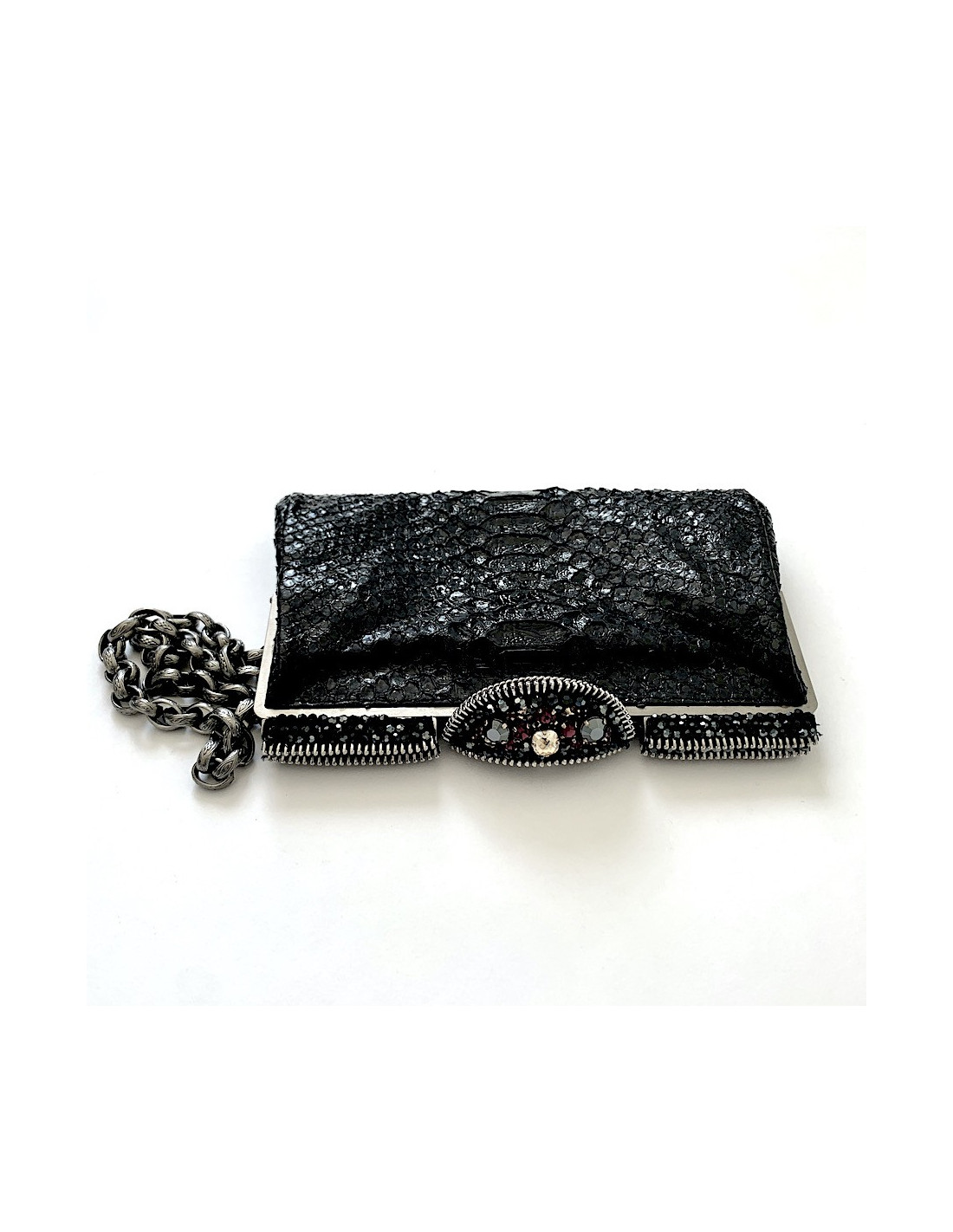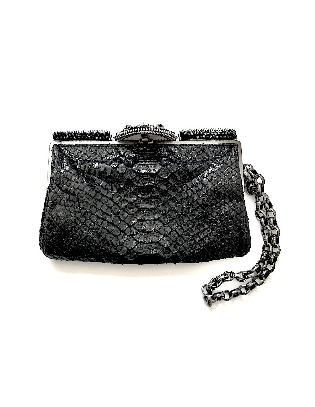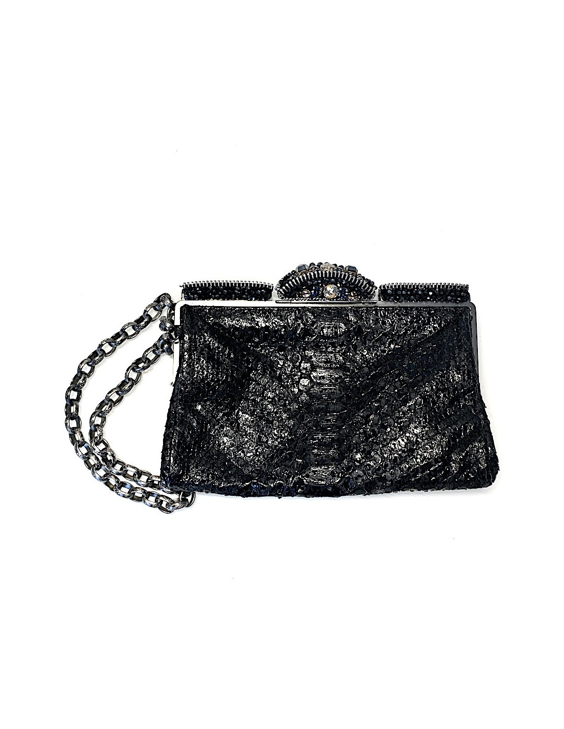 Pochette CHANEL python noir et strass