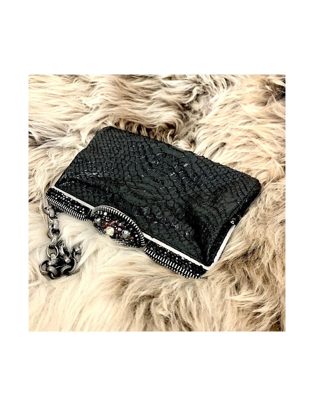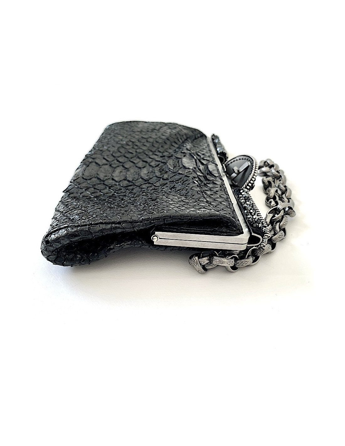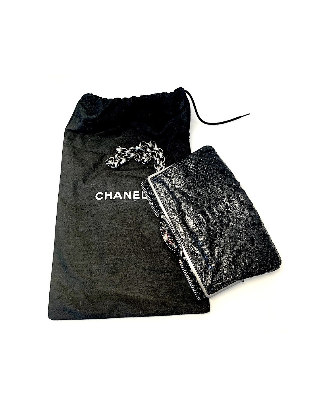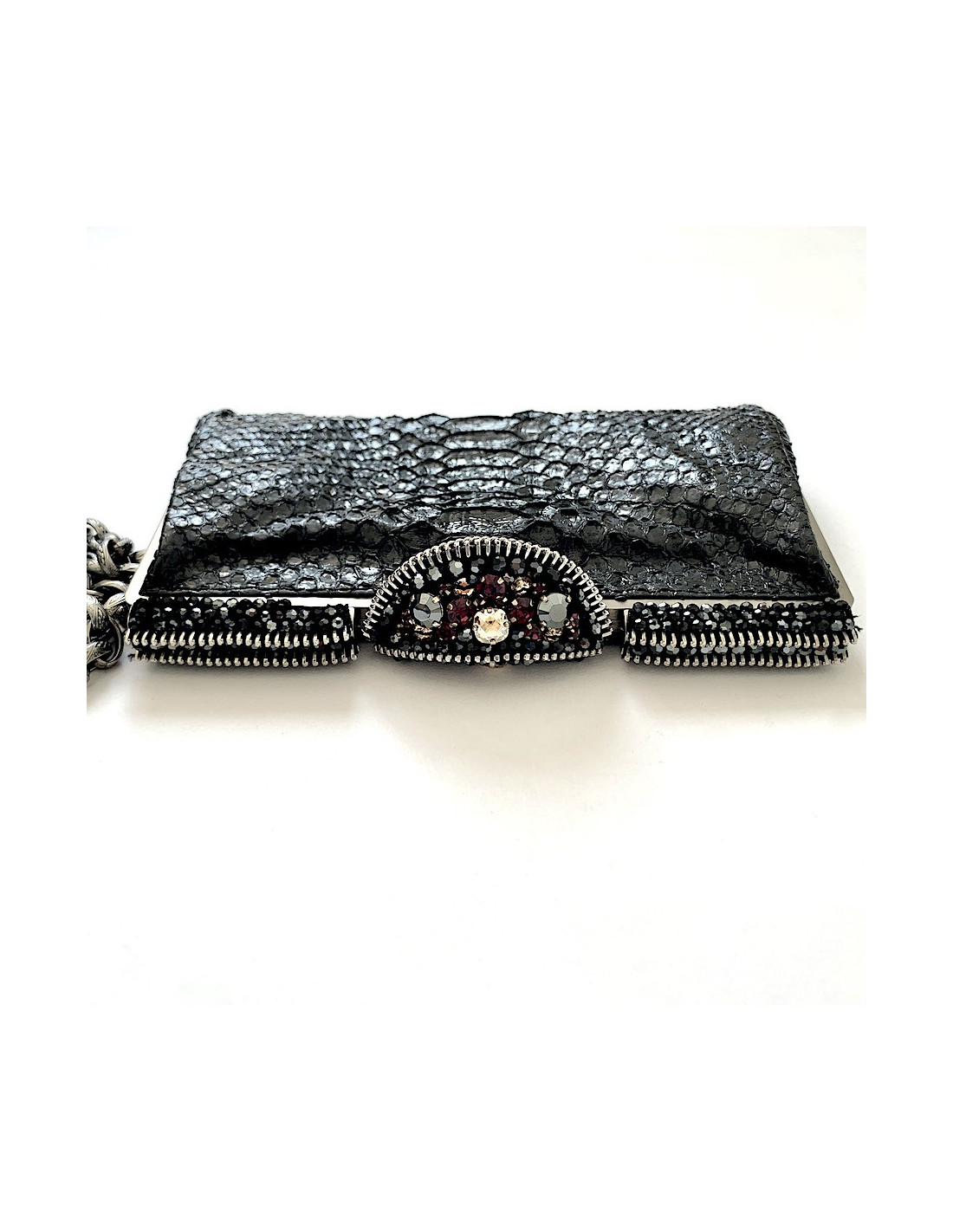 Pochette CHANEL python noir et strass
