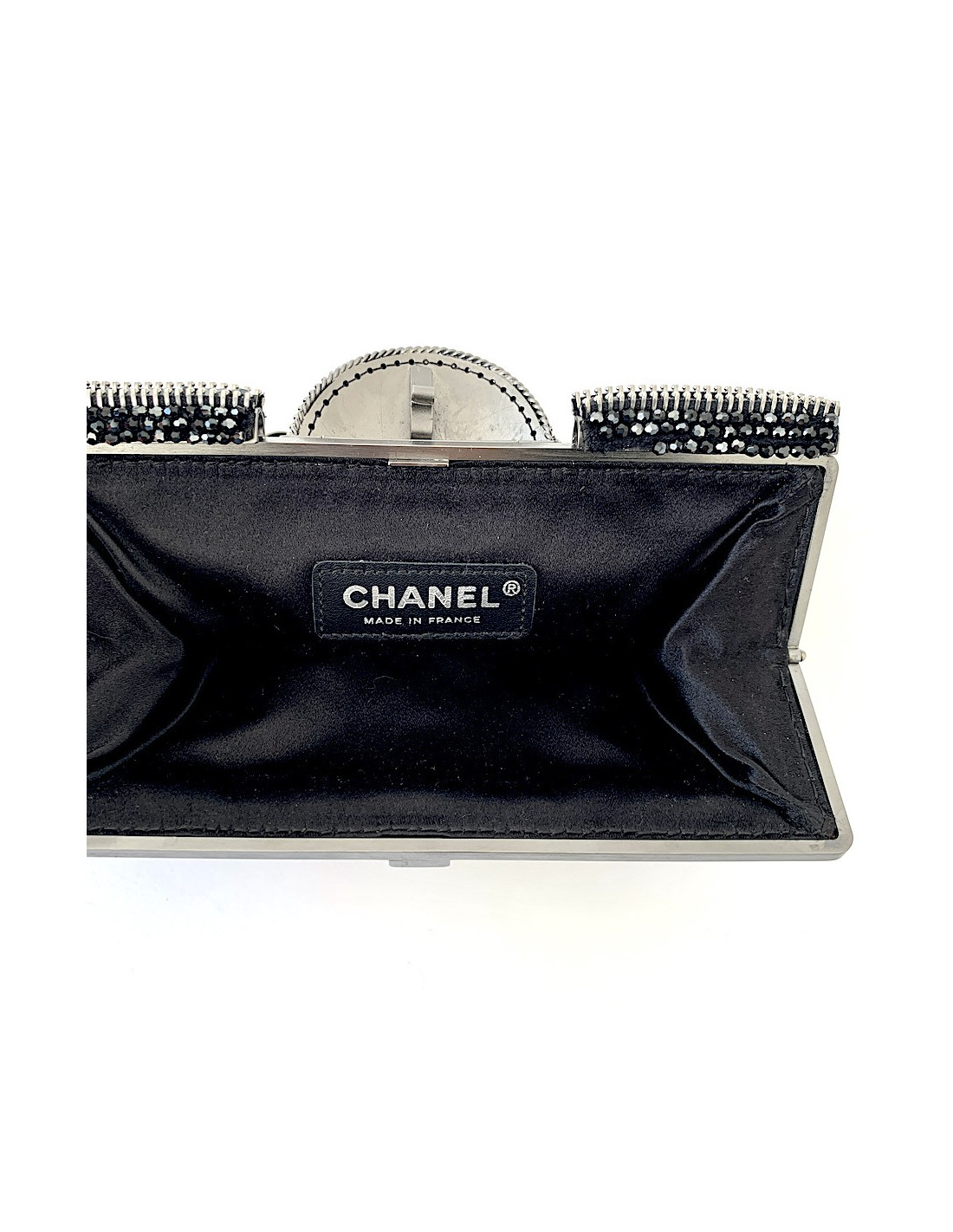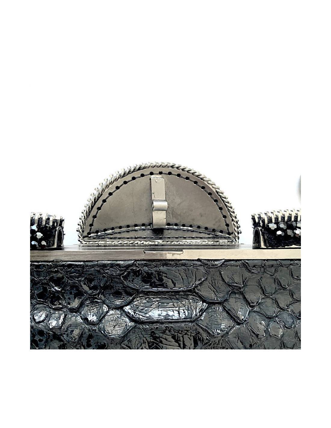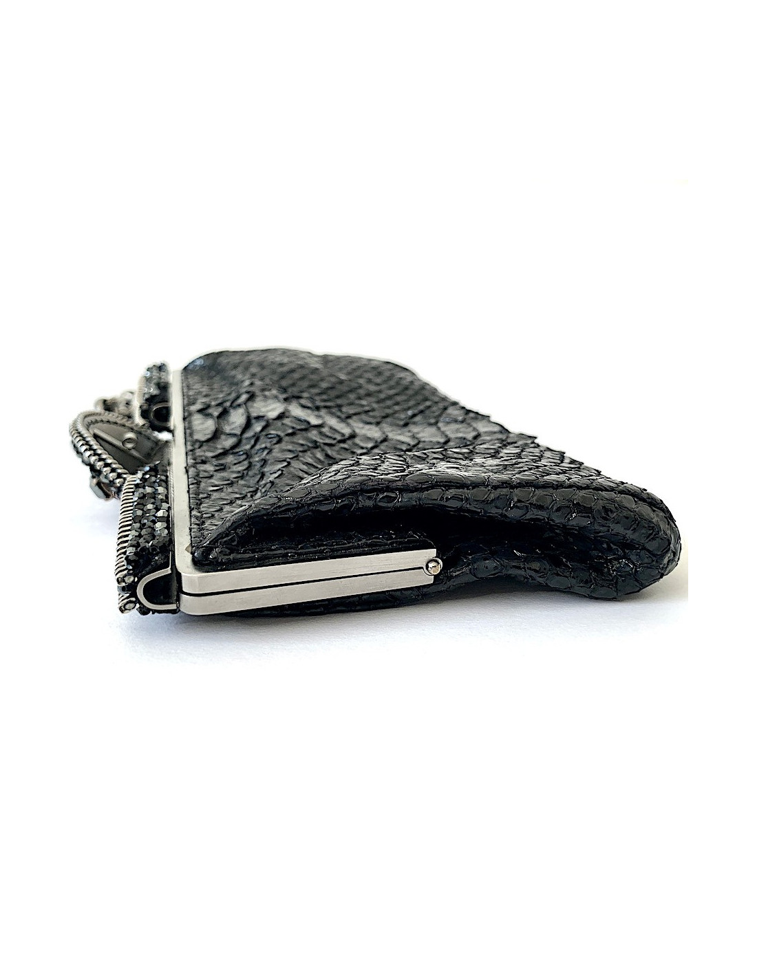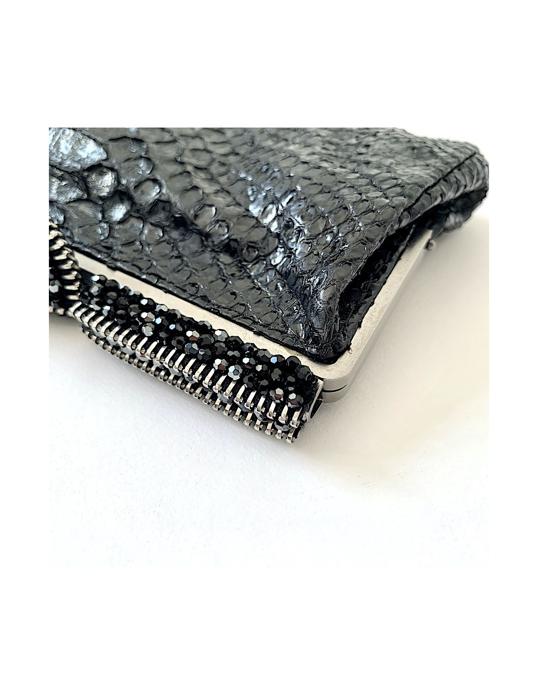 Pochette CHANEL python noir et strass