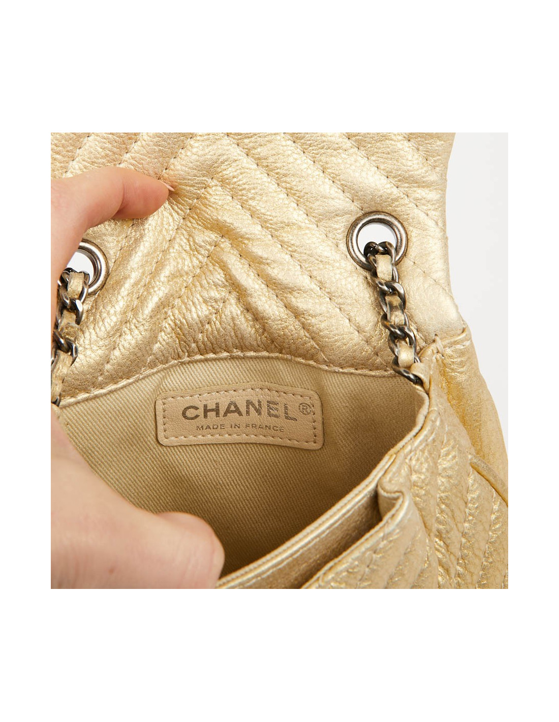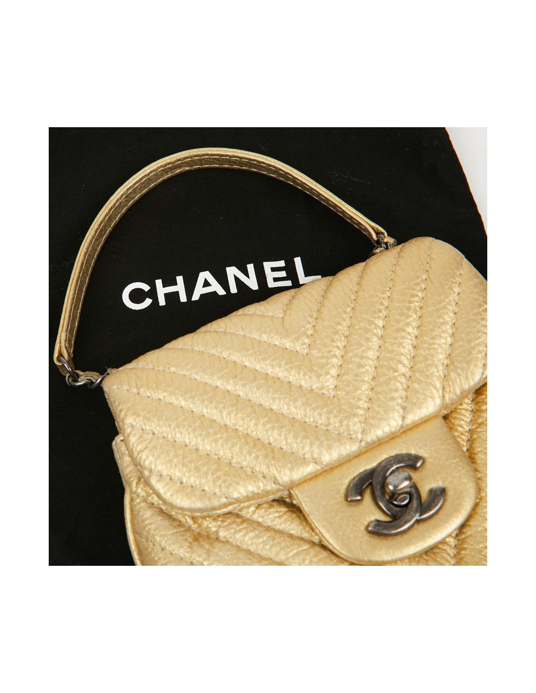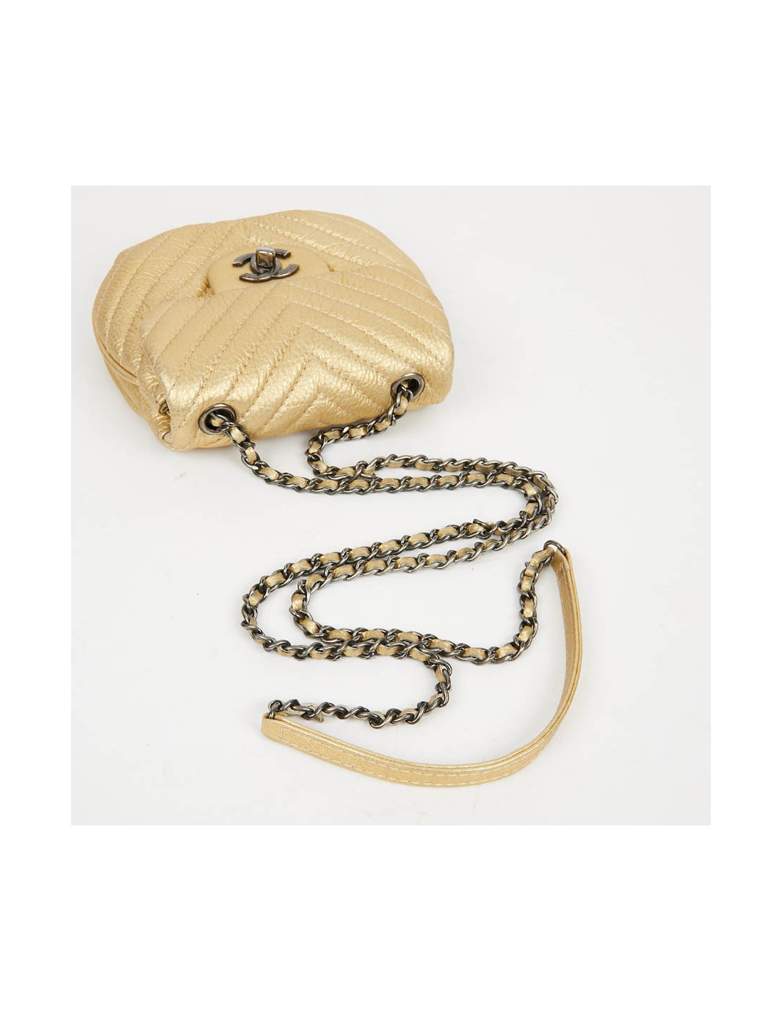 Sac CHANEL bandoulière chevron doré