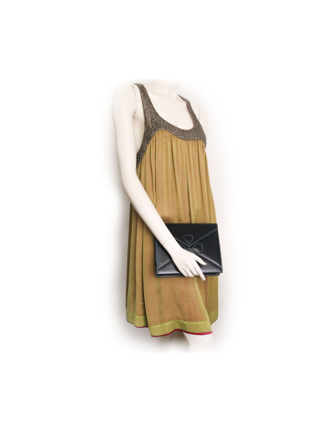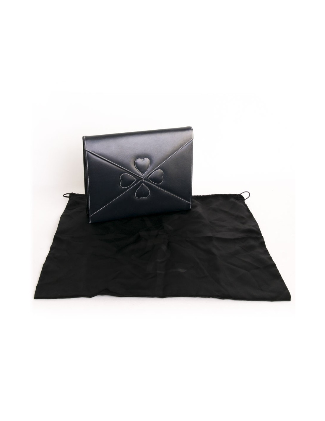 Pochette en cuir box bleu Yves Saint Laurent vintage. Coeurs cousus à l'avant du sac.