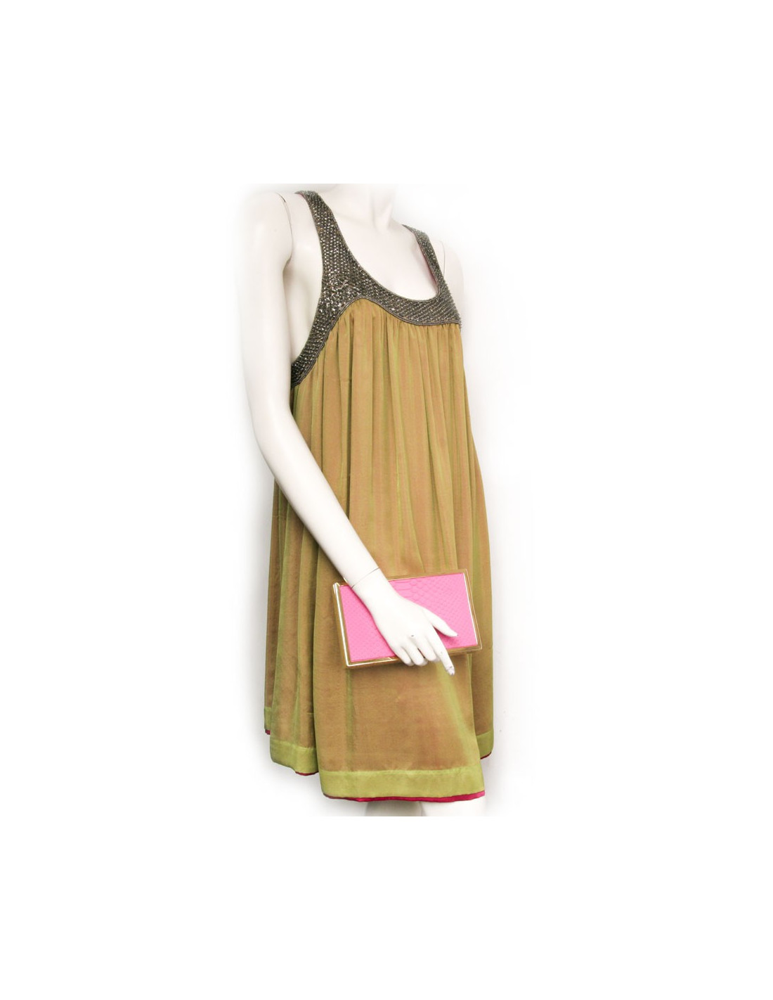 Sac clutch VICTORIA BECKHAM en python fushia et laiton doré