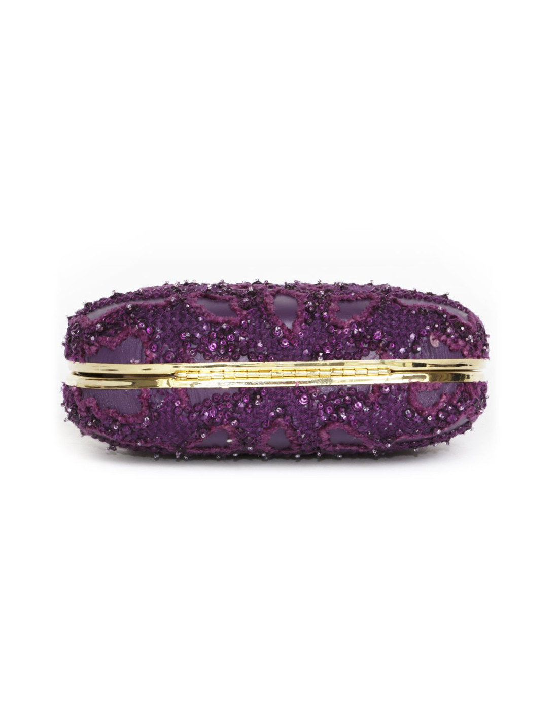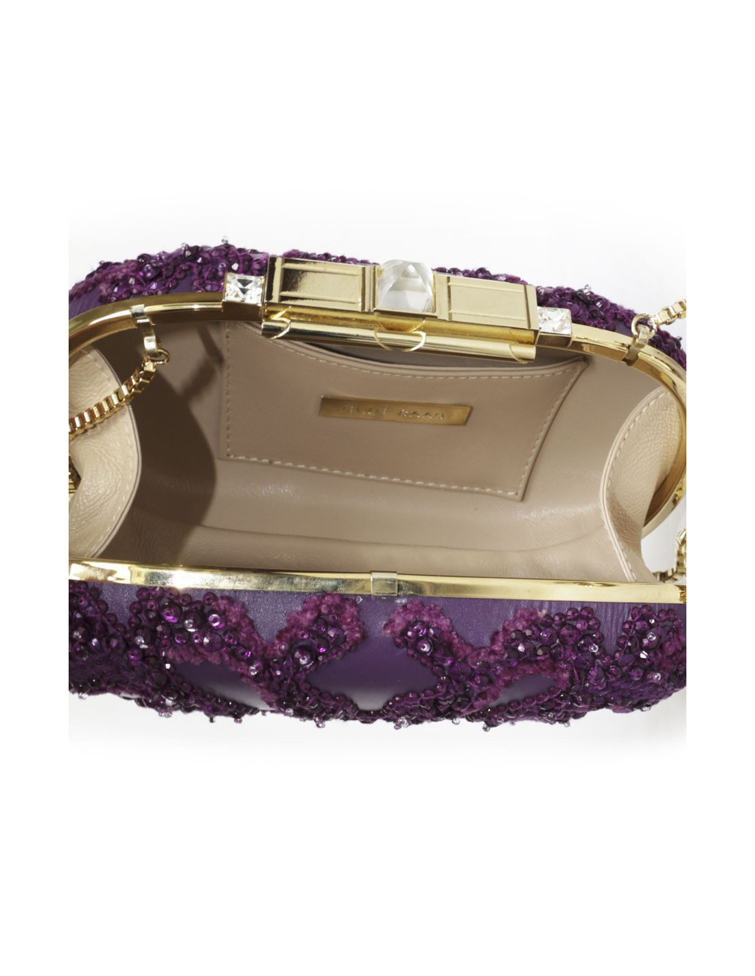 Minaudière Elie Saab, sac du soir en cuir violet avec broderie de perles