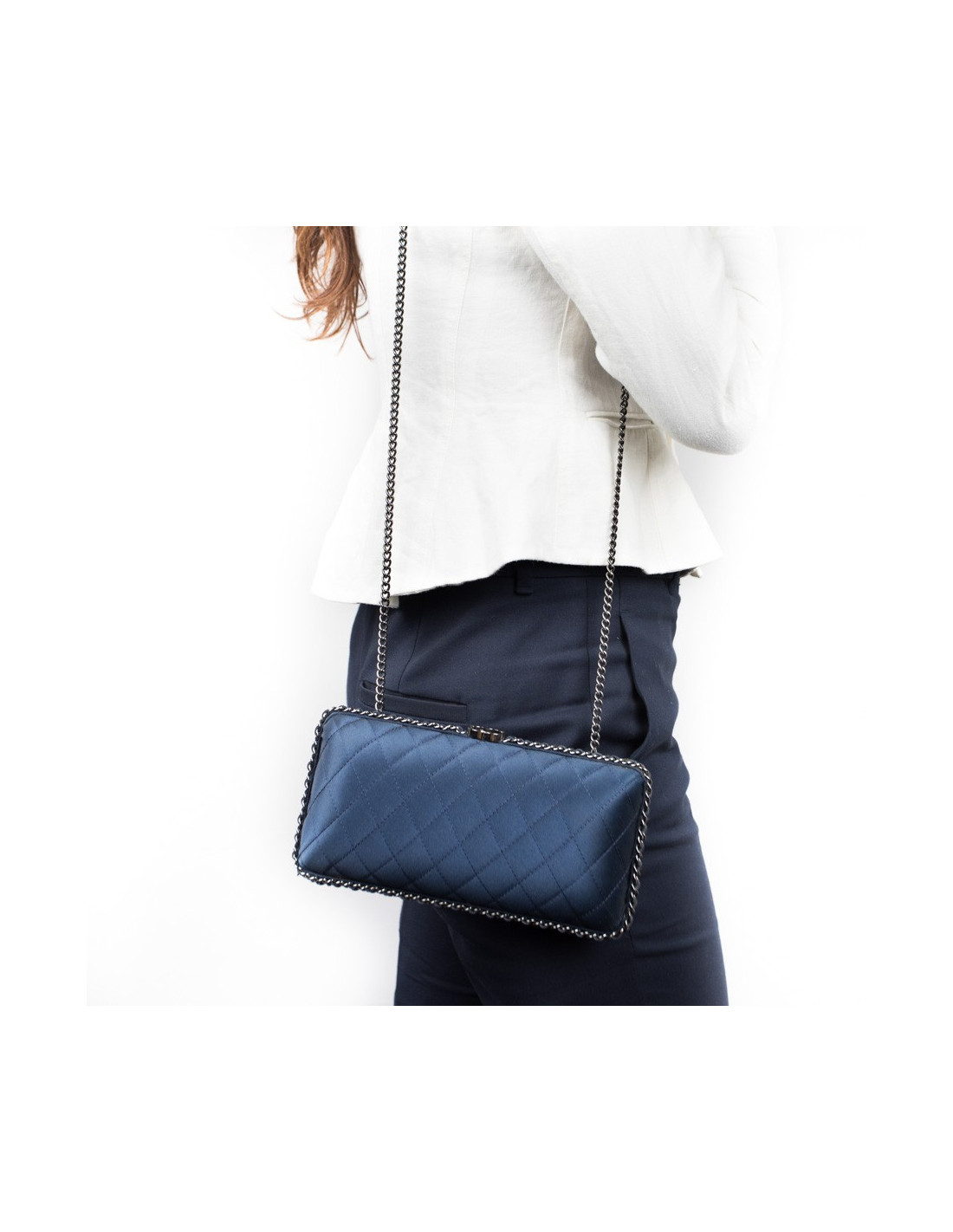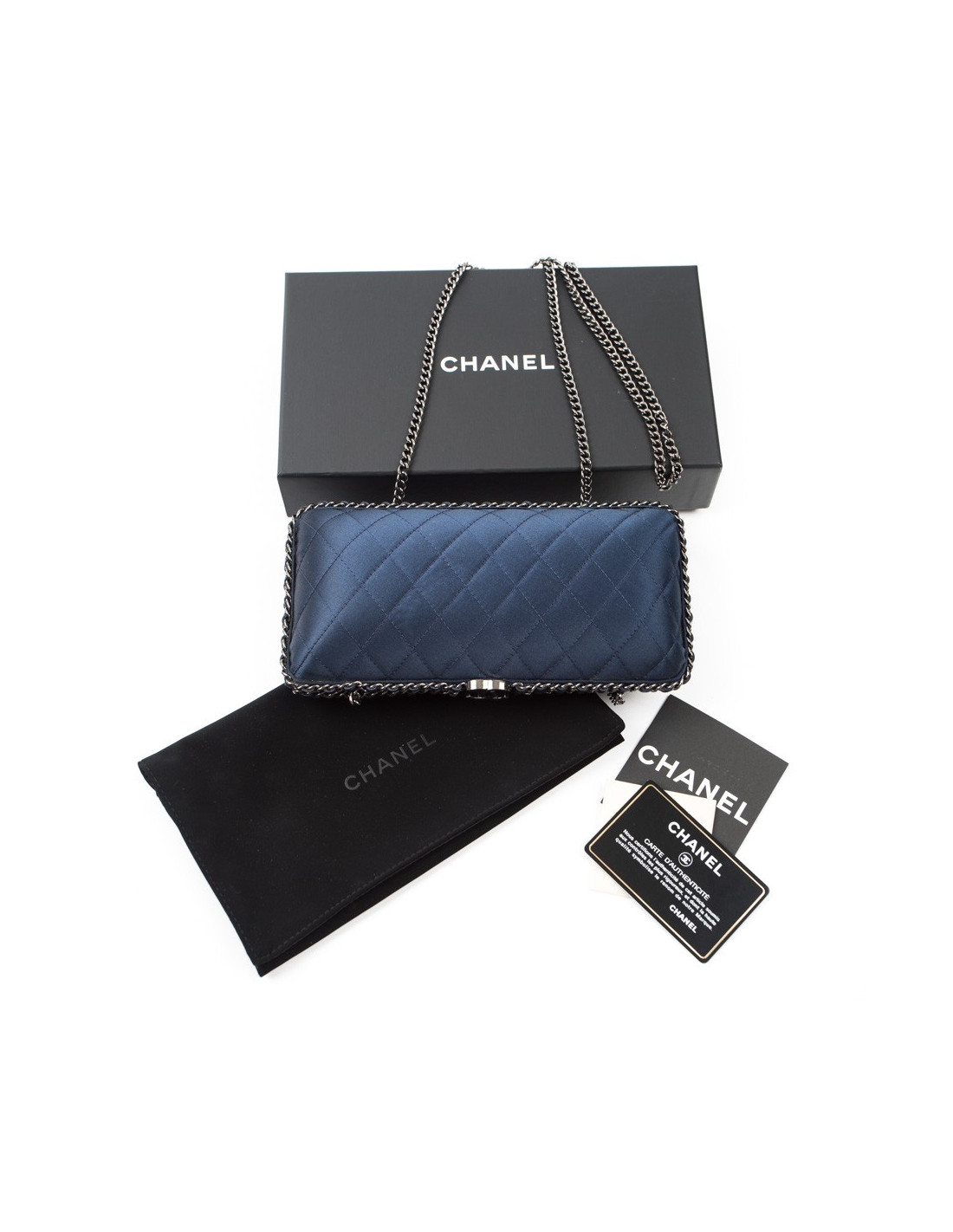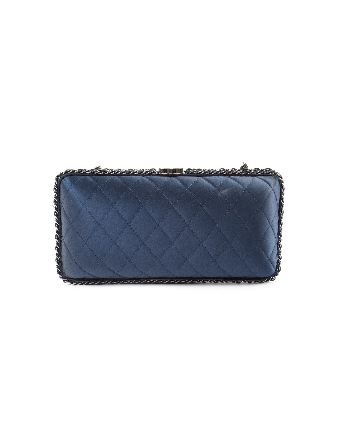 Sac minaudière CHANEL satin de soie bleu nuit