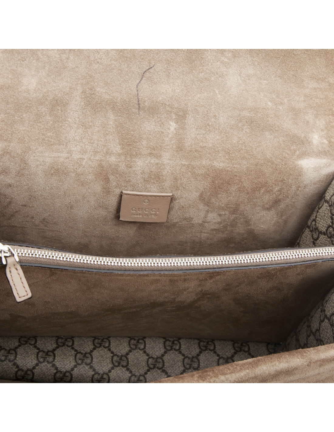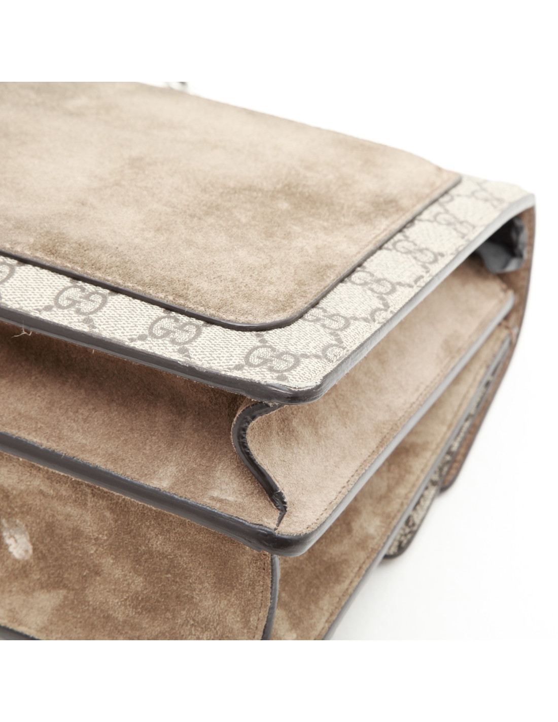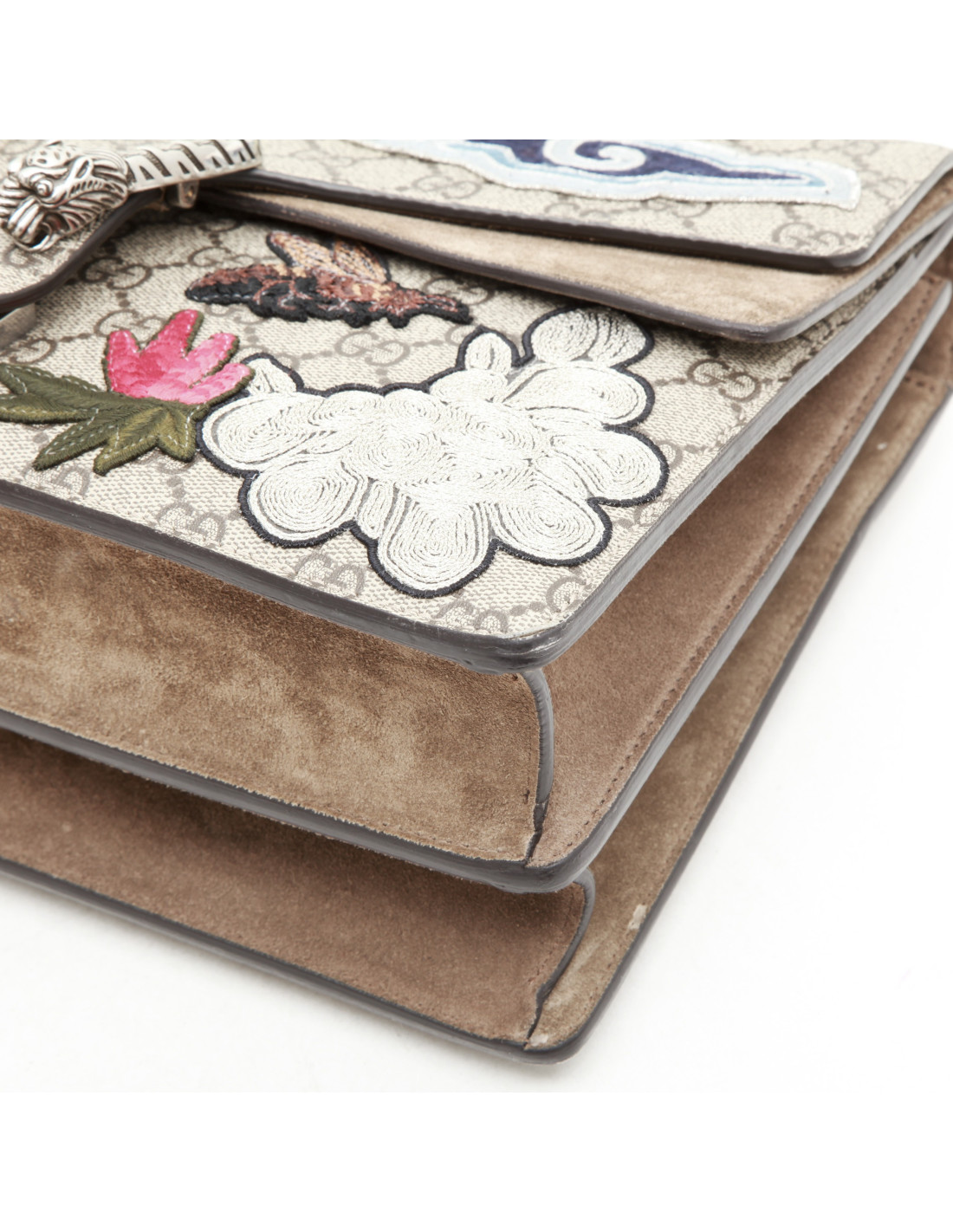 Sac Gucci Dionysus en toile suprême GG avec empiècements en daim et broderies. Très peu porté. Accastillage métal argent.