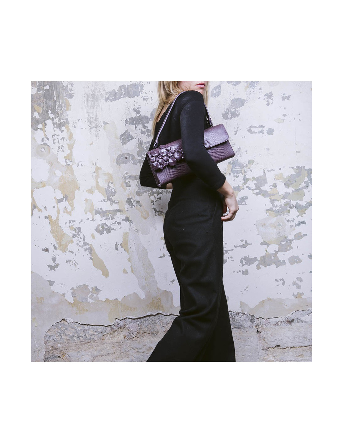 Sac BOTTEGA VENETA cuir façon python parme foncé