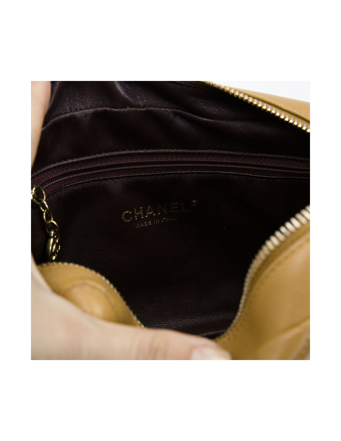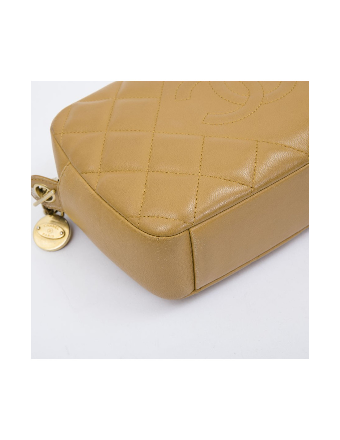 Sac caméra CHANEL cuir d'agneau camel matelassé