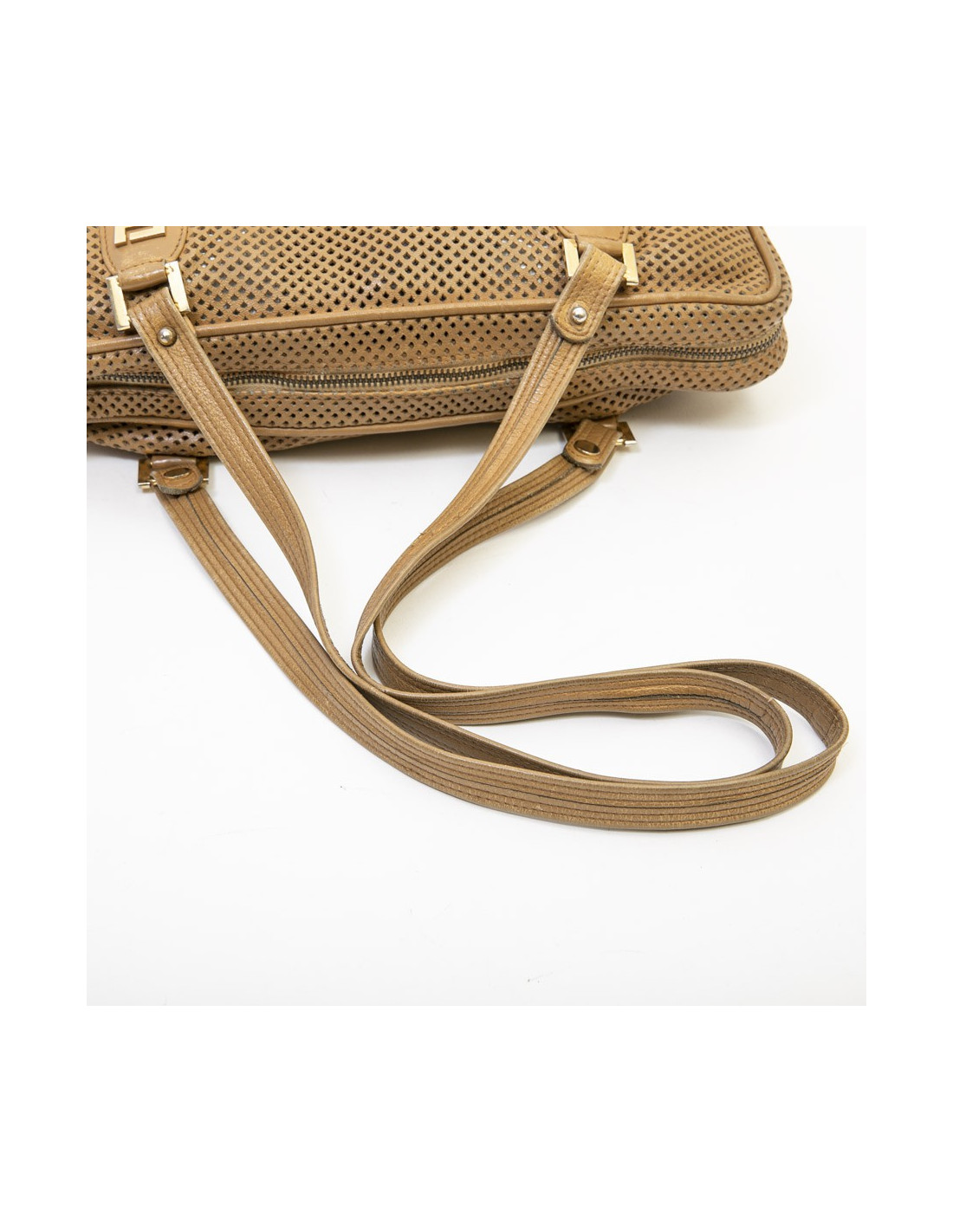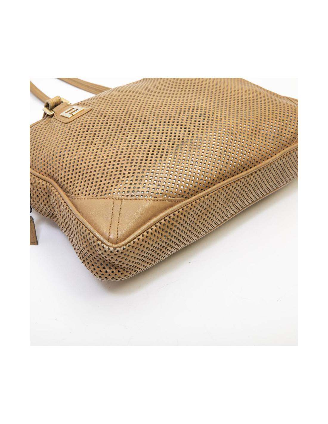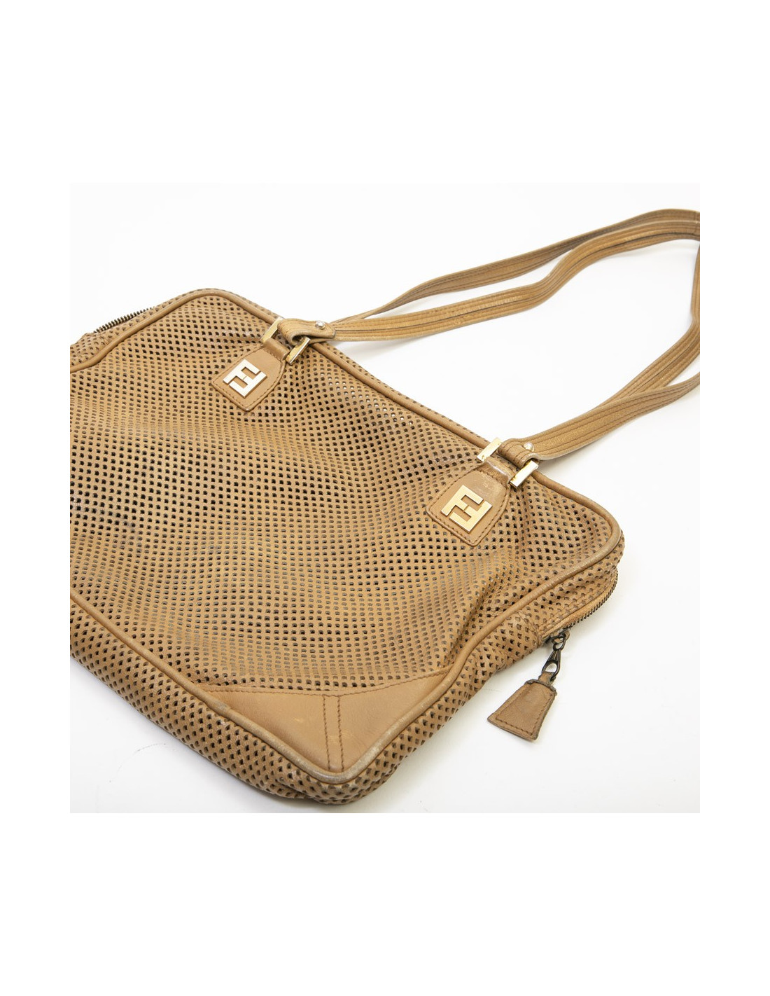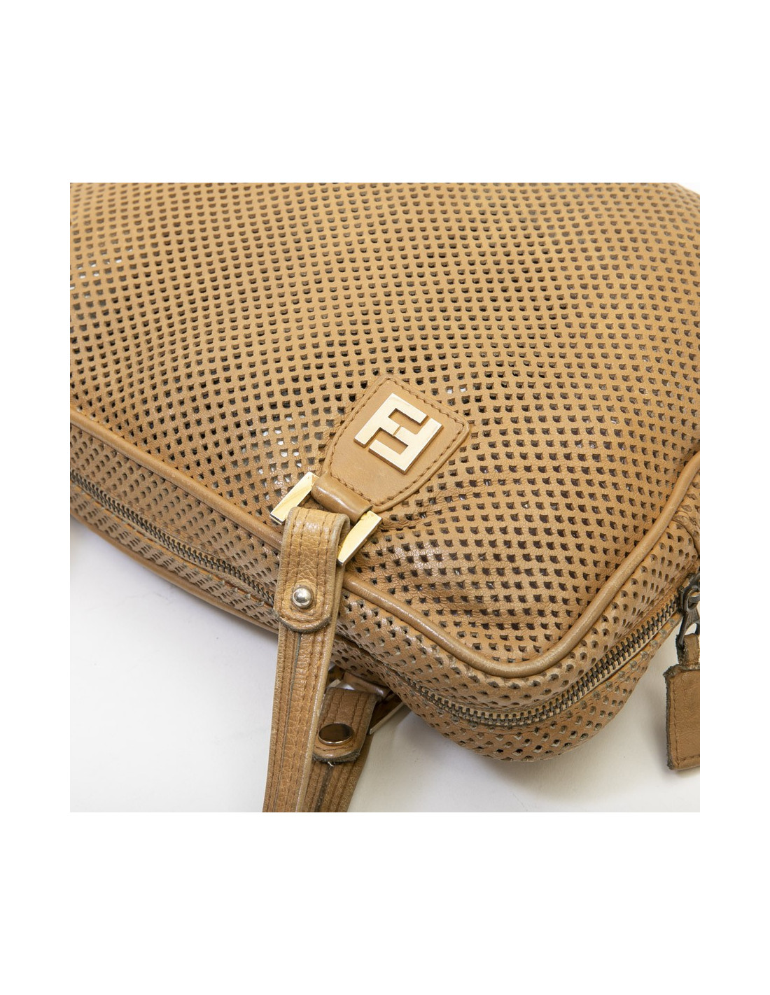 Sac vintage Fendi en cuir perforé beige. Bijouterie dorée. Fermeture zippée.