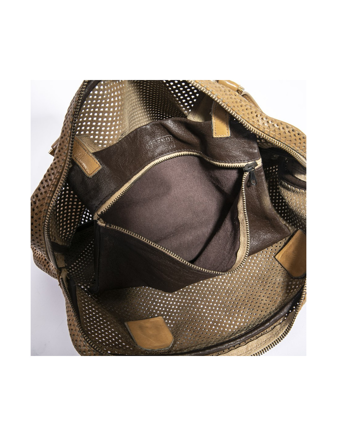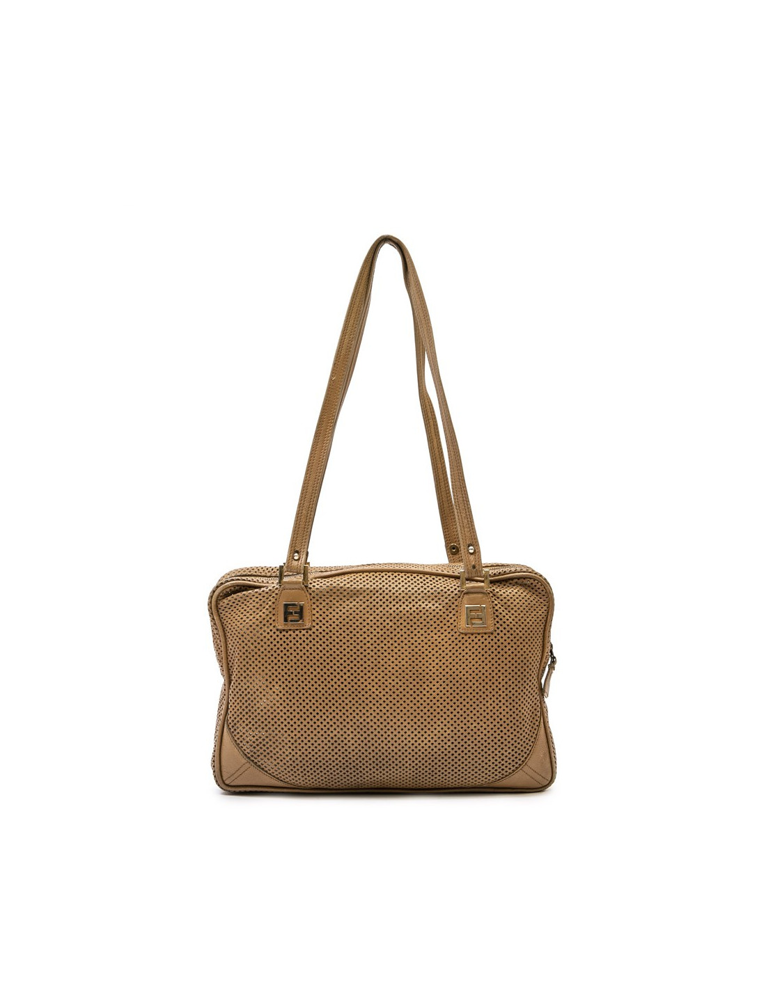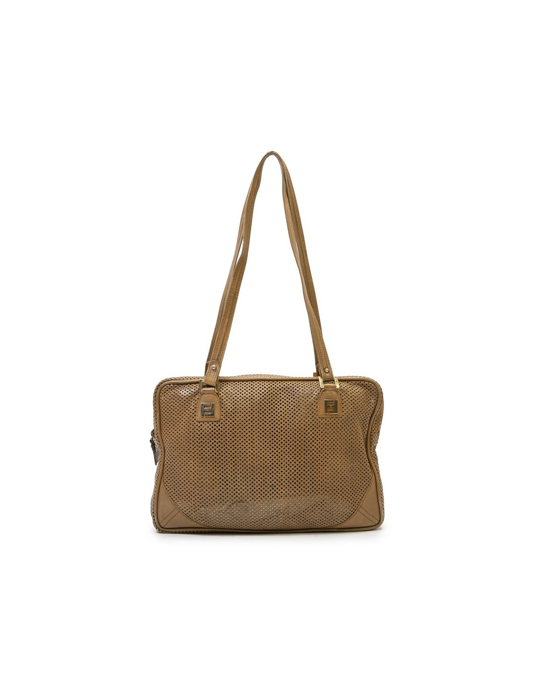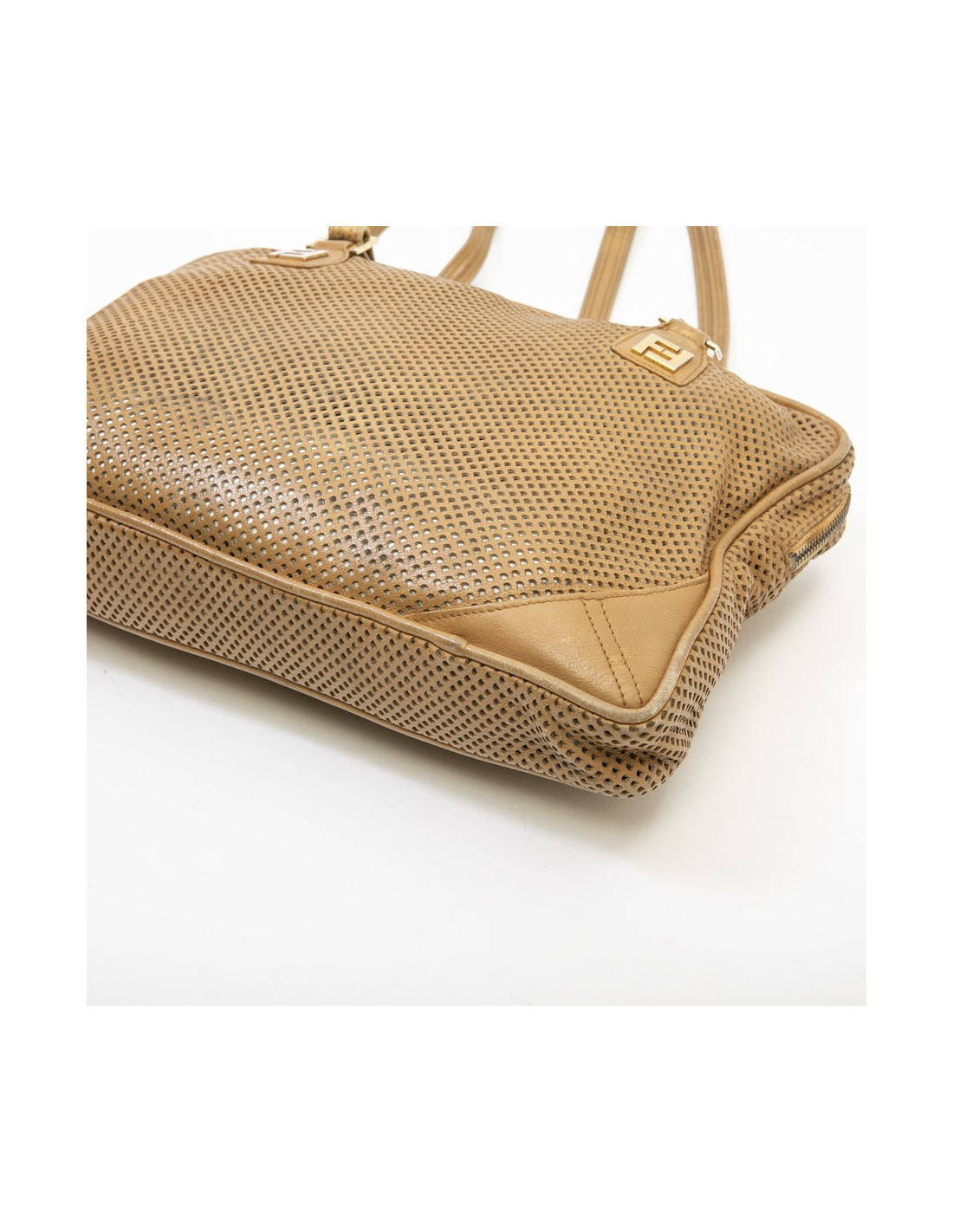 Sac vintage Fendi en cuir perforé beige. Bijouterie dorée. Fermeture zippée.