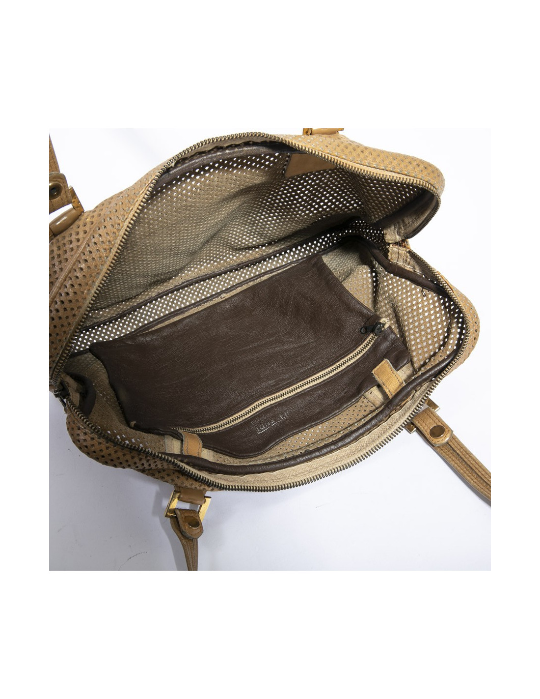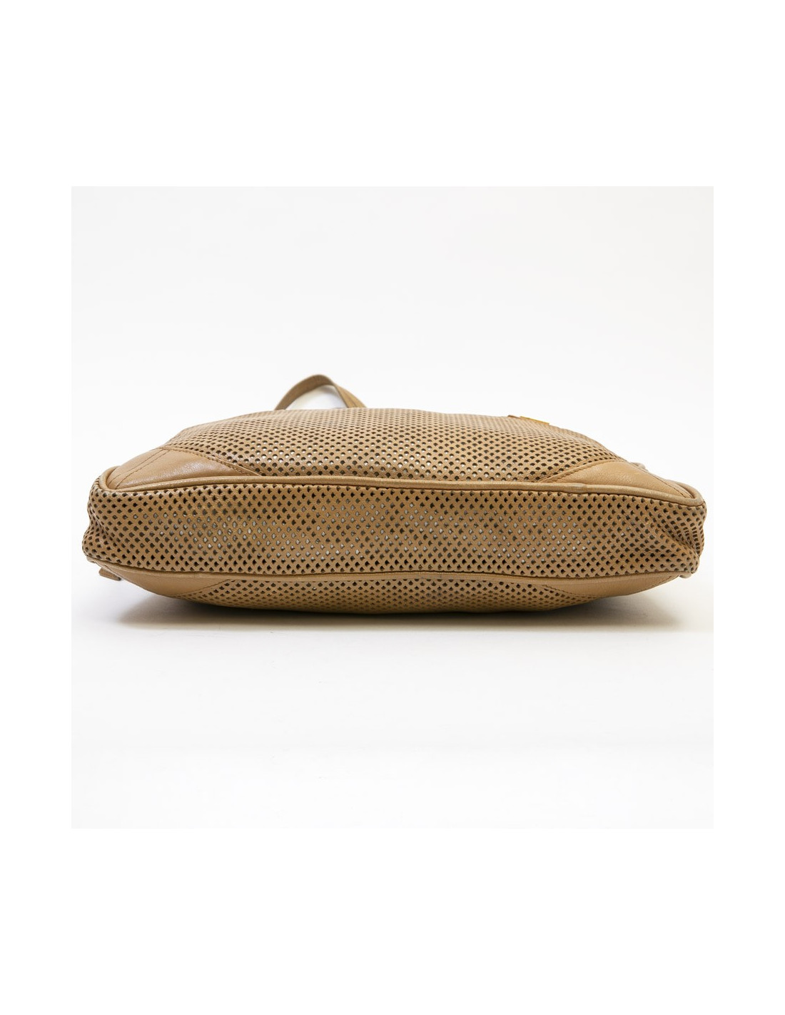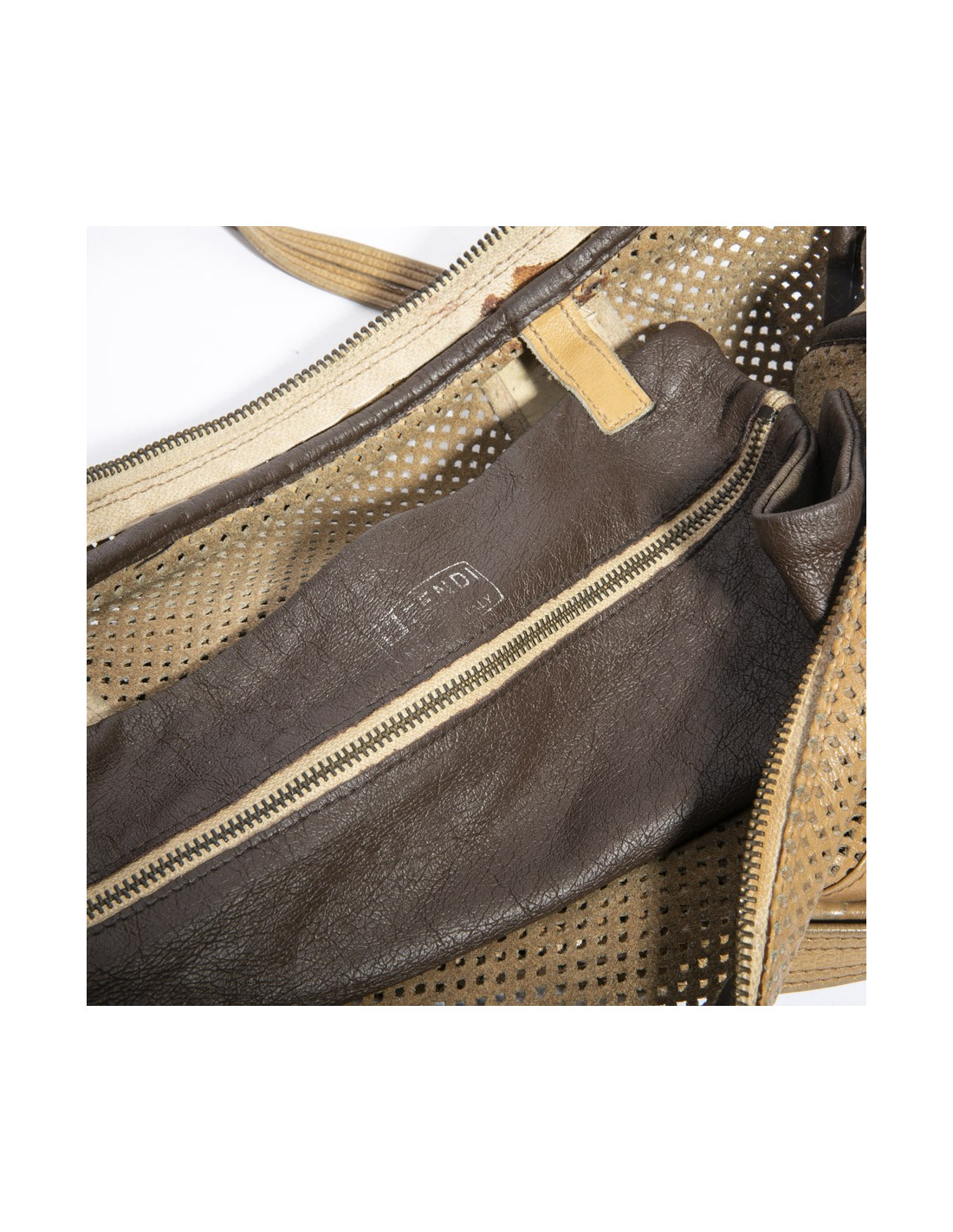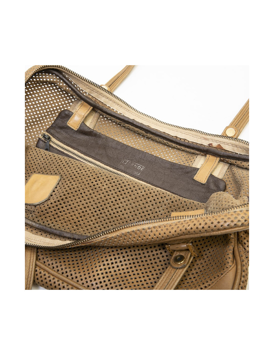 Sac vintage Fendi en cuir perforé beige. Bijouterie dorée. Fermeture zippée.