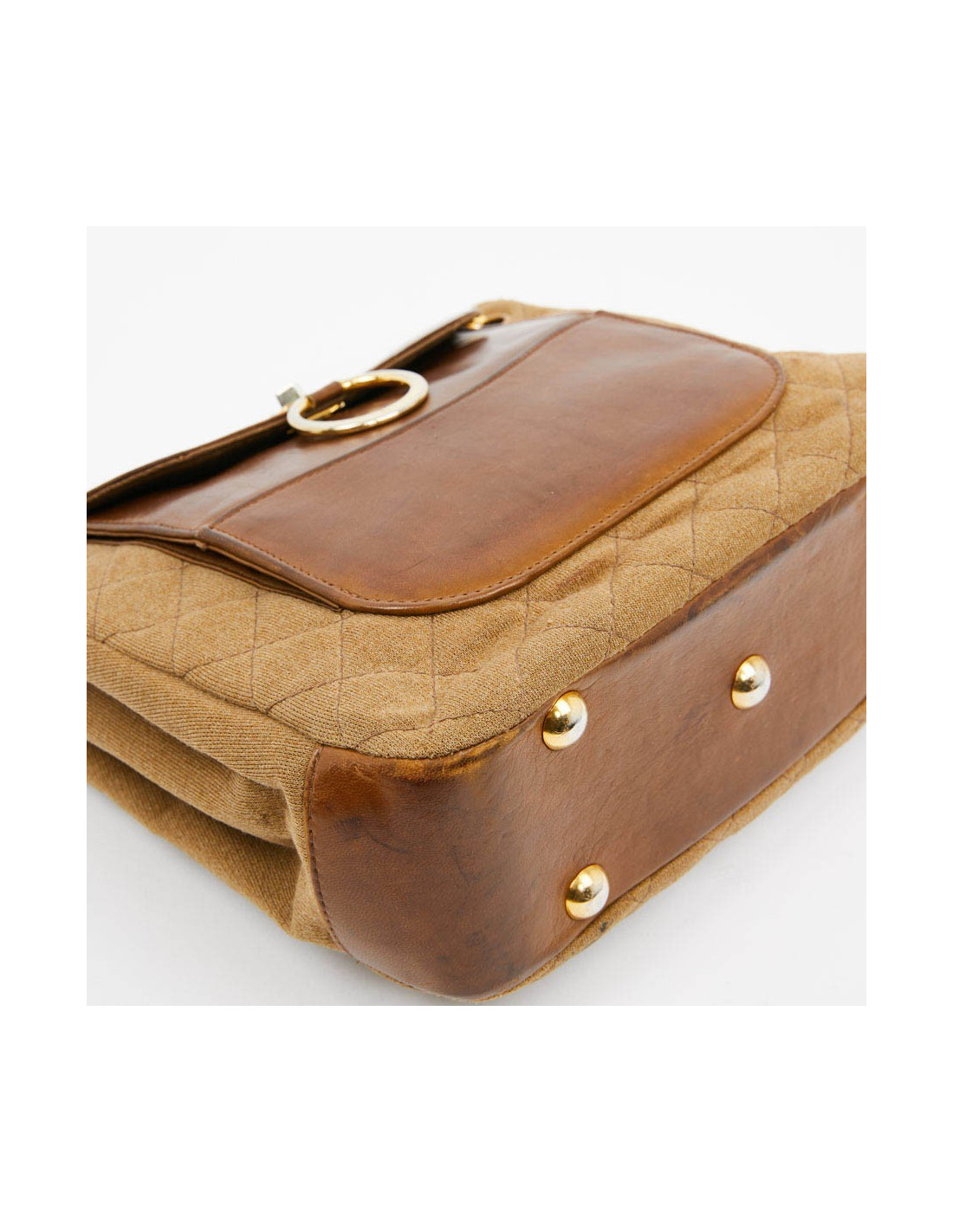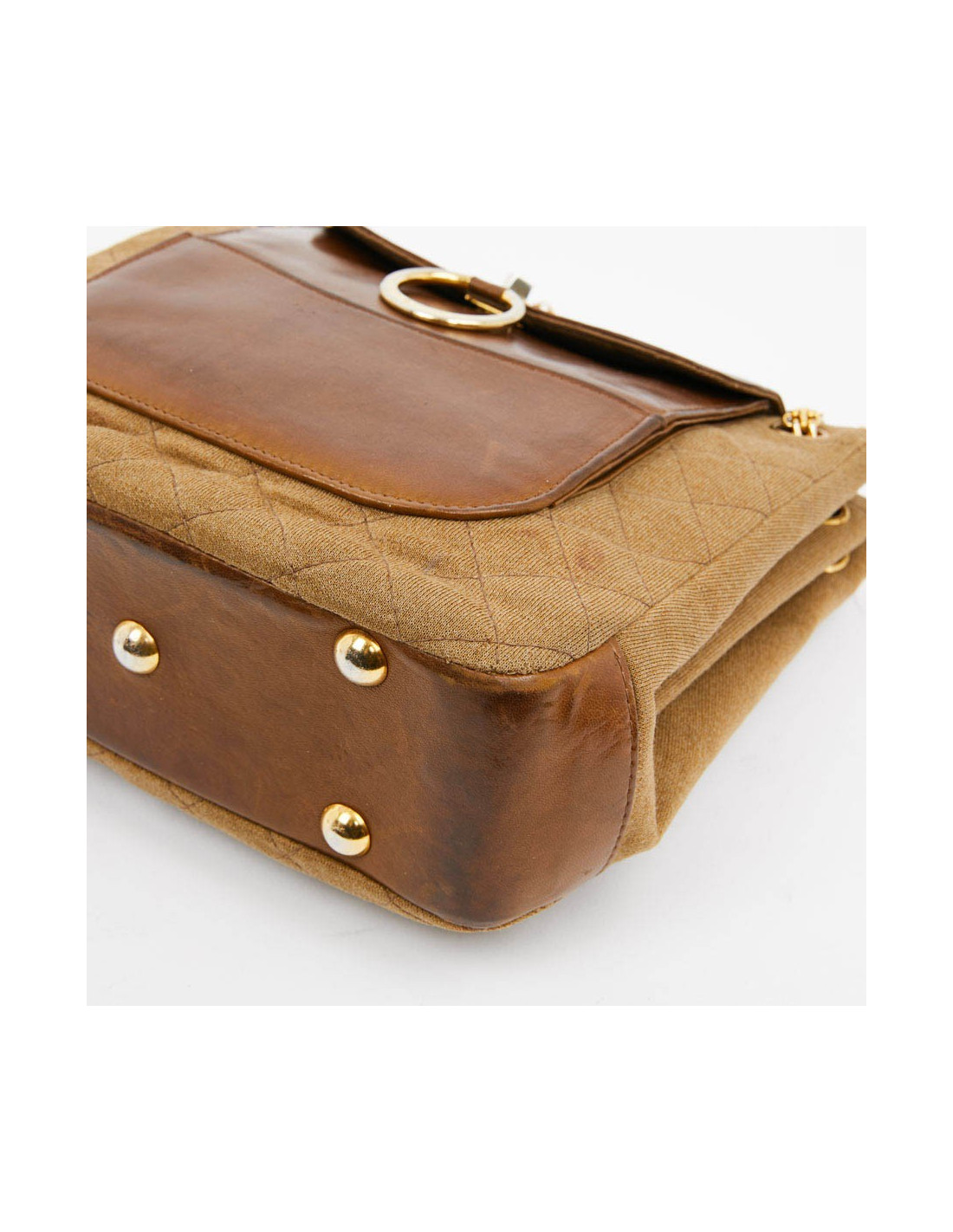 Sac CHANEL Vintage marron, bijouterie couleur or - détails