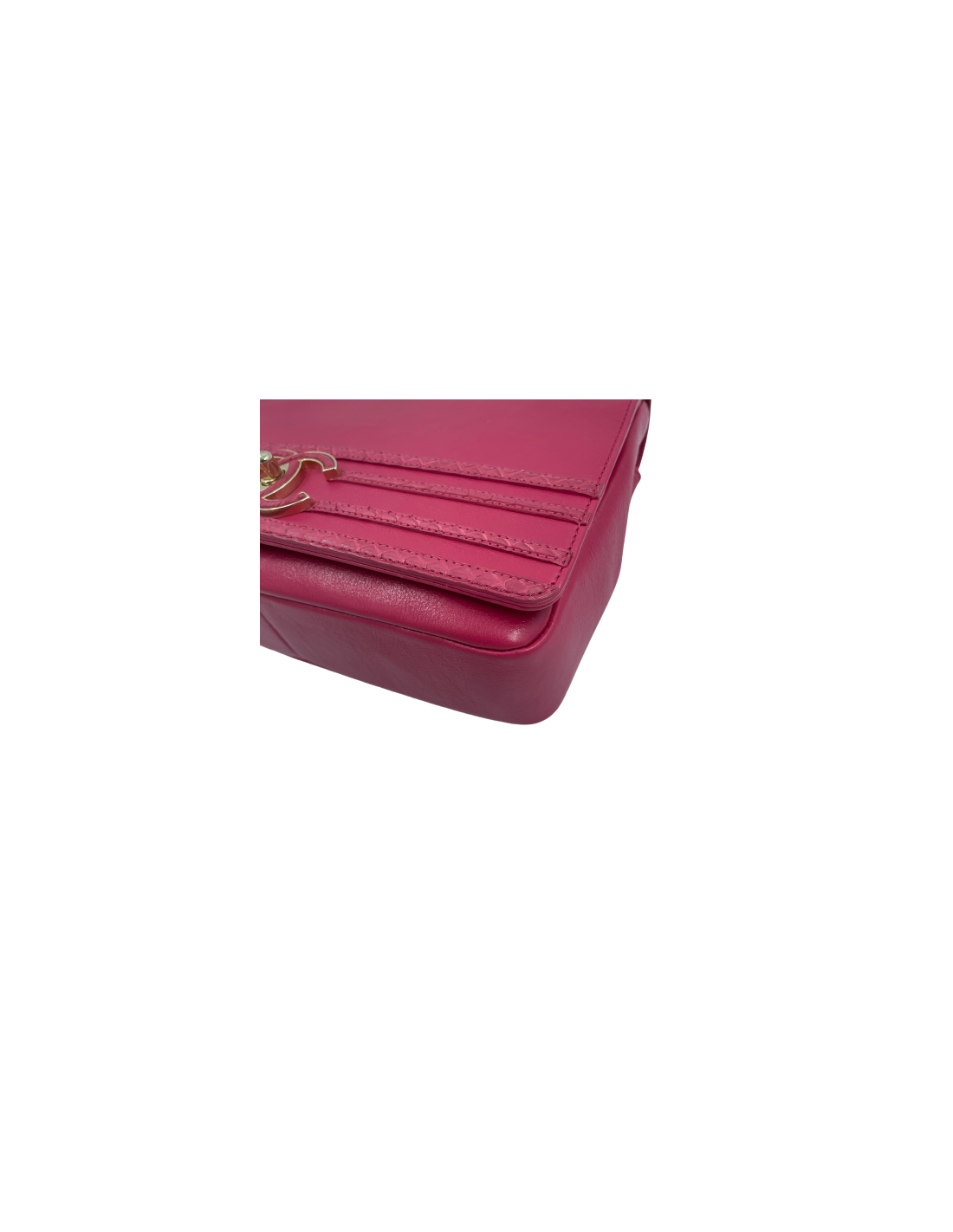 Sac CHANEL carré en cuir rose fushia liseré en python