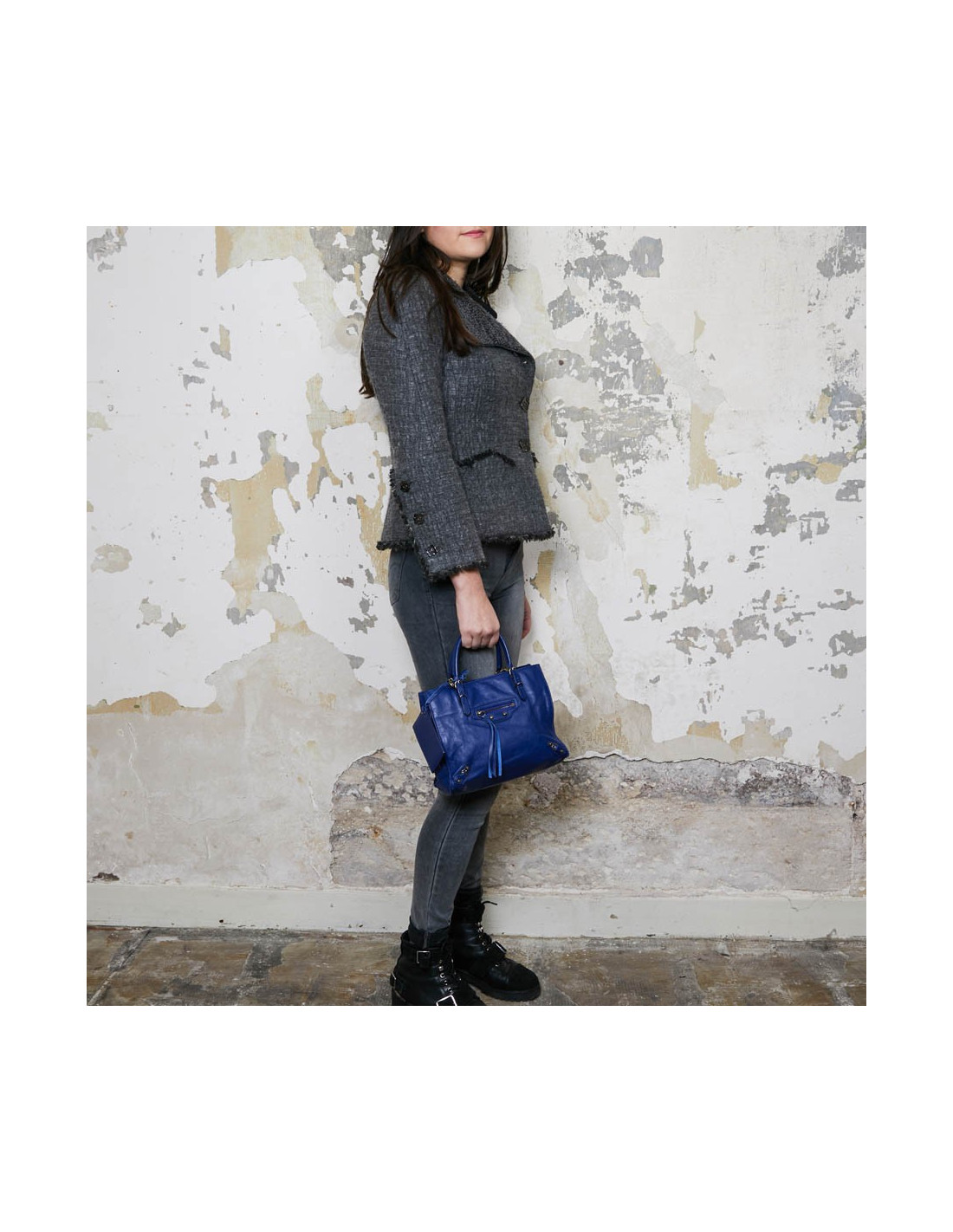 Mini Papier A4 BALENCIAGA bleu à porter en crossover - en quelques mots