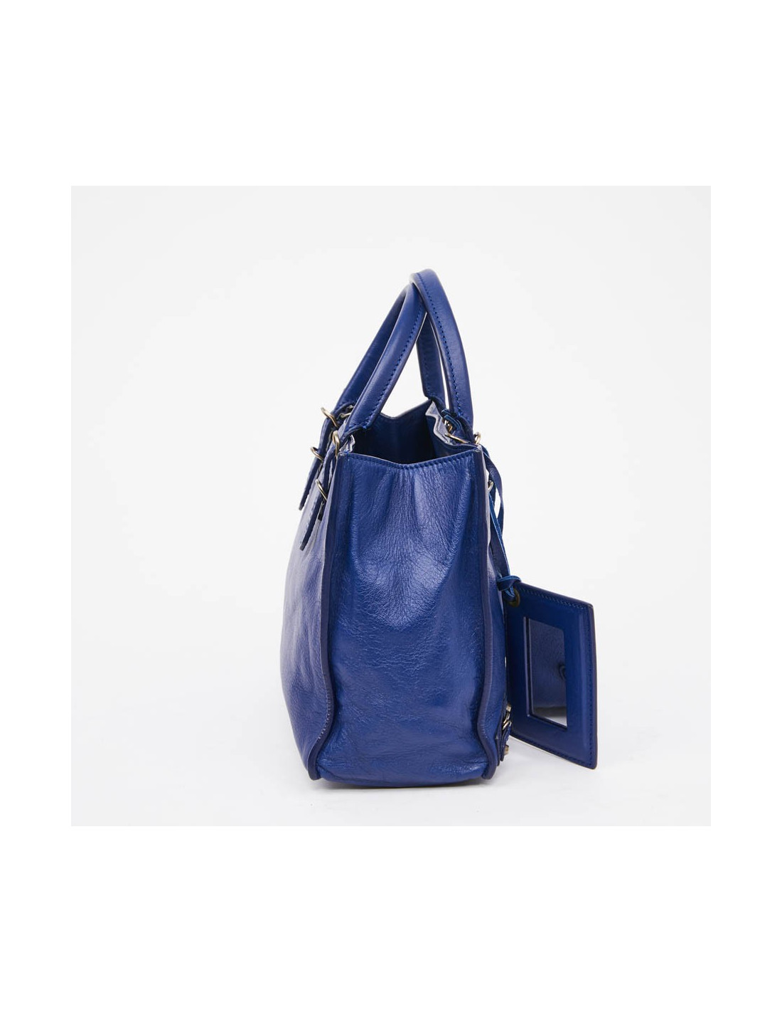 Mini Papier A4 BALENCIAGA bleu en cuir