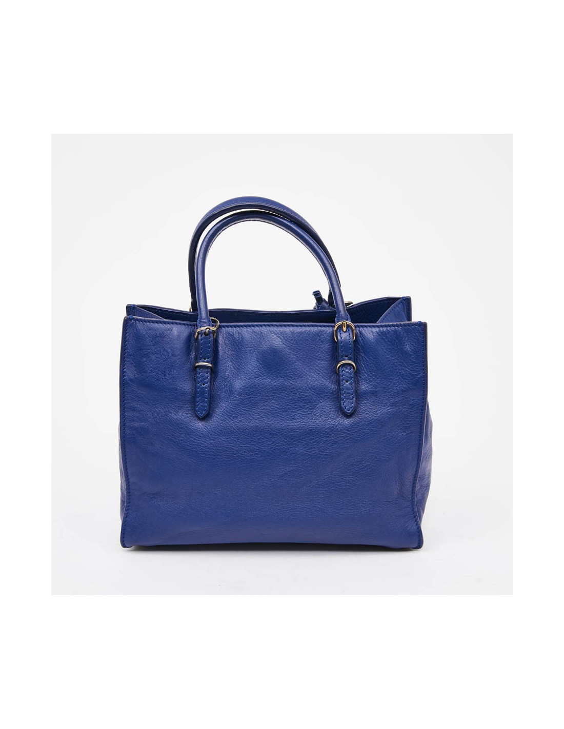 Ce mini Papier A4 Balenciaga est en cuir cuir bleu. Il se porte main grâce à ses deux poignées en cuir (ajustables) ou crossover avec sa bandoulière amovible. Le sac se ferme par un aimant, l'intérieur est en suède bleu avec une petite poche plate. L'unique poche zippée se trouve sur l'avant du sac. Un miroir est accroché à l'une des poignées. Le sac est en parfait condition. Aucune usure n'est visible sur les coins.
