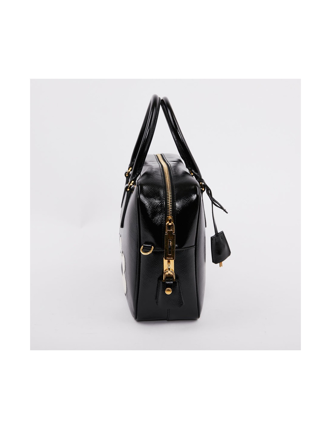 Sac PRADA Baulleto en cuir Saffiano verni noir