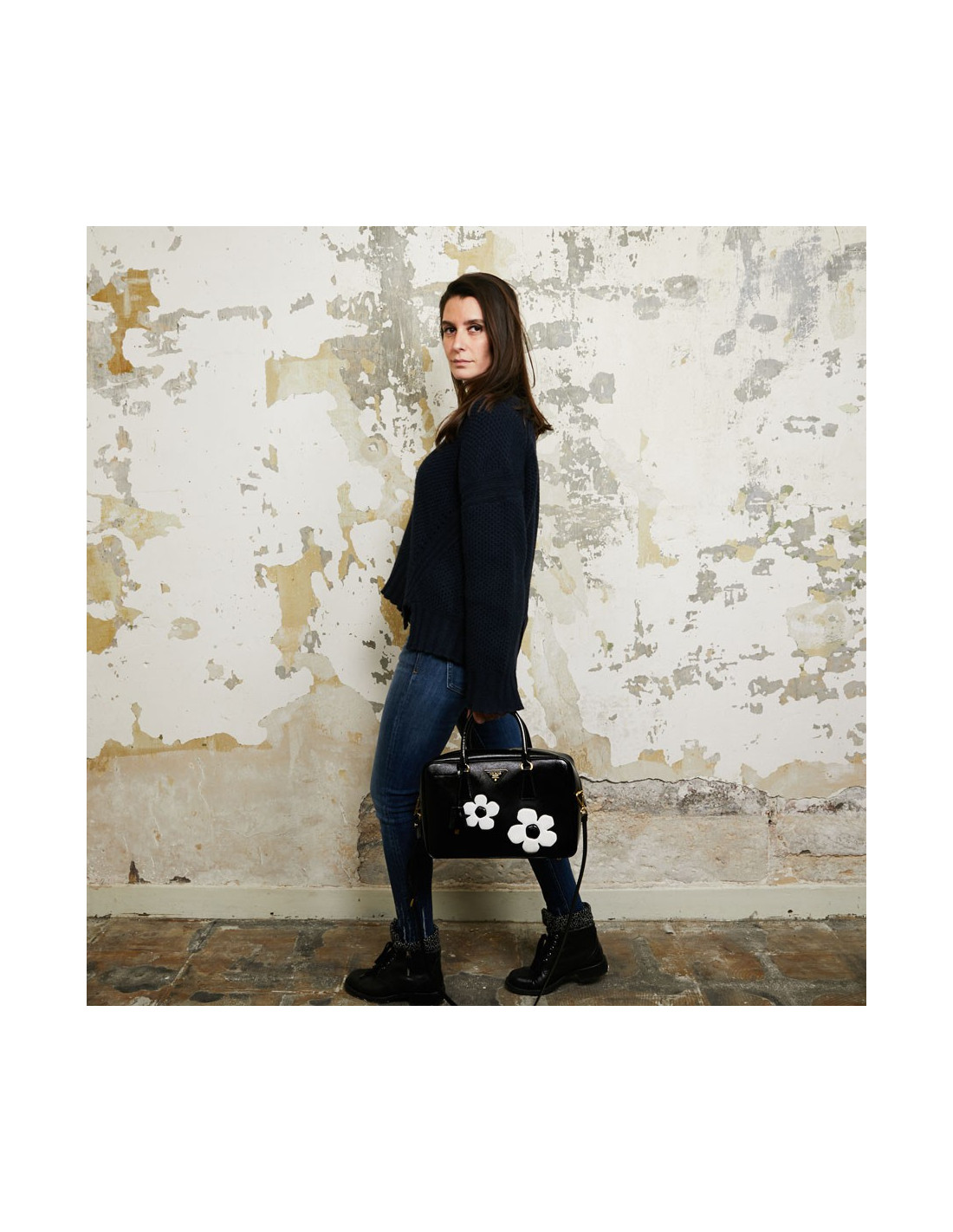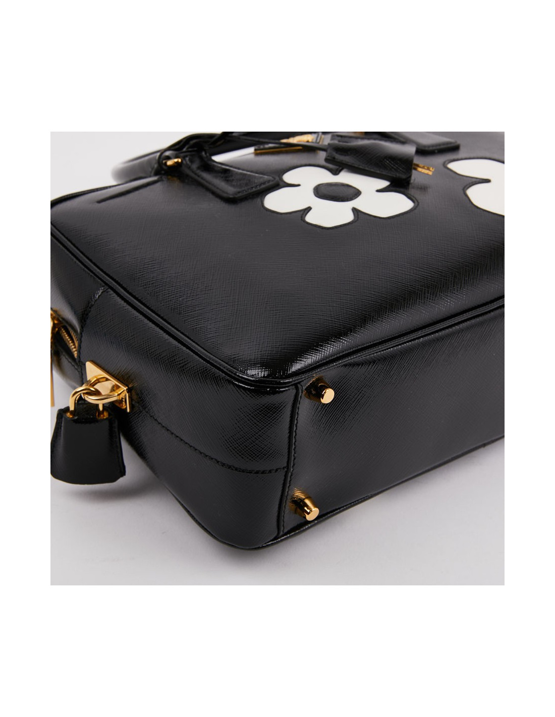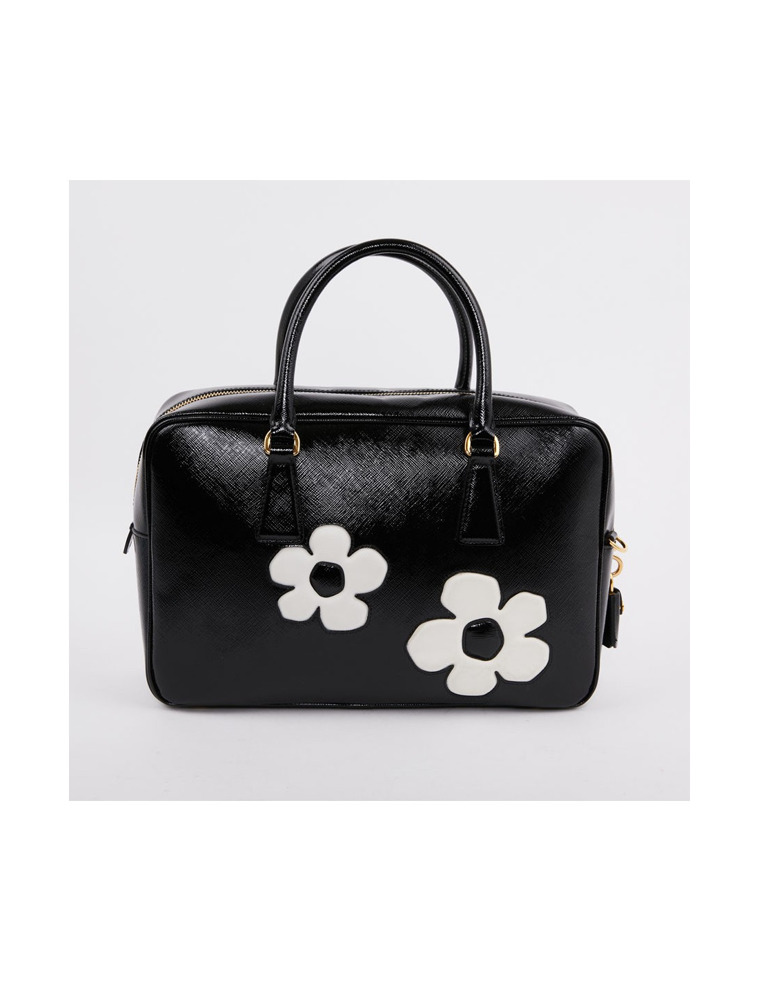 Sac PRADA Baulleto noir incrusté des fleurs blanches