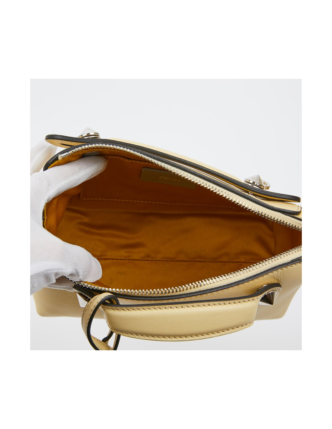 Ce mini sac d'occasion FENDI est en cuir légèrement grainé jonquille. Il est agrémenté d'une languette avec de gros cabochons en cristal couleur citrine jaune. L'intérieur est doublé en satin jaune avec une pochette fente. L'accastillage est en métal argent palladié. Il a une fermeture éclair. Il se porte à la main grâce à une petite anse ou crossbody par une bandoulière ajustable et amovible. Il n'a jamais été porté. Il a sa carte d'authenticité.