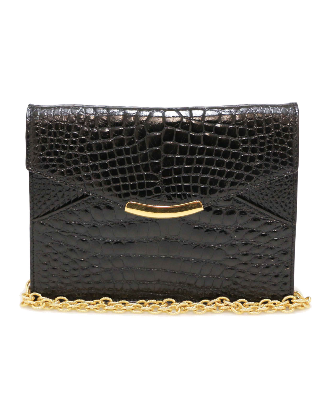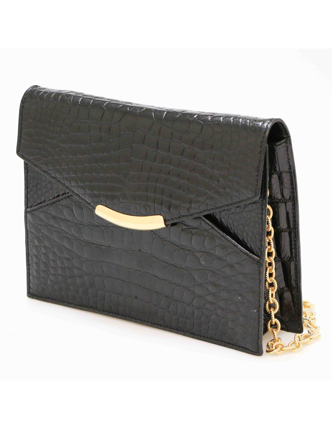 Sac vintage Alligator noir chaine dorée