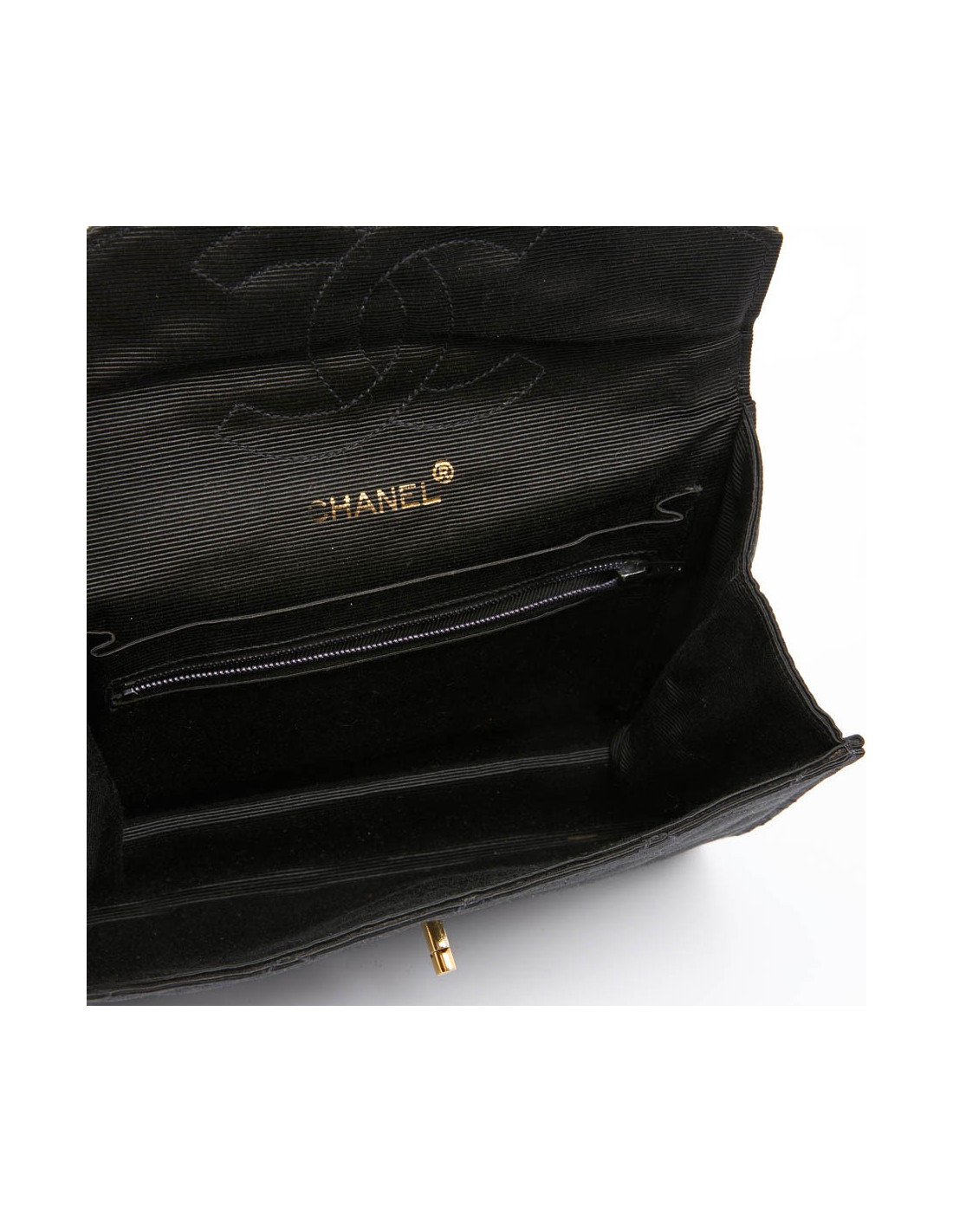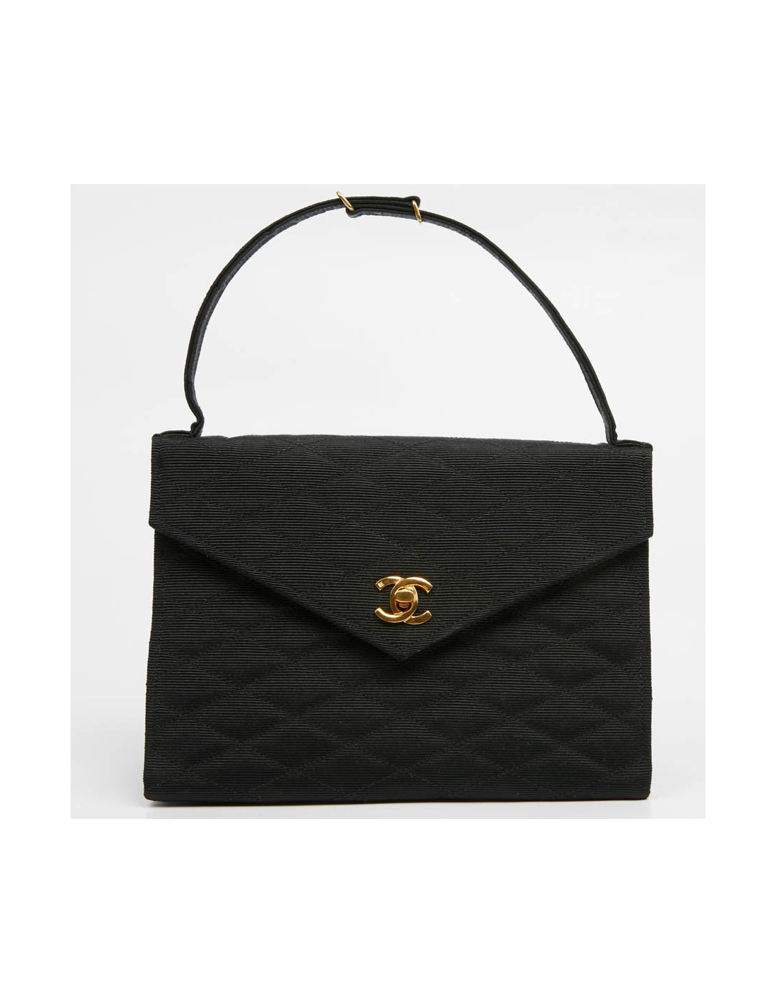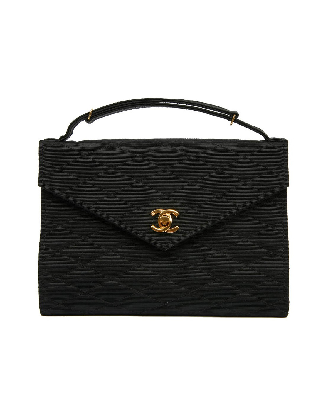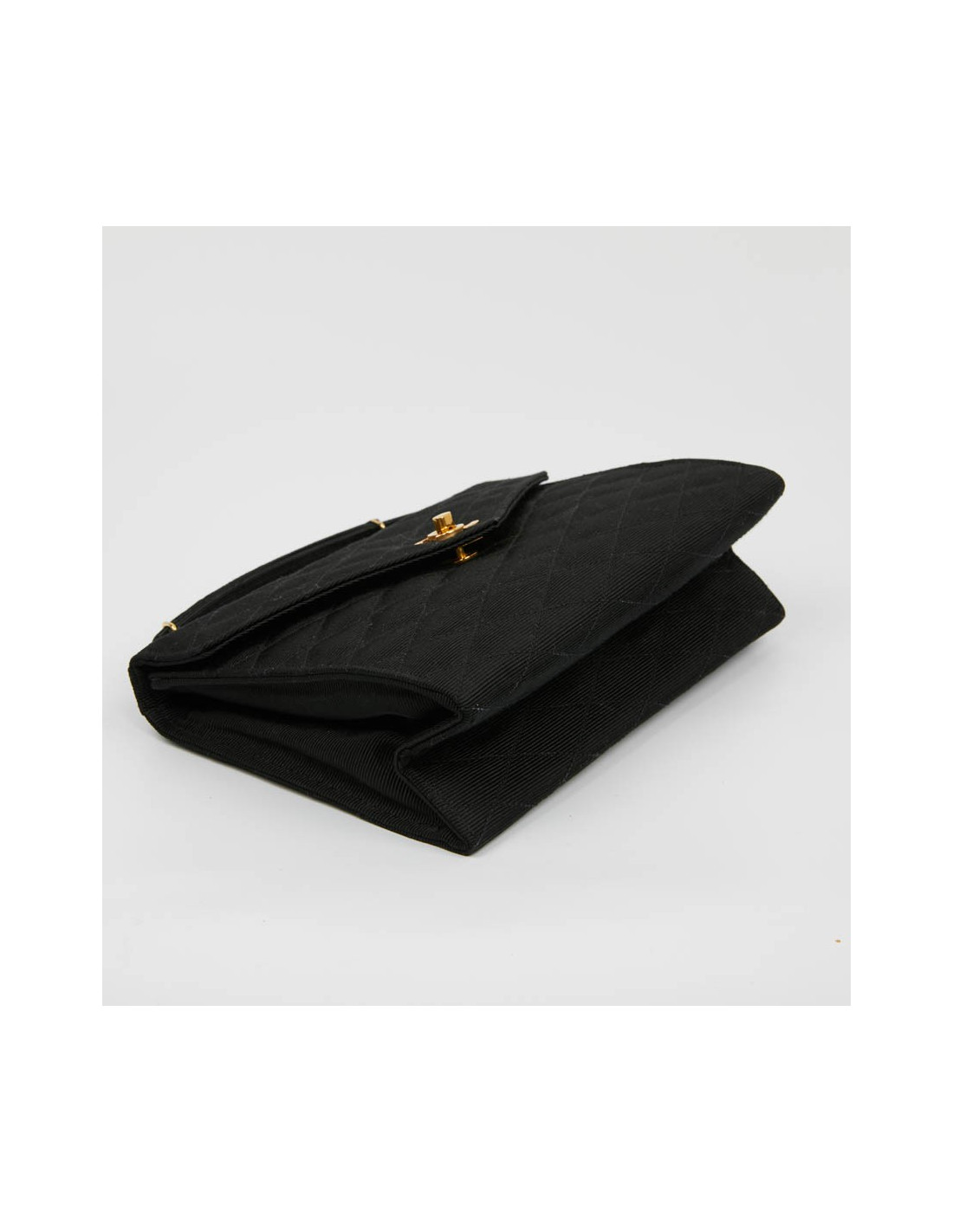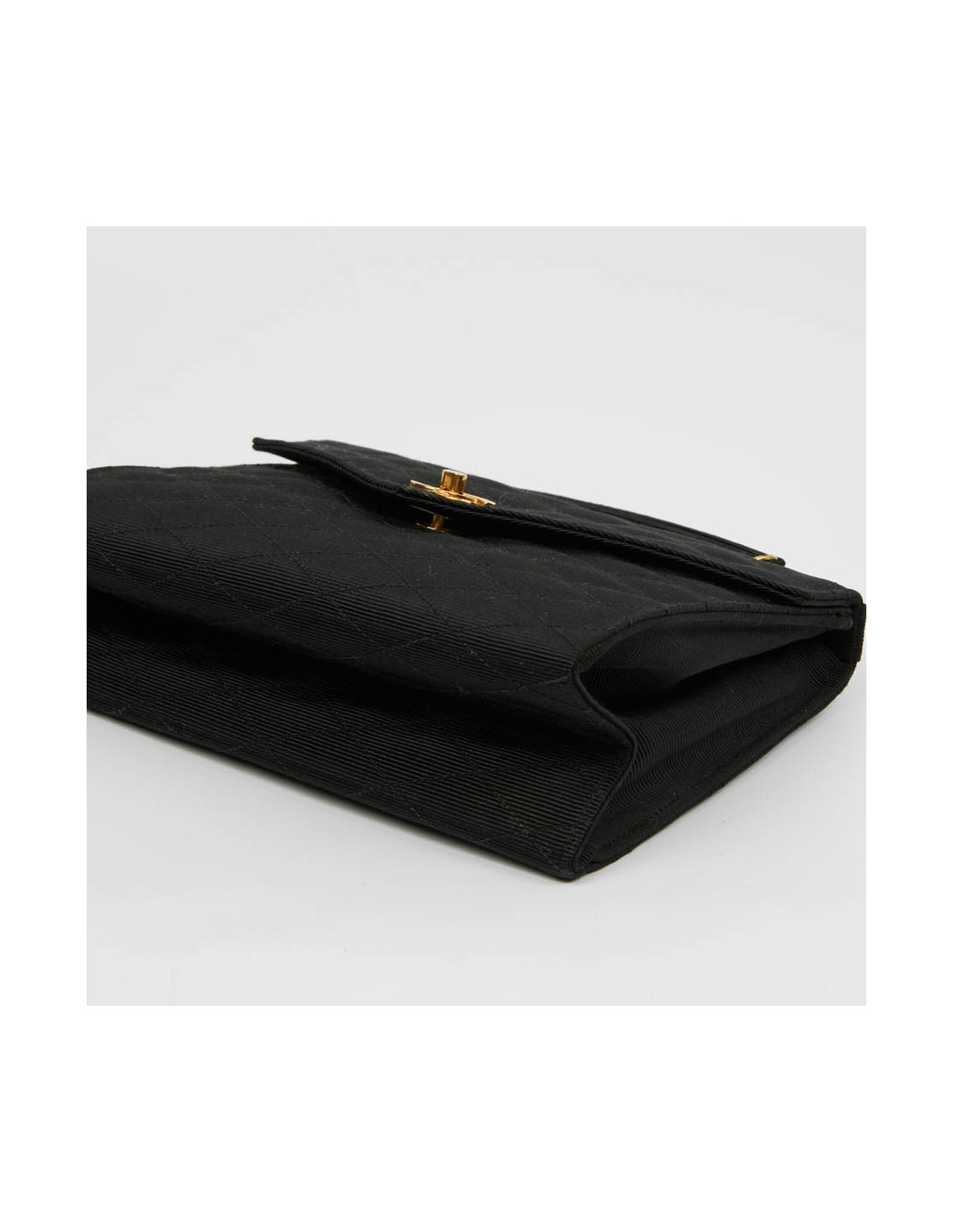 Sac pochette CHANEL en tissu noir matelassé