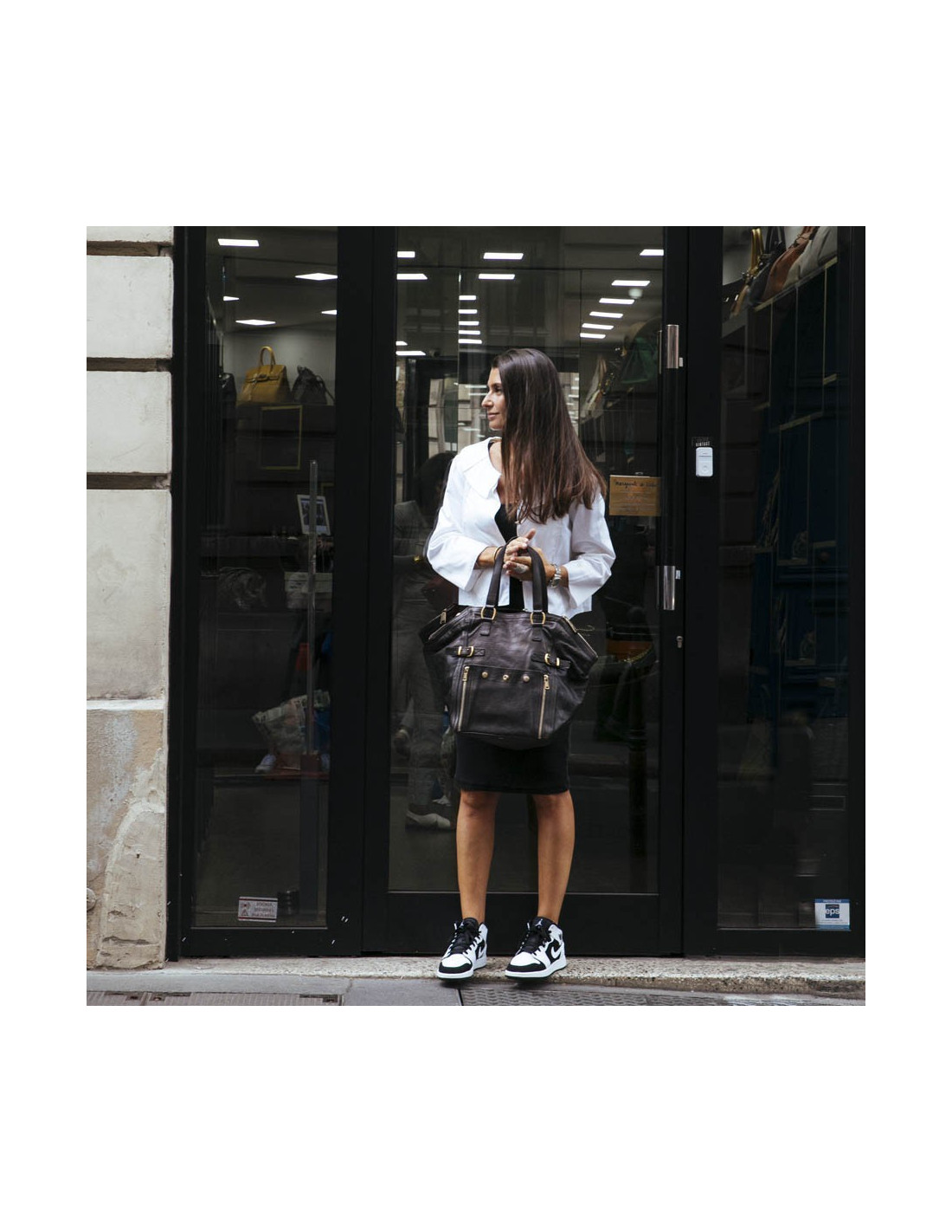 Idéal pour tous les jours, vous y glisserez tous vos accessoires du quotidien. A la fois élégant et casual, il est en veau pleine fleur et sa bijouterie en laiton doré.