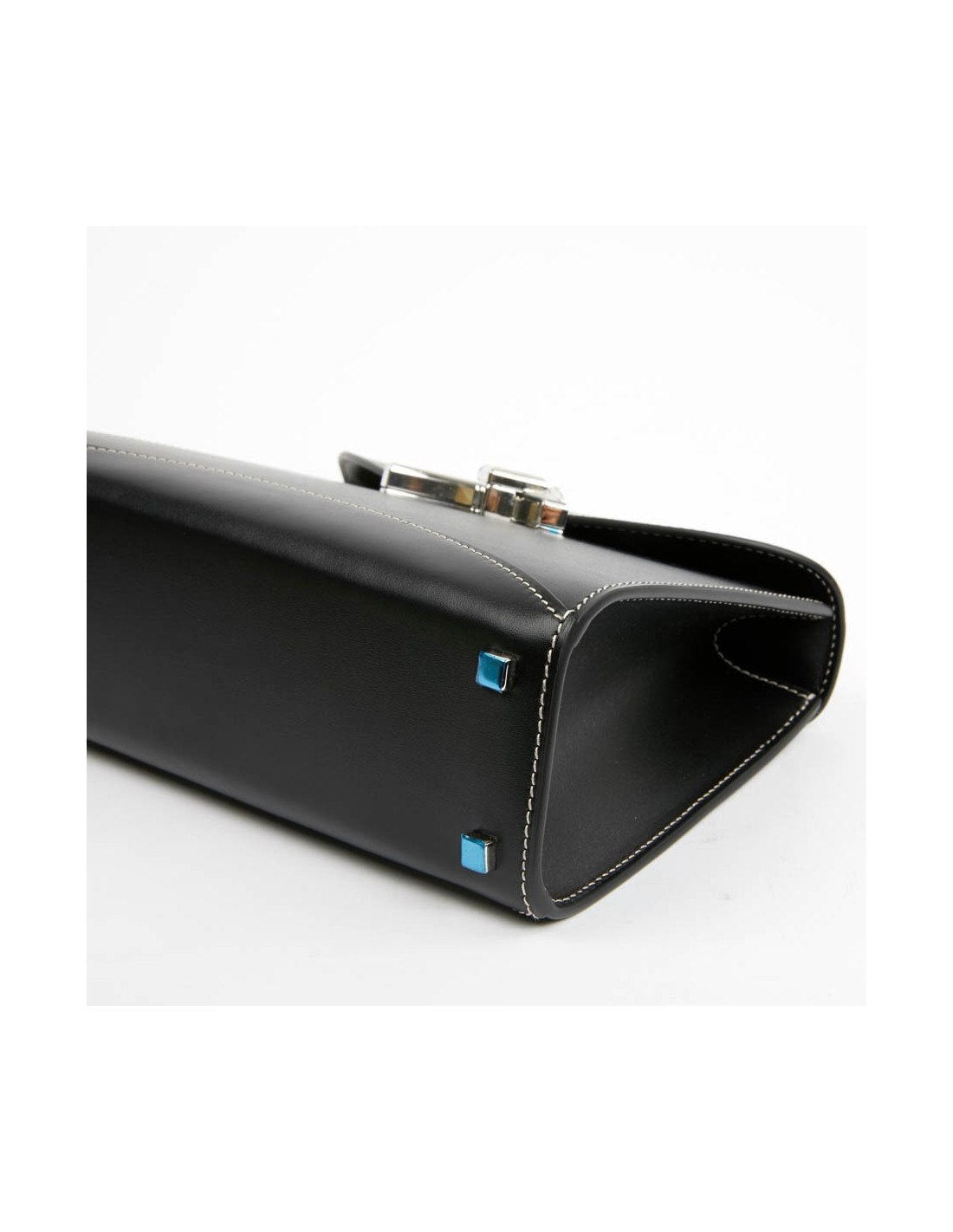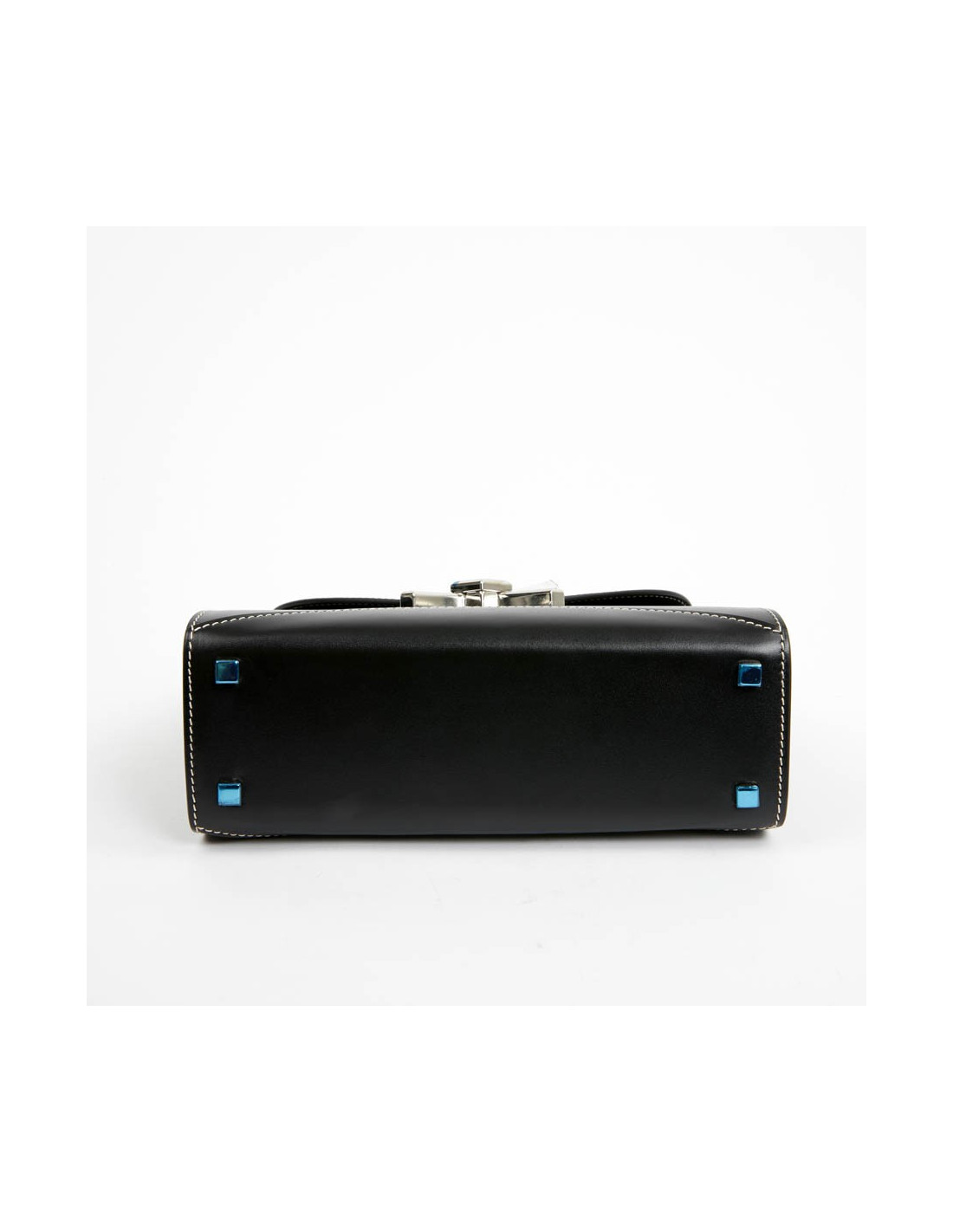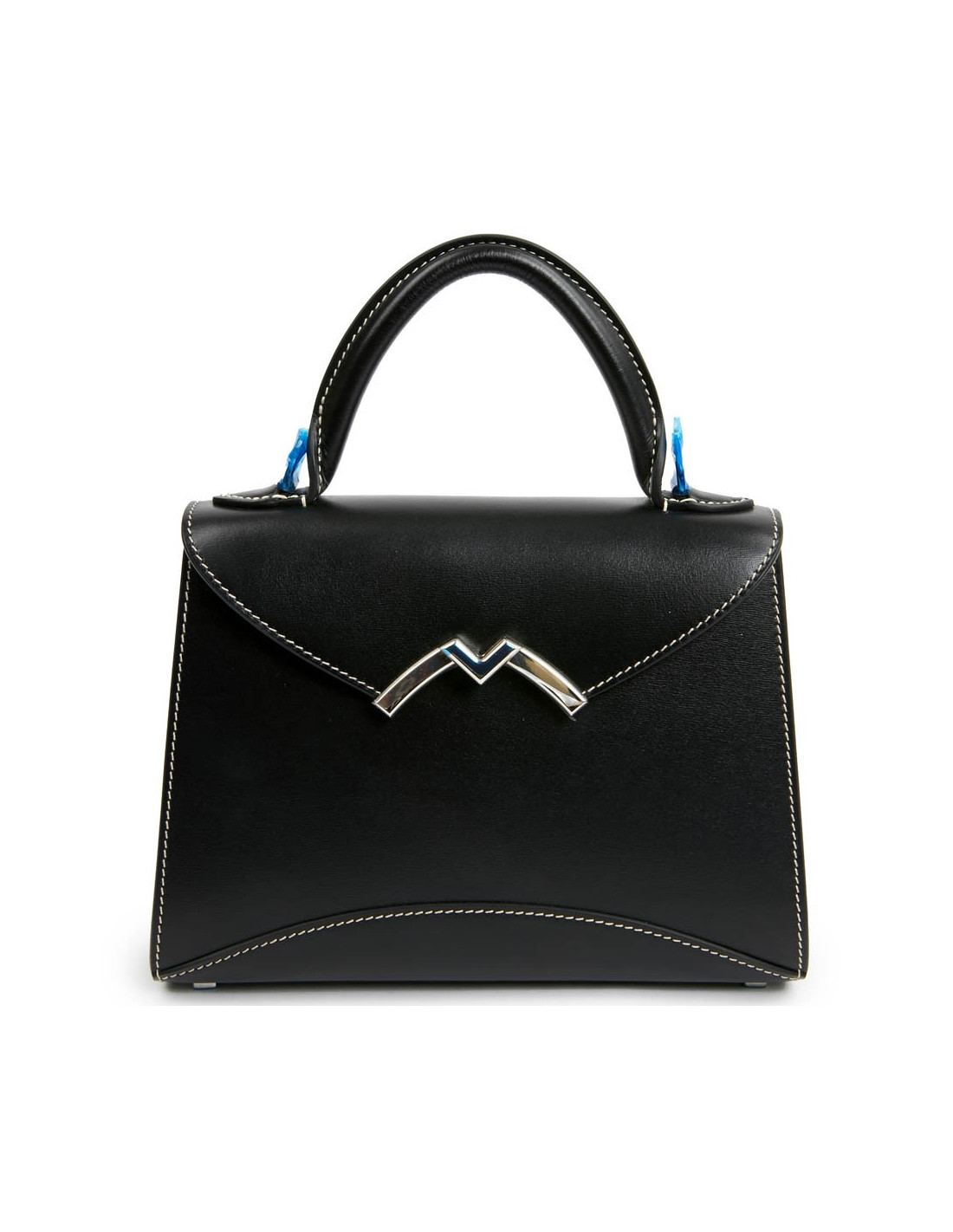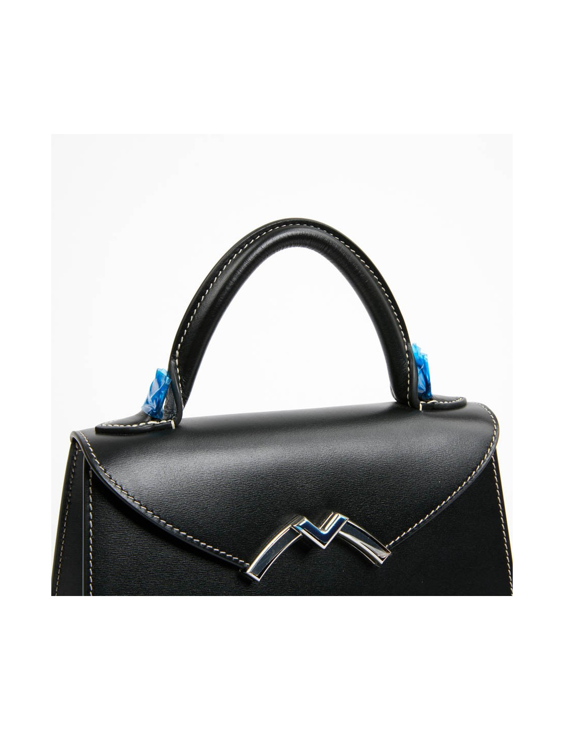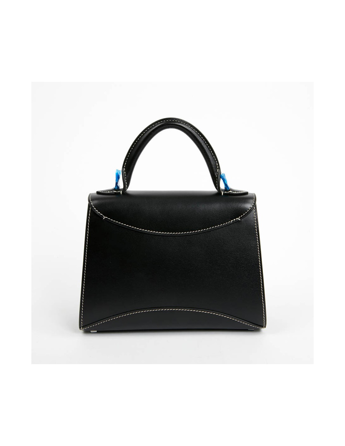Sac Gabrielle MOYNAT cuir lisse noir surpiqué blanc