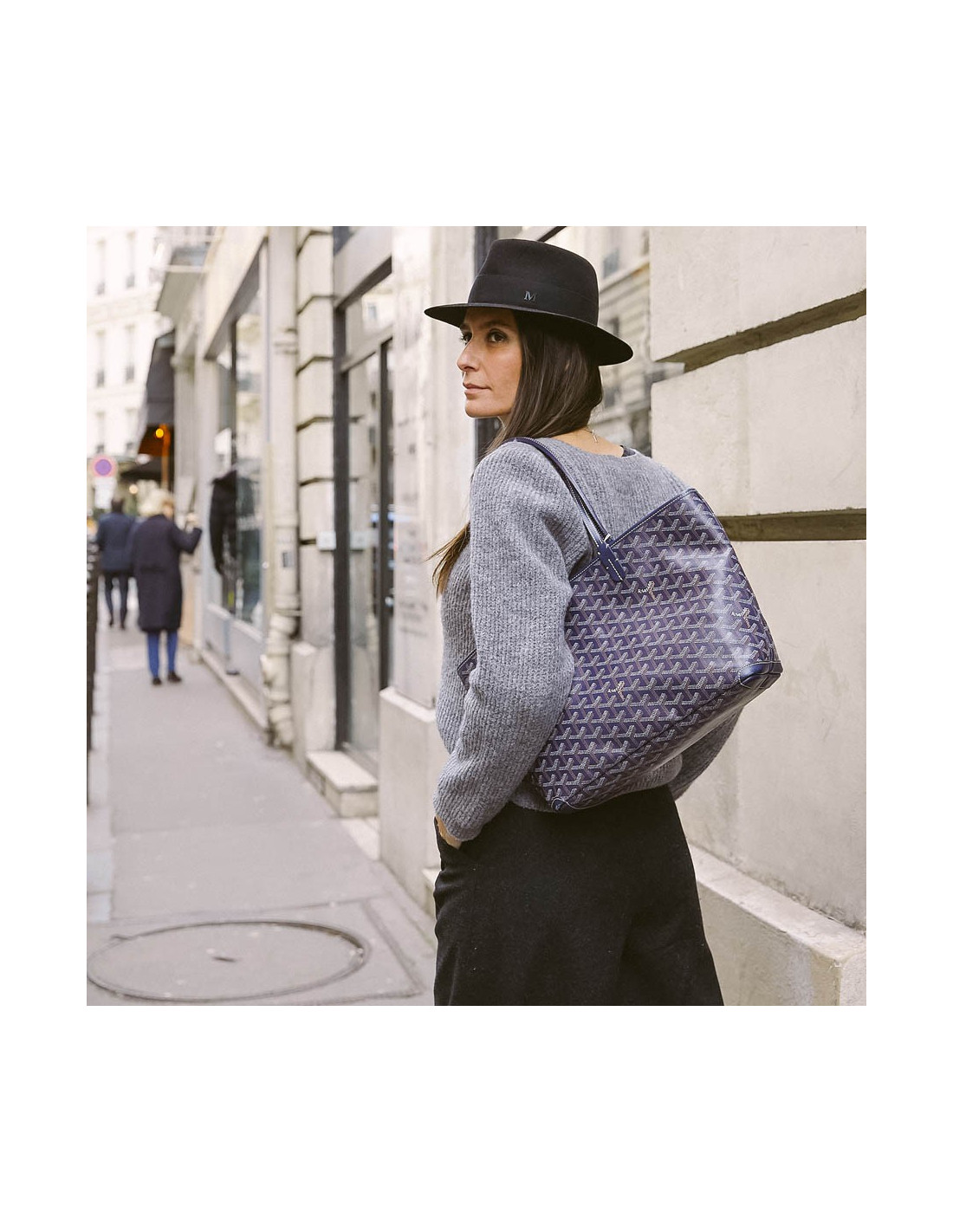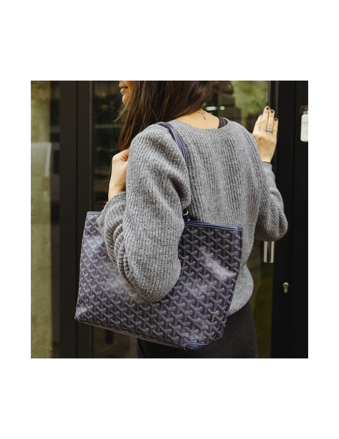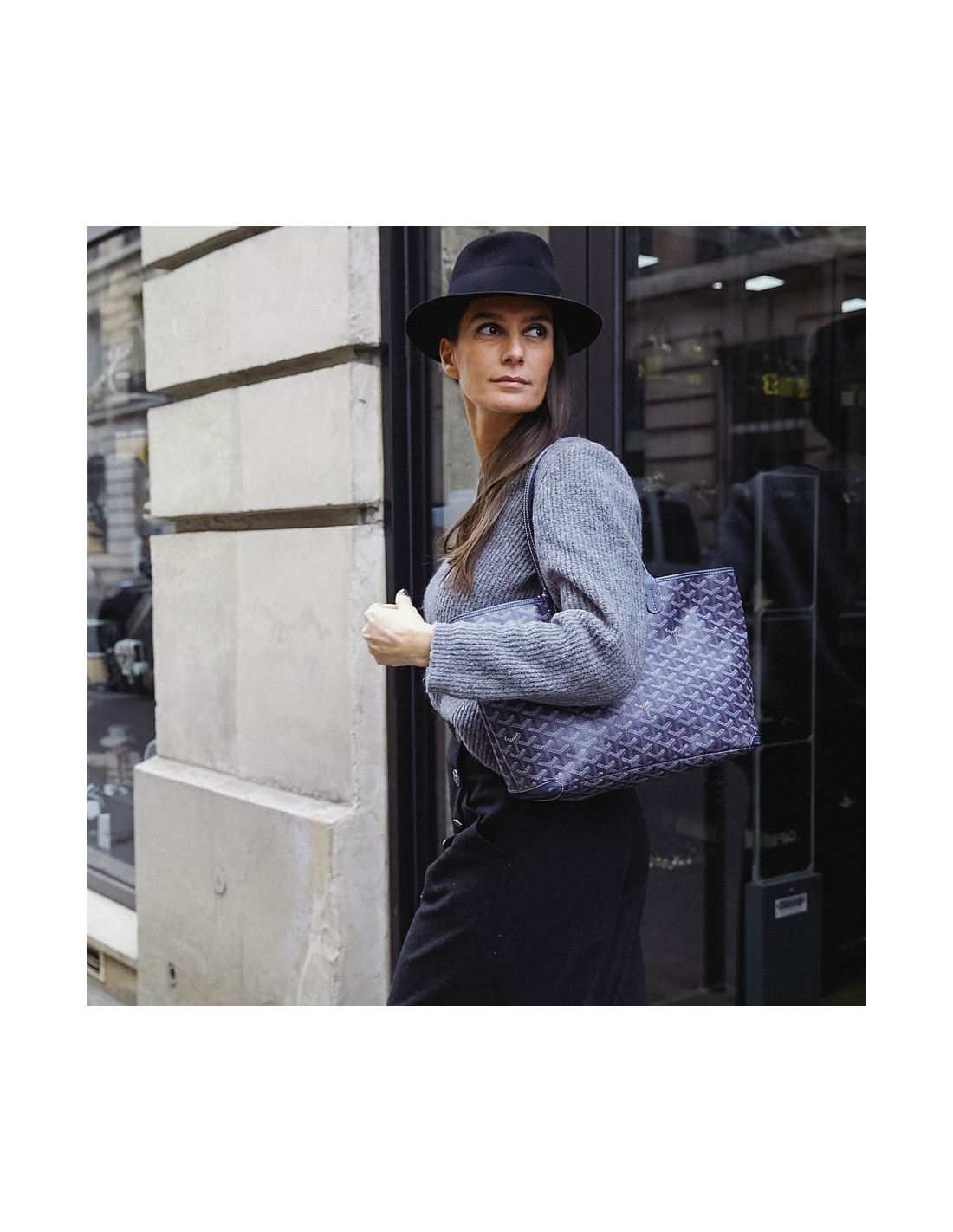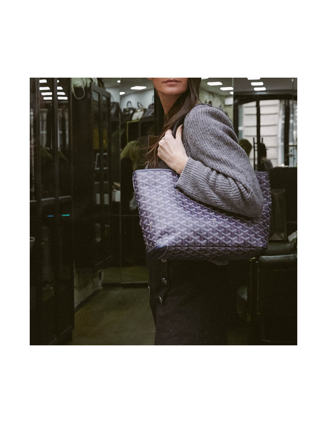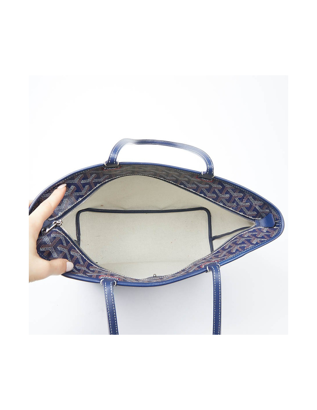 La Maison GOYARD est le plus ancien malletier parisien dont l'enseigne est toujours présente rue Saint Honoré. Fondé en 1792 sous le nom de Martin, elle prendra successivement les noms de Morel puis Goyard lors de leur transmission du fonds de commerce. Le modèle phare chez Goyard est le cabas Saint-Louis. Ce modèle Artois est son petit frère. Au 13 ème siècle le roi français Louis IX était appelé "Saint Louis" et avait un jeune frère le Comte d'Artois. Il a donc bien un lien de parenté entre ce sac et l'emblématique cabas signé Goyard. Ce sac d'occasion est en toile enduite monogramme bleu, blanche et beige avec des pièces de cuir. Il est doublé en toile avec une poche plate. La bijouterie est en métal argent. Il se porte l'épaule avec sa double poignée.