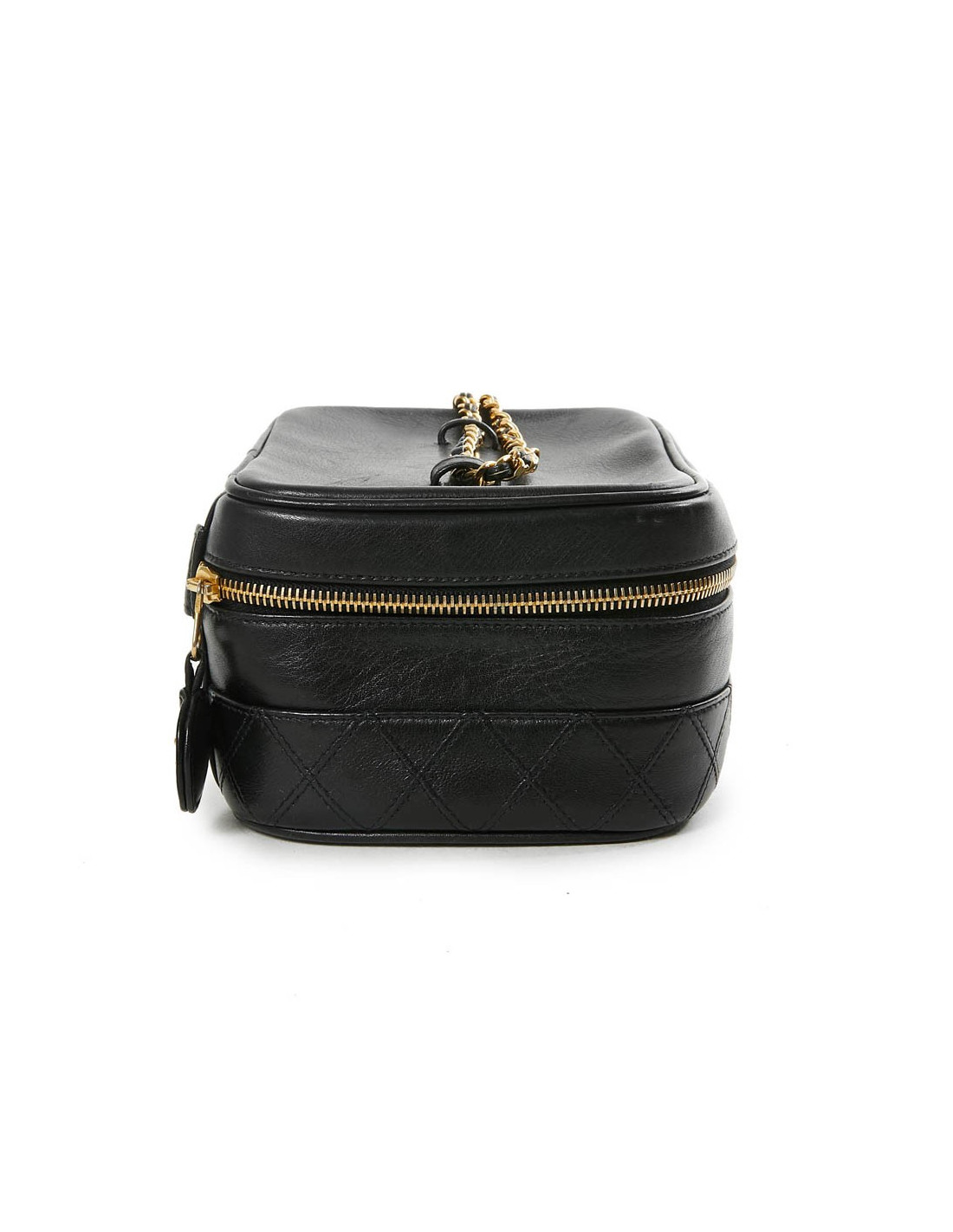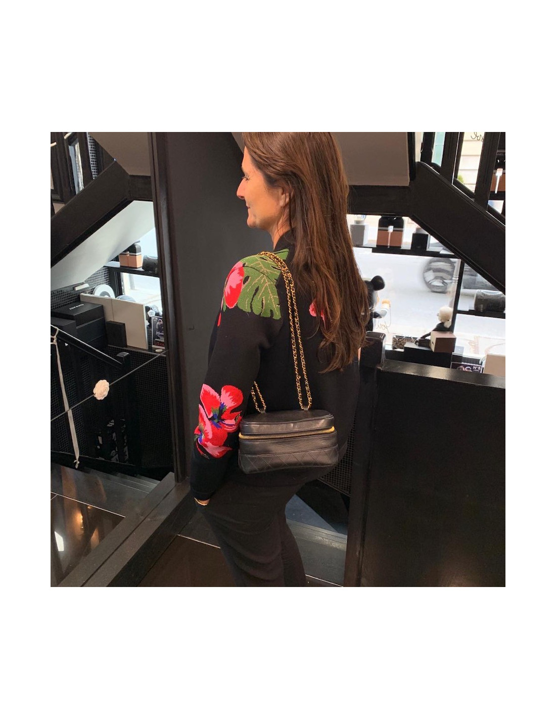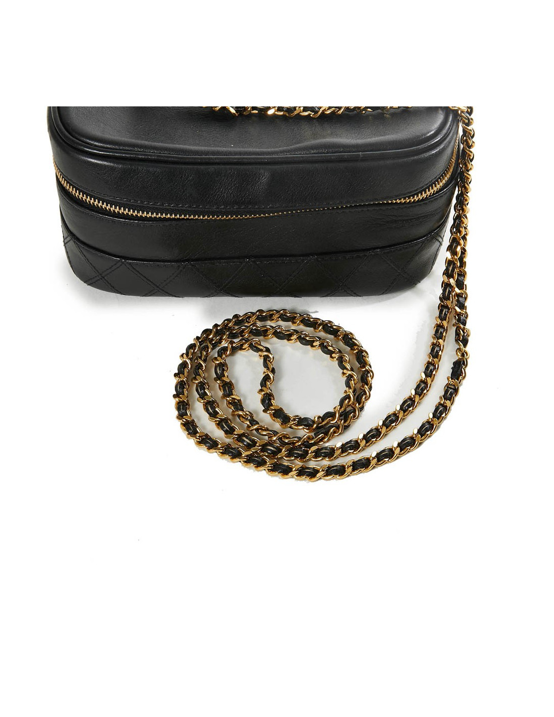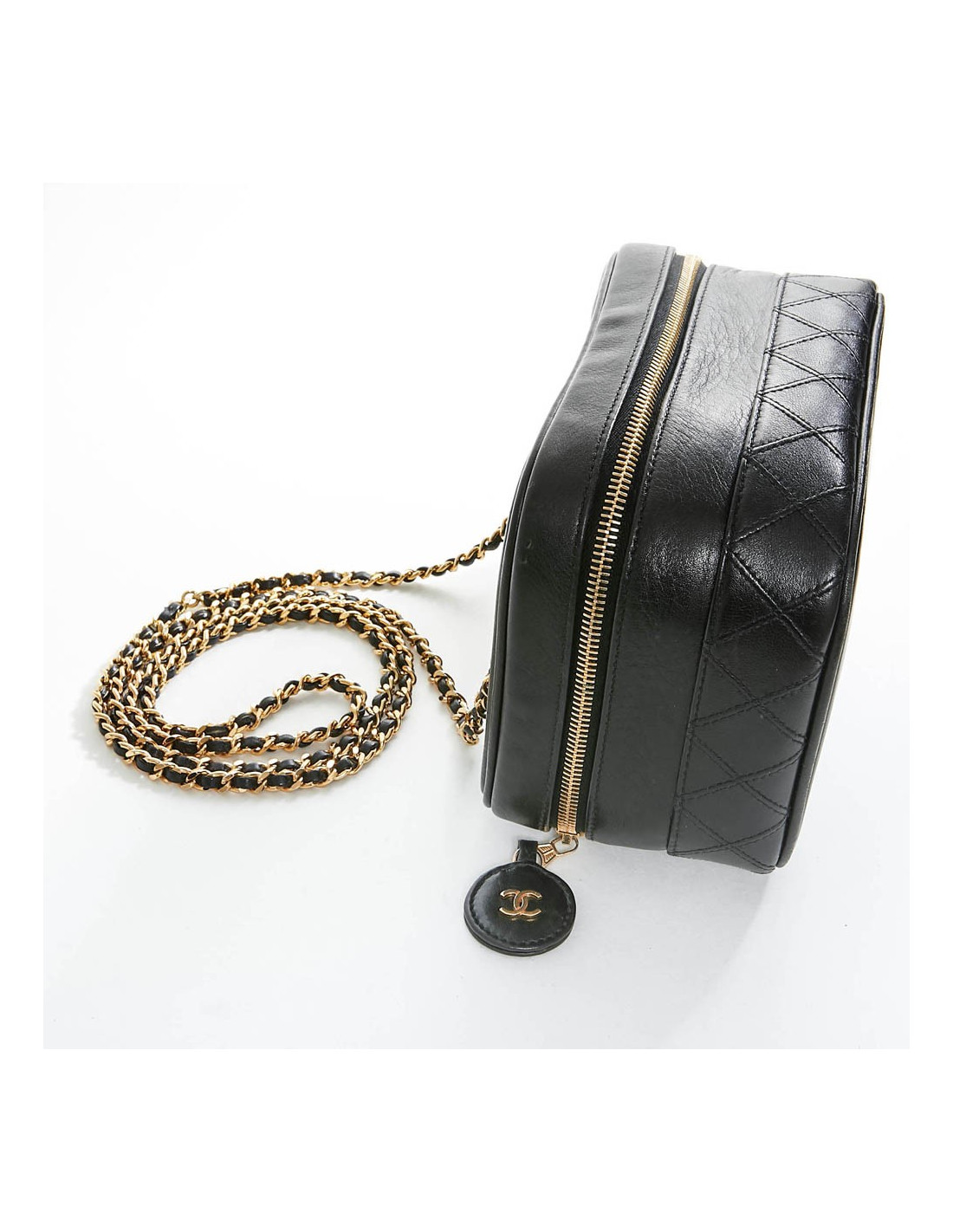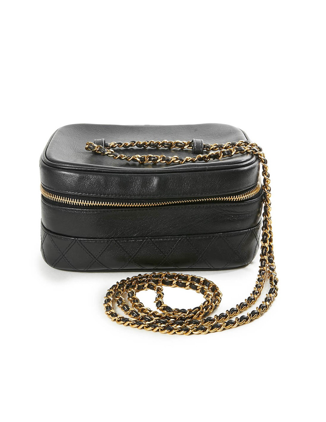 Ce sac, à l'origine servait de boite à bijoux. Avec la tendance vintage, il sera détourné comme un sac de jour. La chaîne métal doré entrelacé de cuir a été remplacée à l'identique. Il se porte à l'épaule ou croisé. C'est un cuir lisse et matelassé. Se ferme par une fermeture à glissière. Il est doublé en plastique noir avec une poche fente.